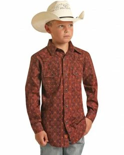 Be the first to review “Panhandle Boys’ Peach & Navy Southwest Print Snap Shirt” Cancel reply