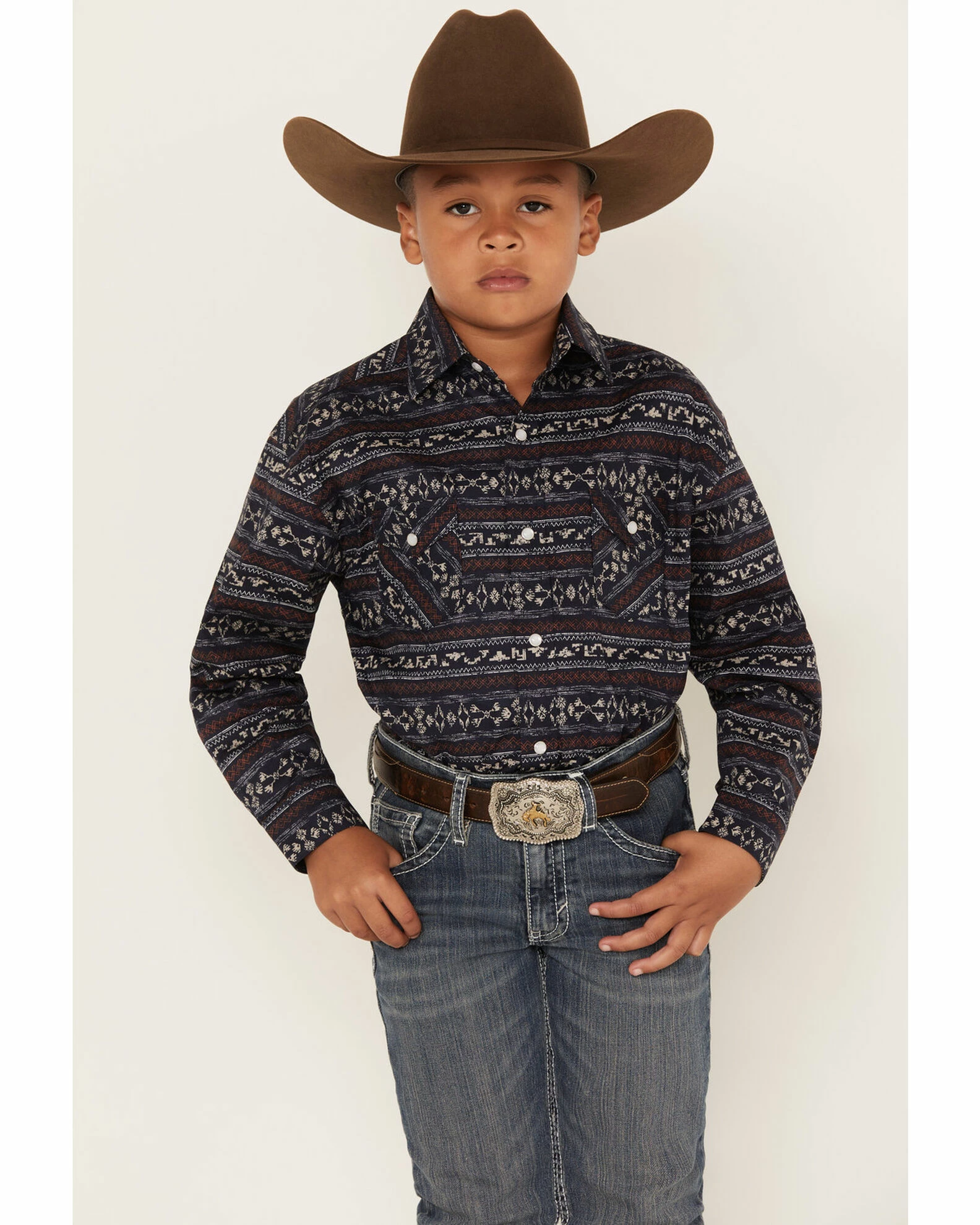 RSBSOSR0EN NVY HORIZONTAL STWEST PRINT LS SNAP