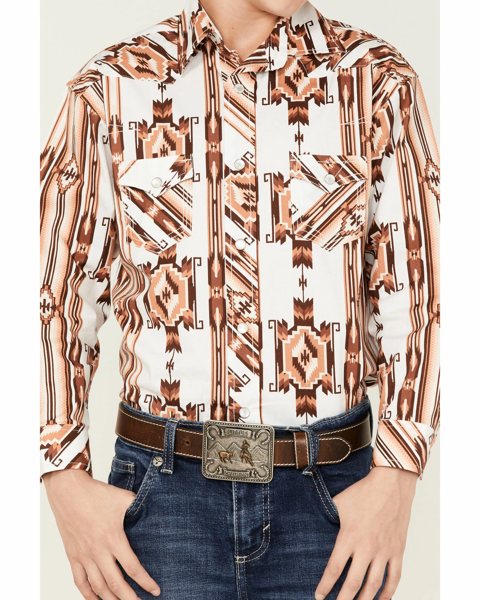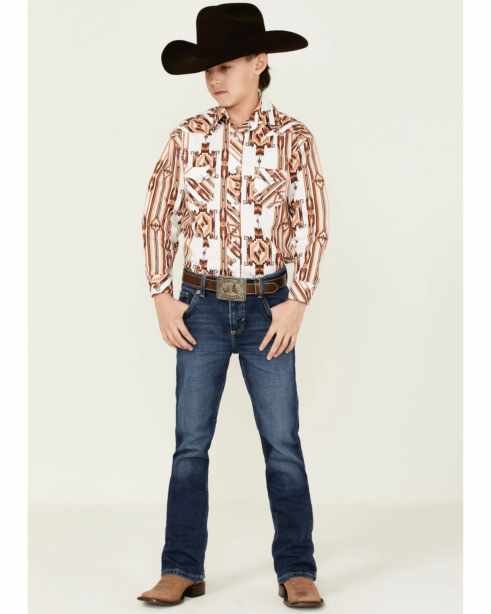 Panhandle Boys’ Southwestern Print Long Sleeve Stretch Western Snap Shirt Natural