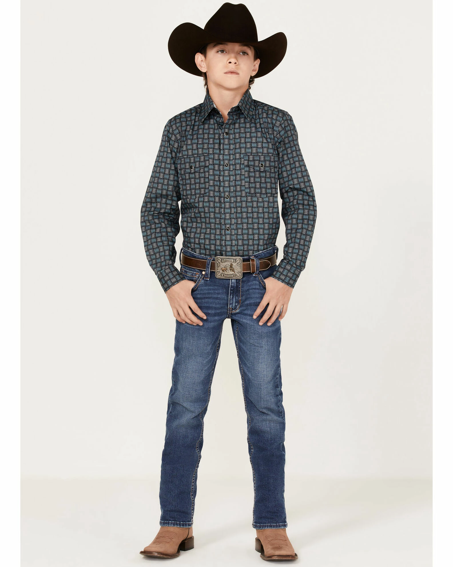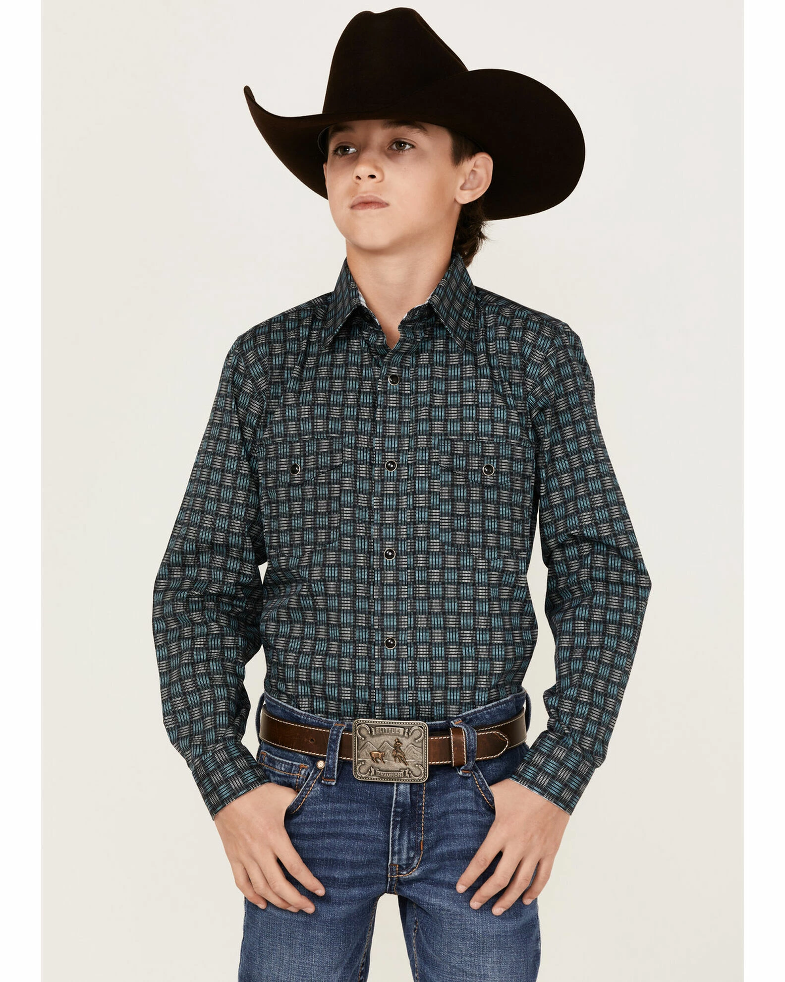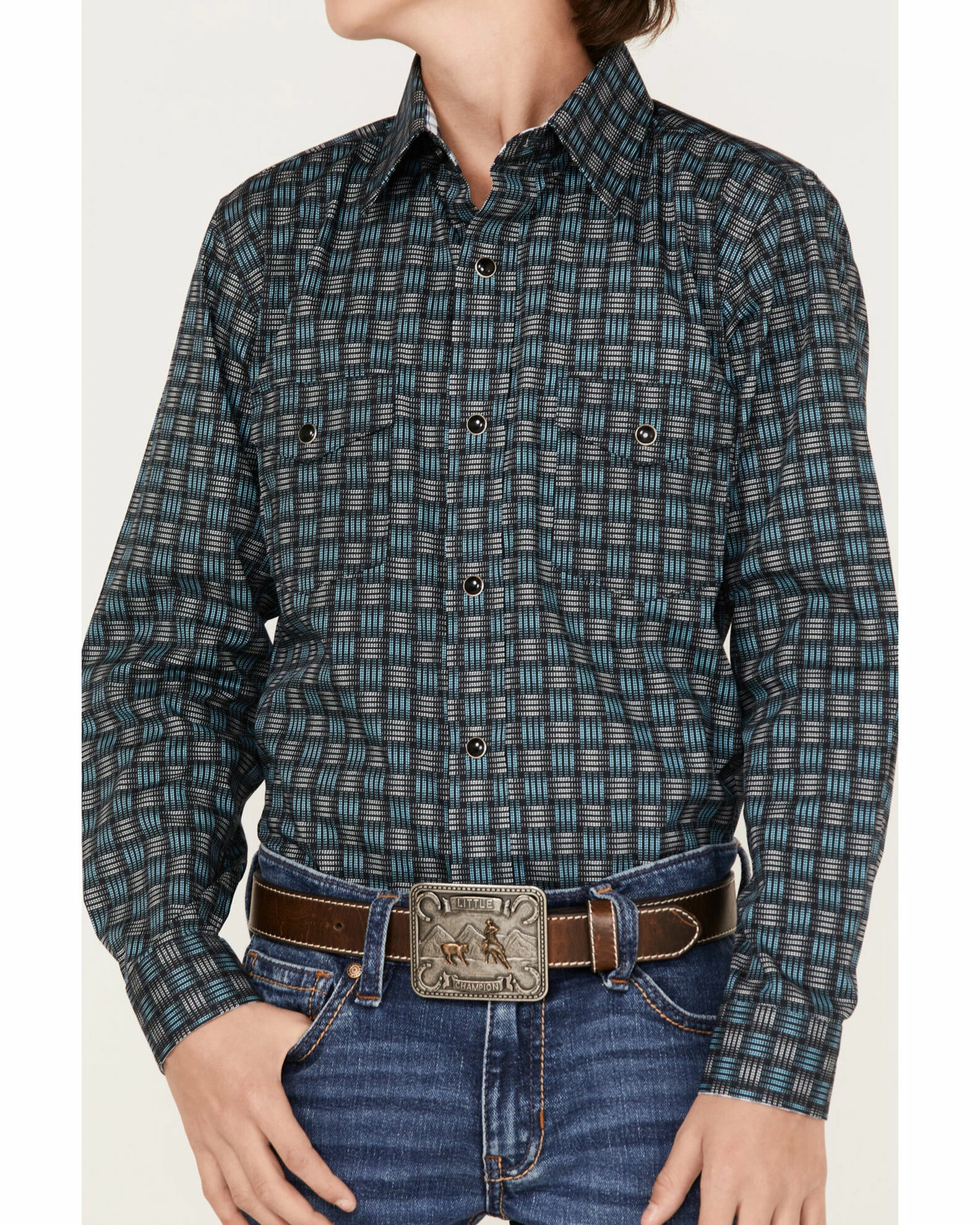 Be the first to review “Panhandle Boys’ Woven Stripe Print Long Sleeve Western Snap Shirt Light Blue” Cancel reply