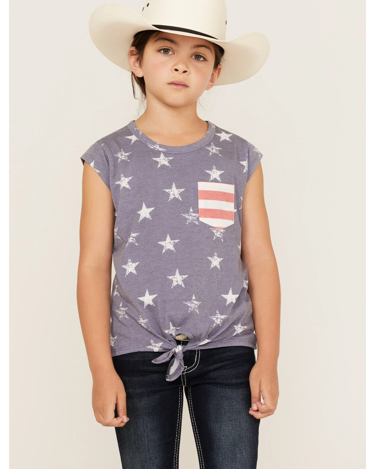 Panhandle Girls’ Americana Star & Stripes Tie Front Graphic Tee Blue