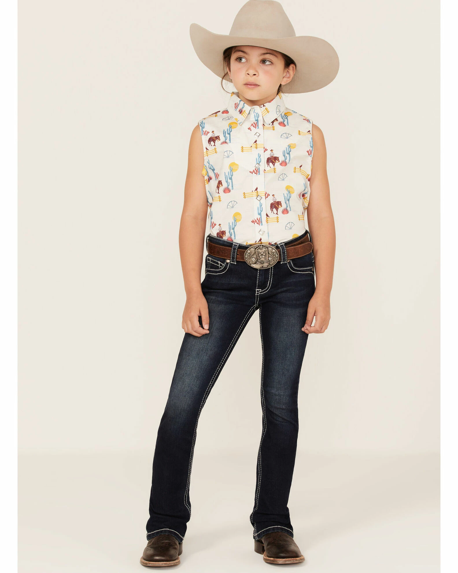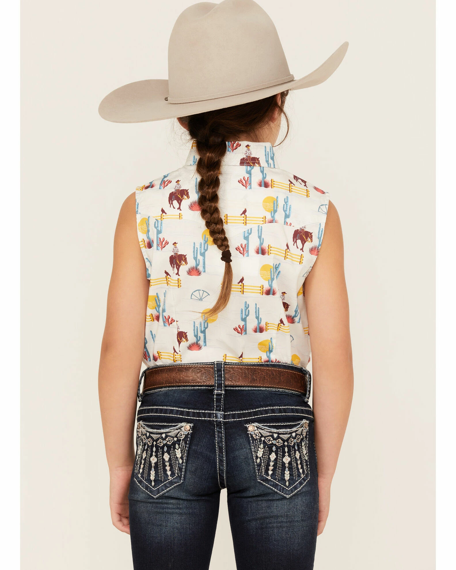 Panhandle Girls’ Cowboy Horse Print Sleeveless Western Snap Shirt Turquoise