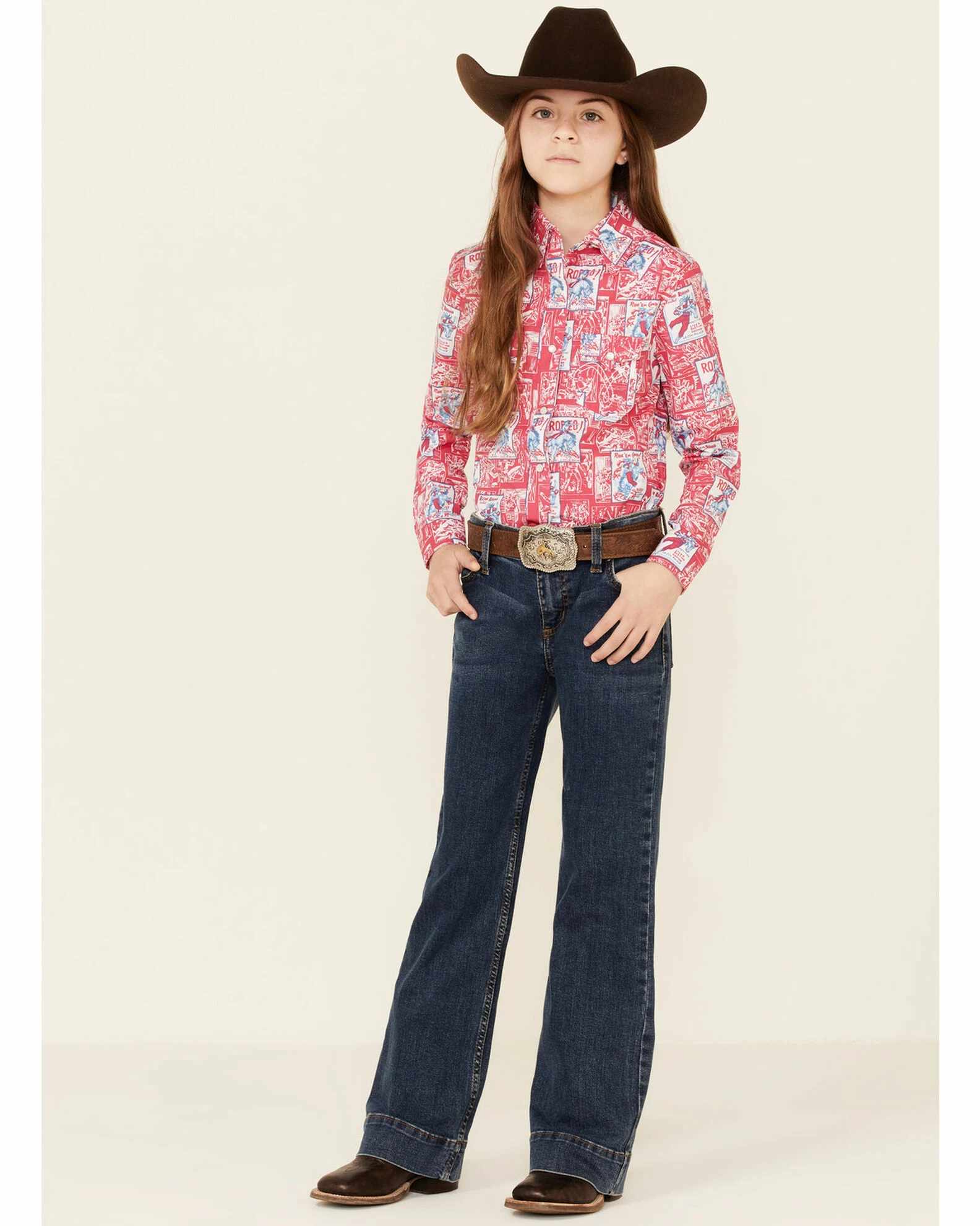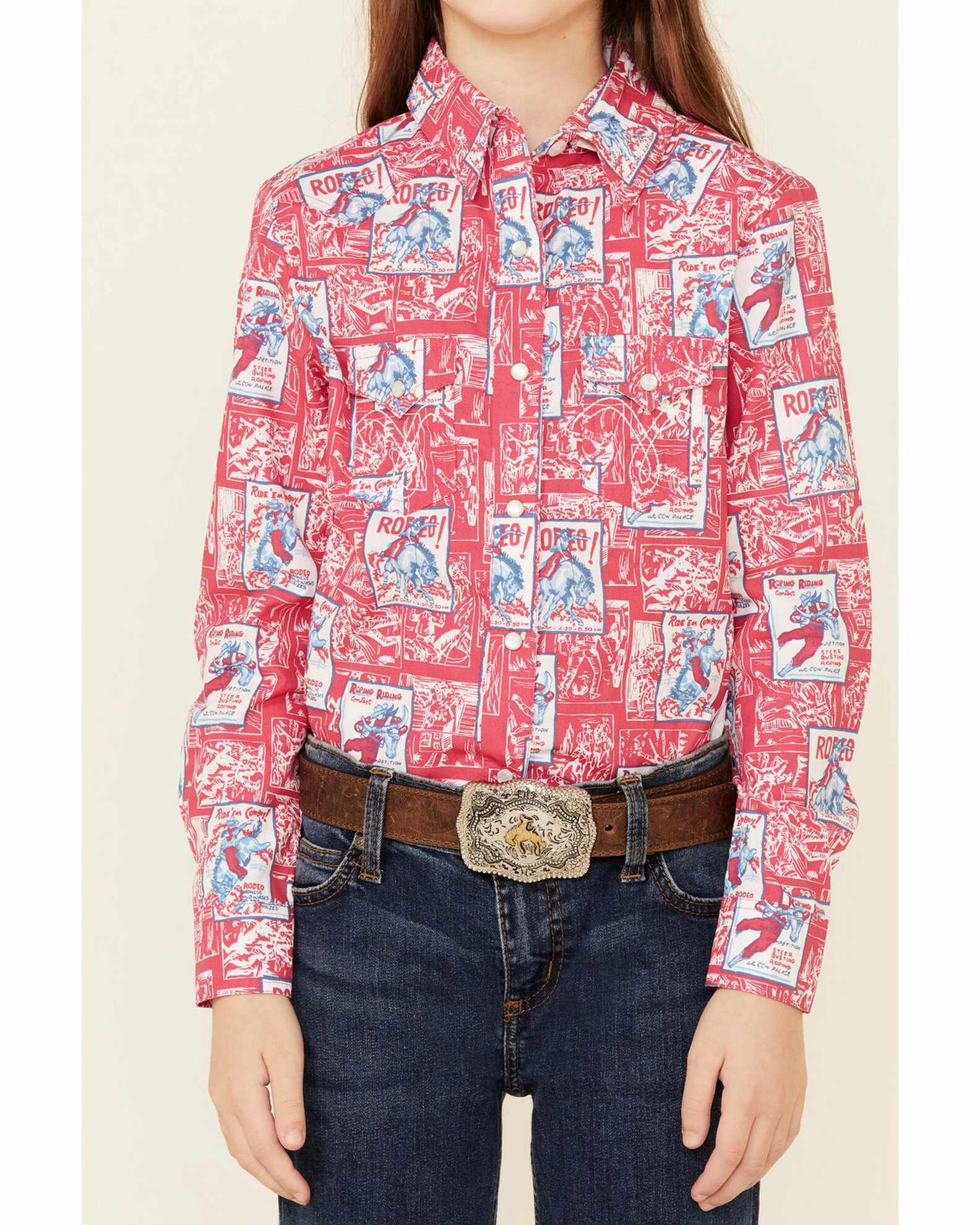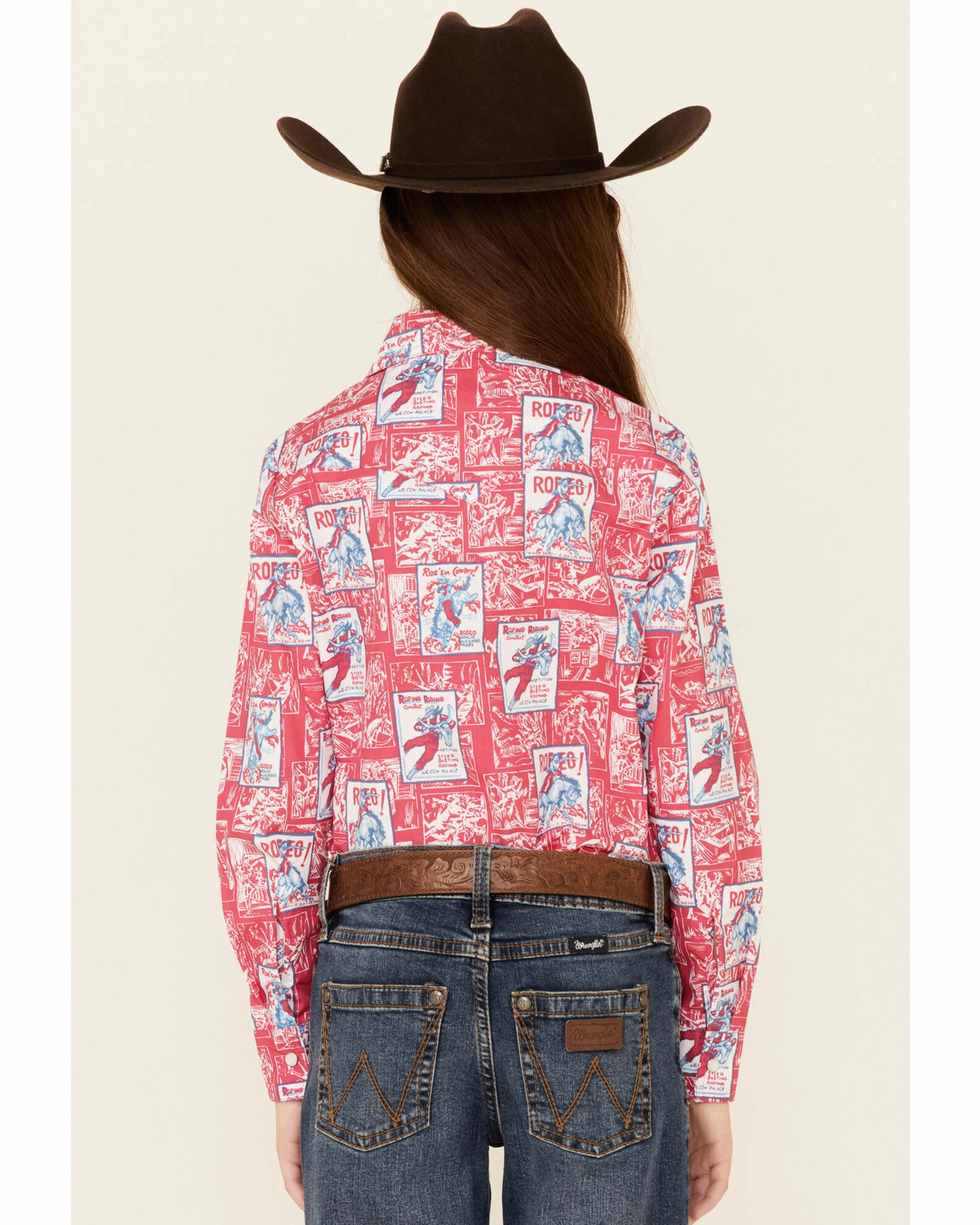 Panhandle Girls’ Hot Pink Rodeo Poster Print Long Sleeve Snap Western Shirt