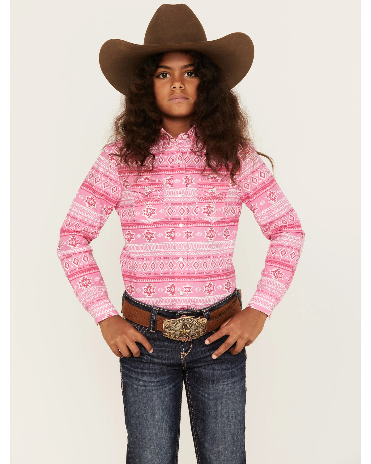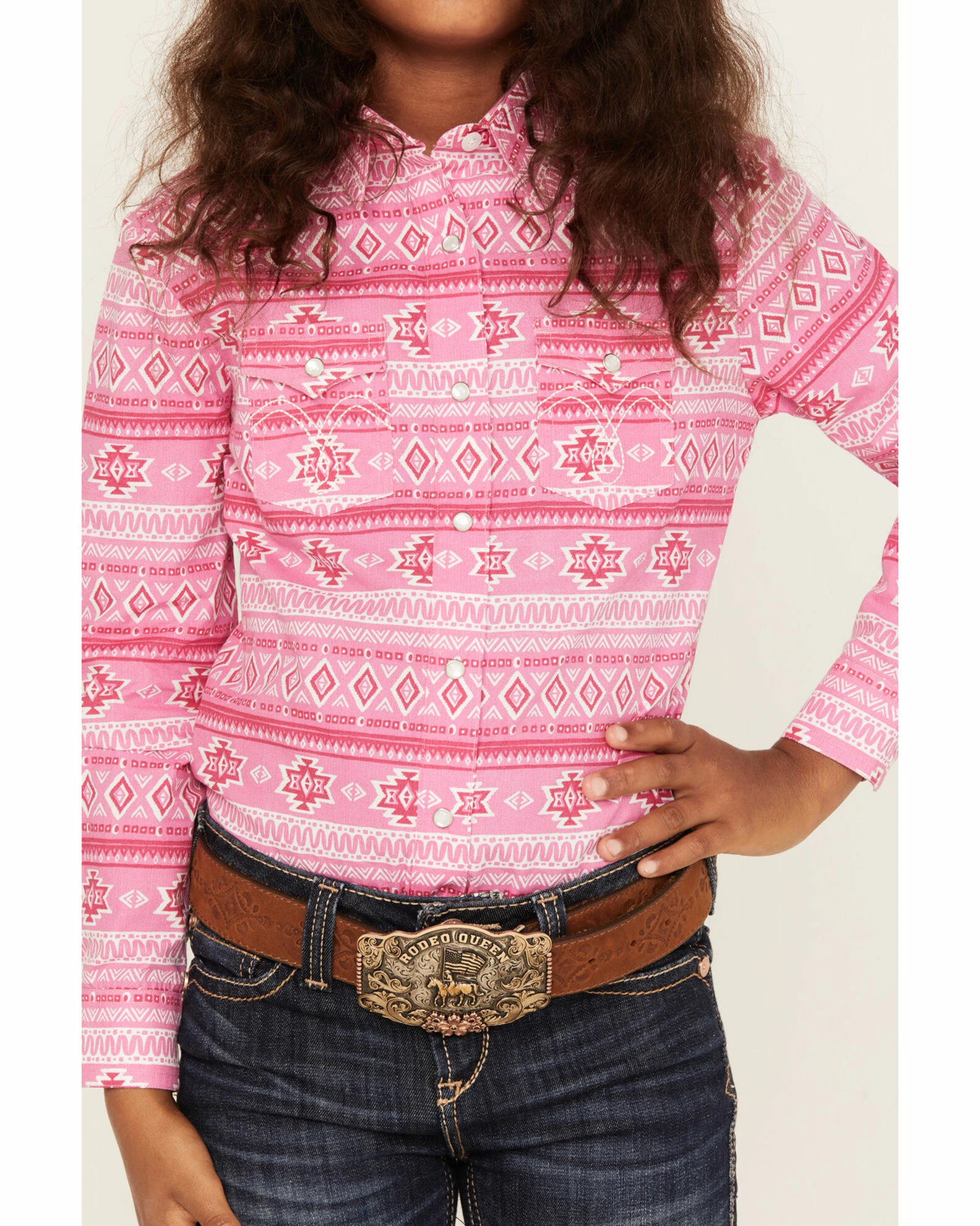Panhandle Girls’ Pink Southwest Print Long Sleeve Snap Shirt