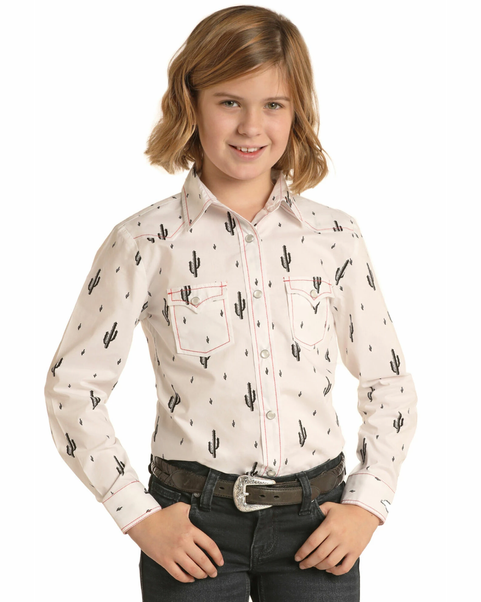 Be the first to review “Panhandle Girls’ White Cactus Print Long Sleeve Western Shirt ” Cancel reply
