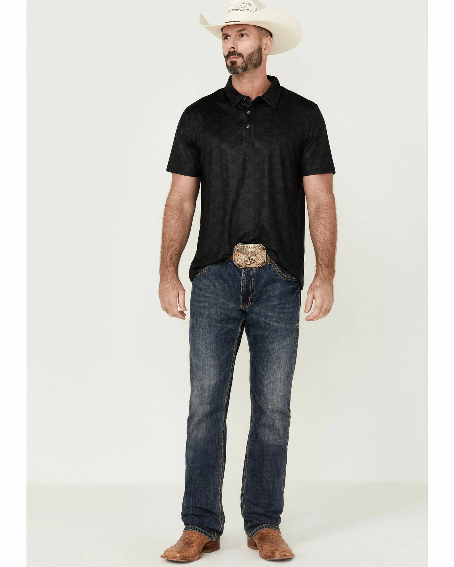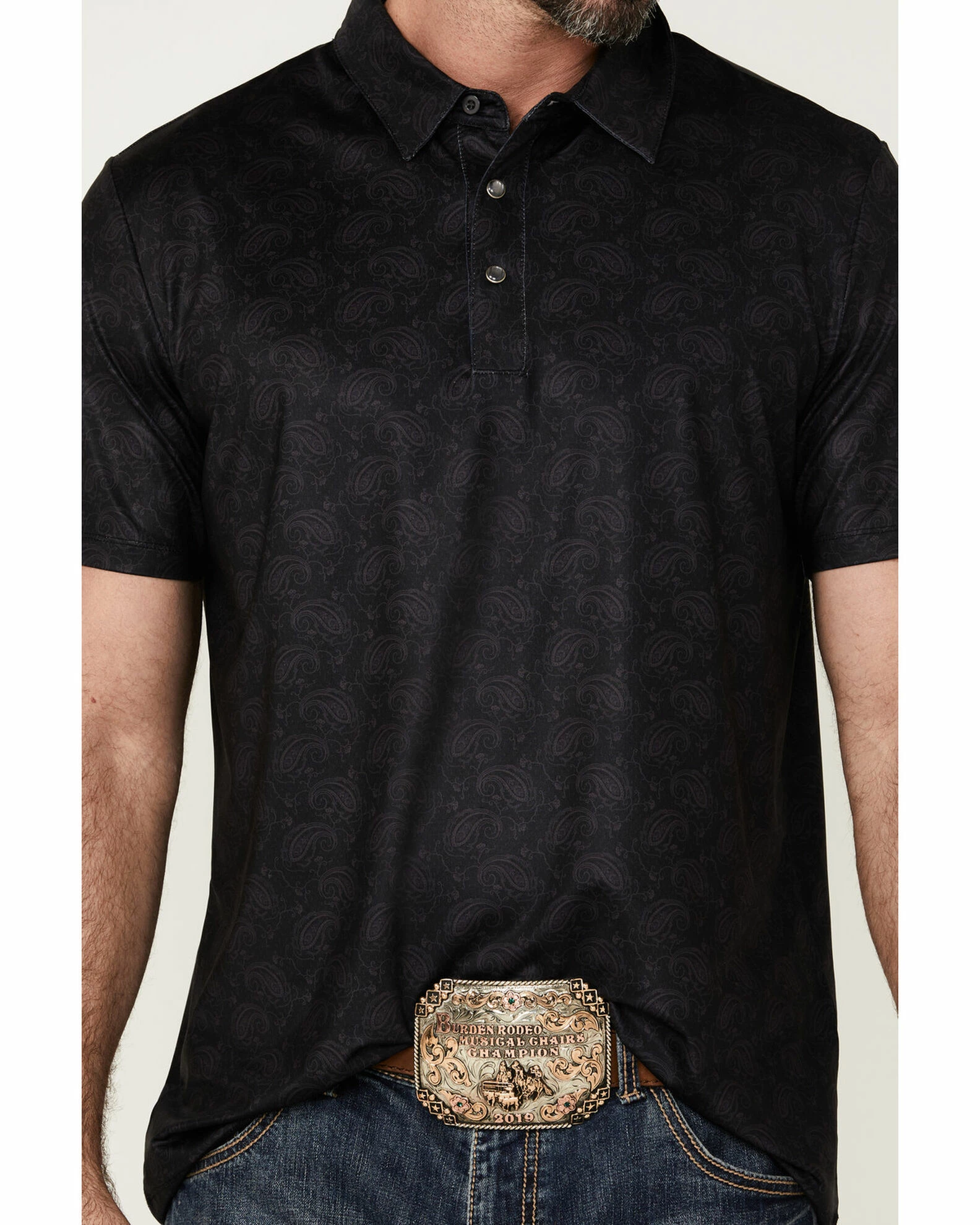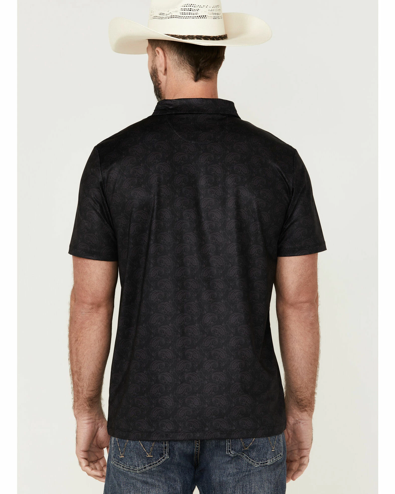 Panhandle Men’s Charcoal Performance Paisley Print Short Sleeve Snap Polo Shirt