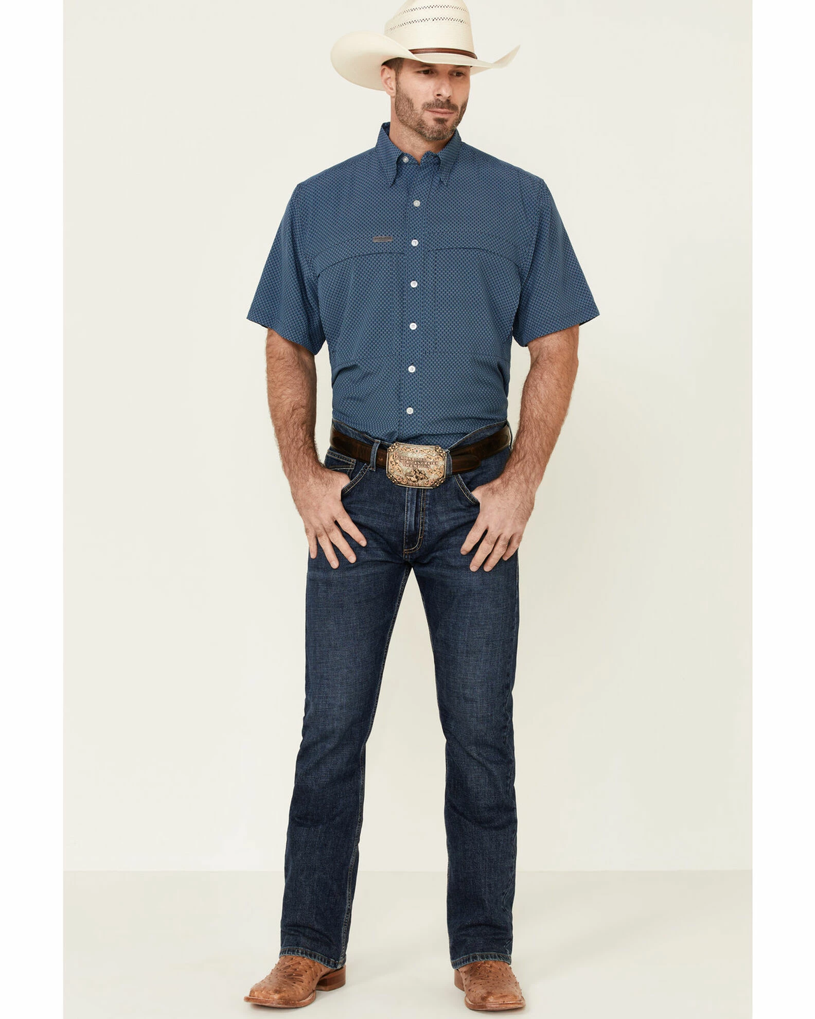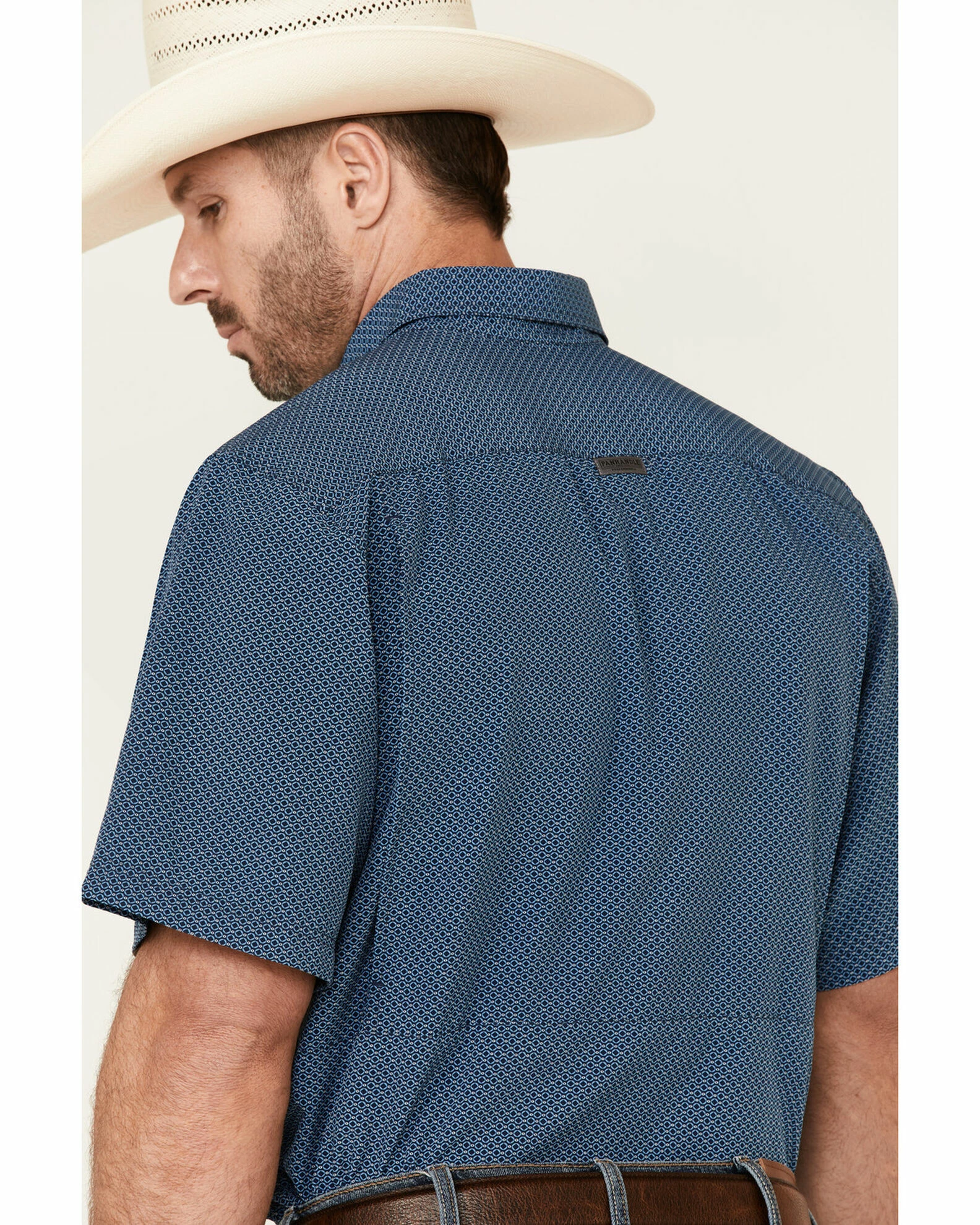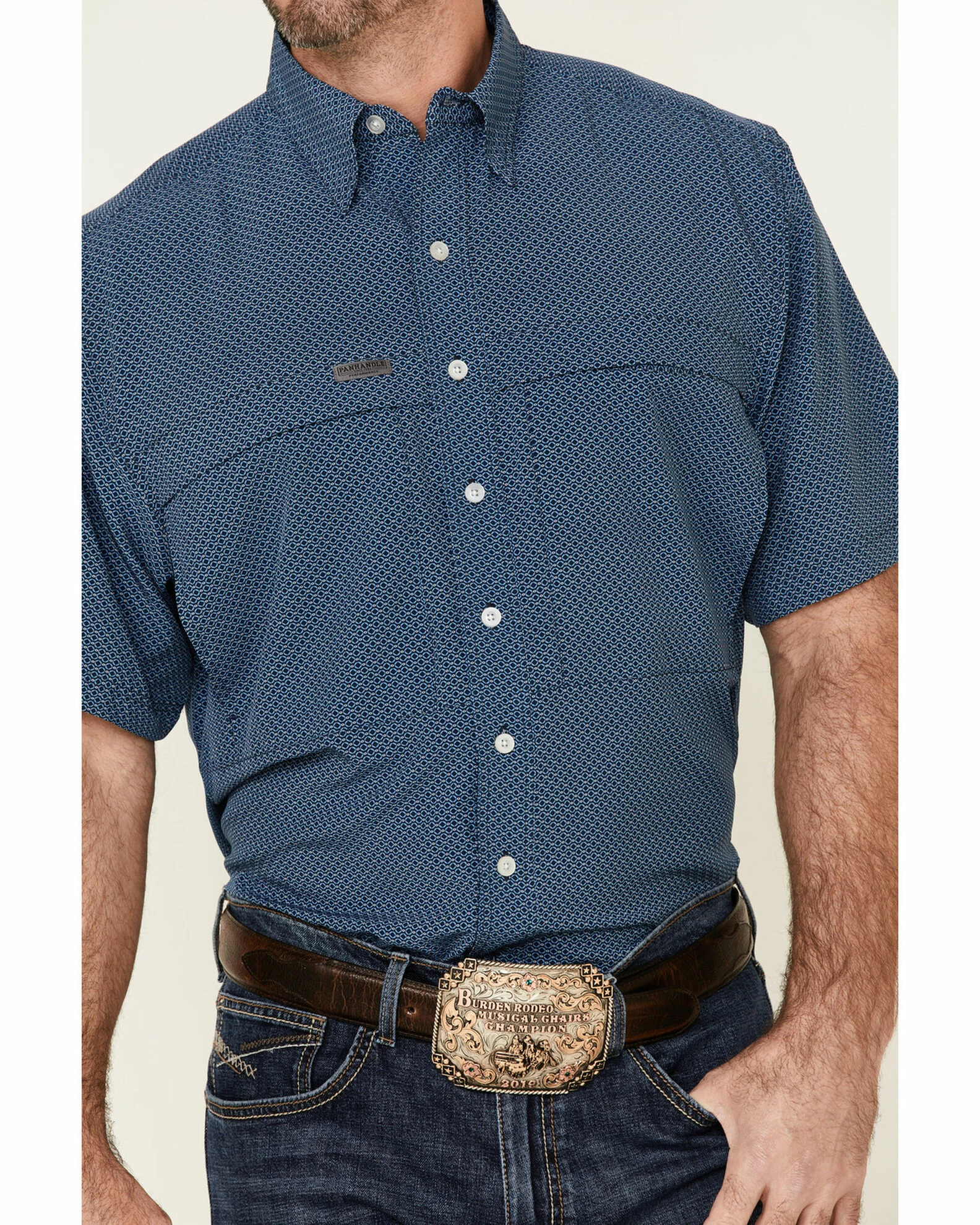 Panhandle Men’s Geo Print Performance Short Sleeve Western Shirt Blue