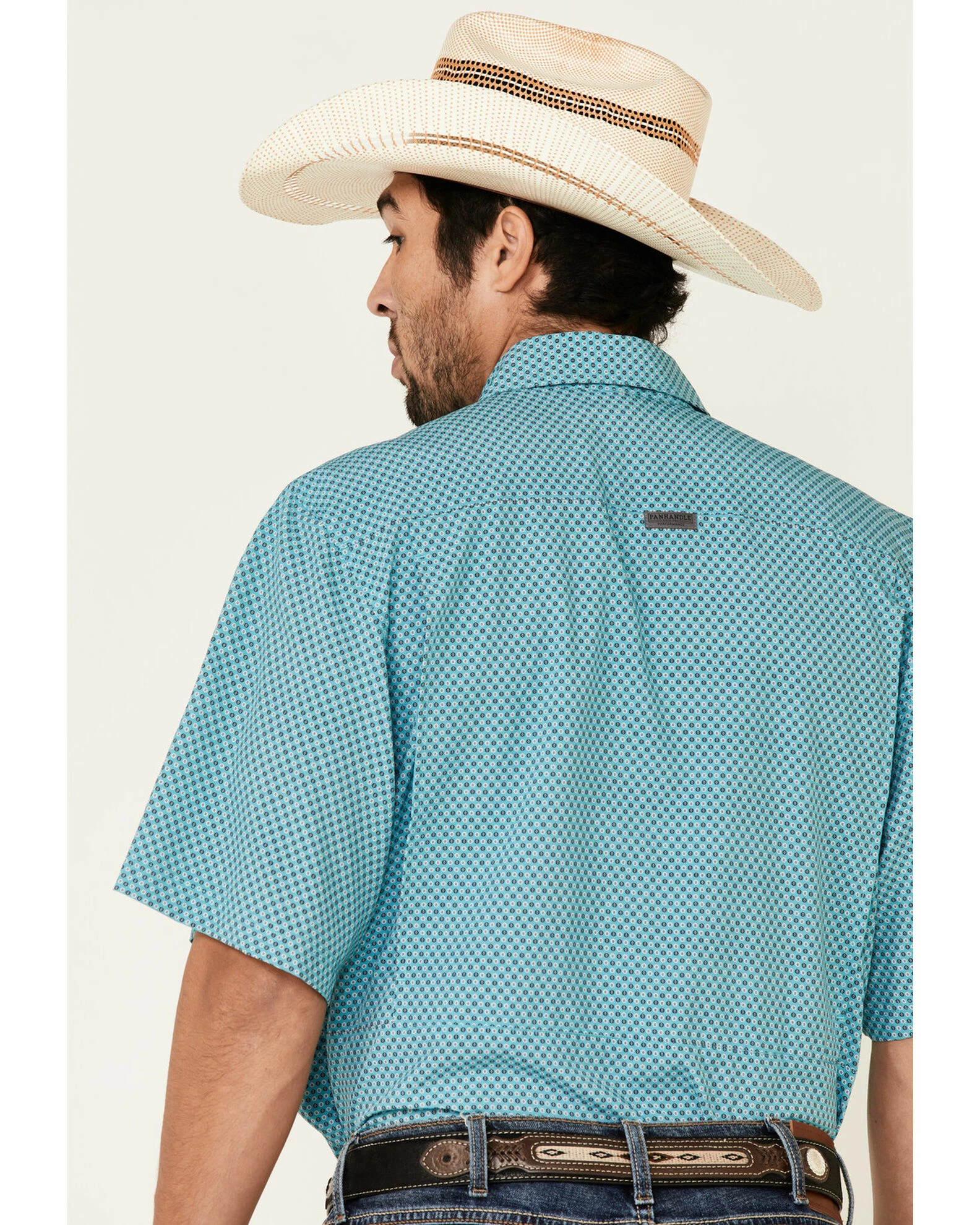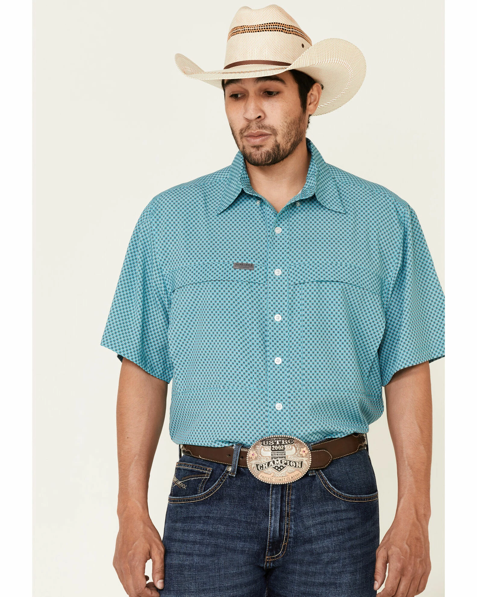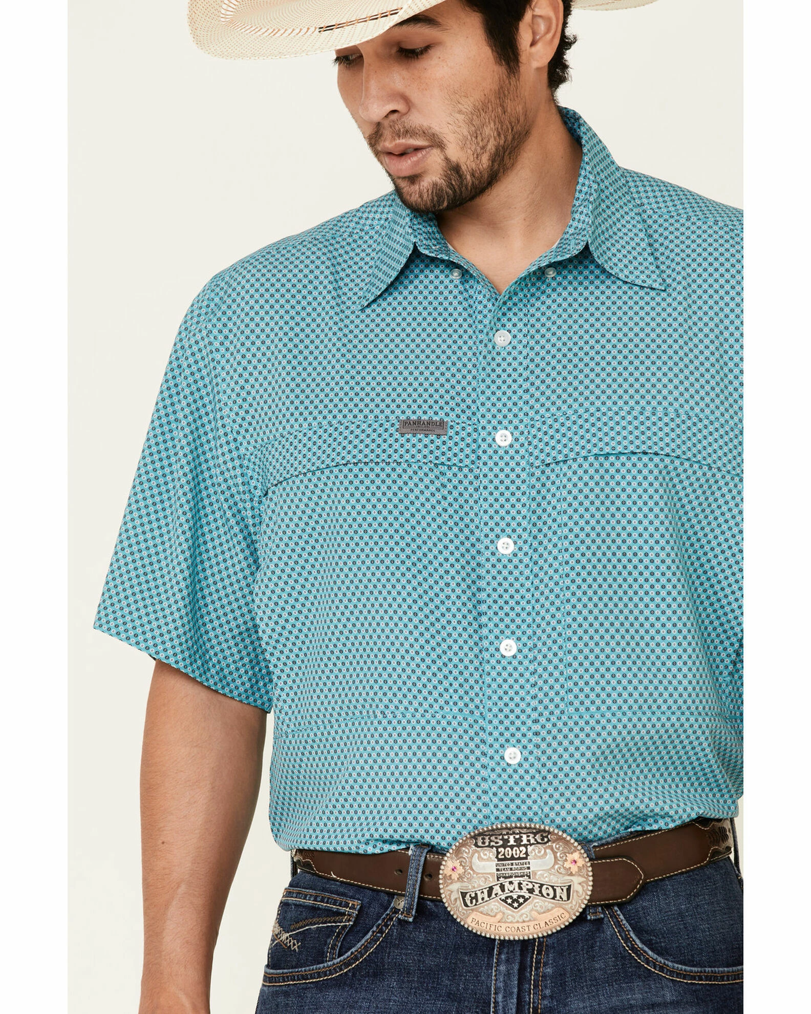 Panhandle Men’s Jade Geo Print Competition Short Sleeve Western Shirt Green