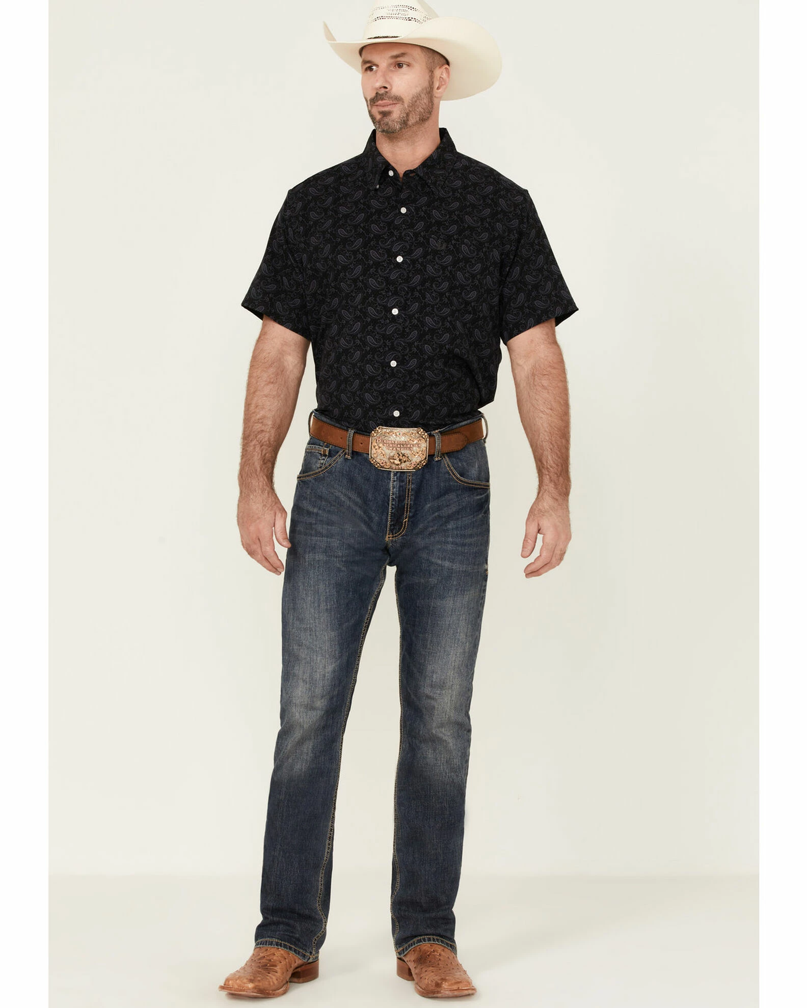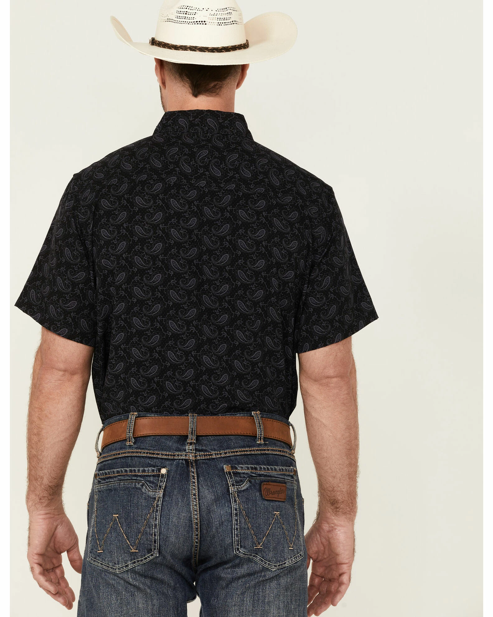Panhandle Men’s Performance Paisley Charcoal Print Short Sleeve Button-Down Western Shirt