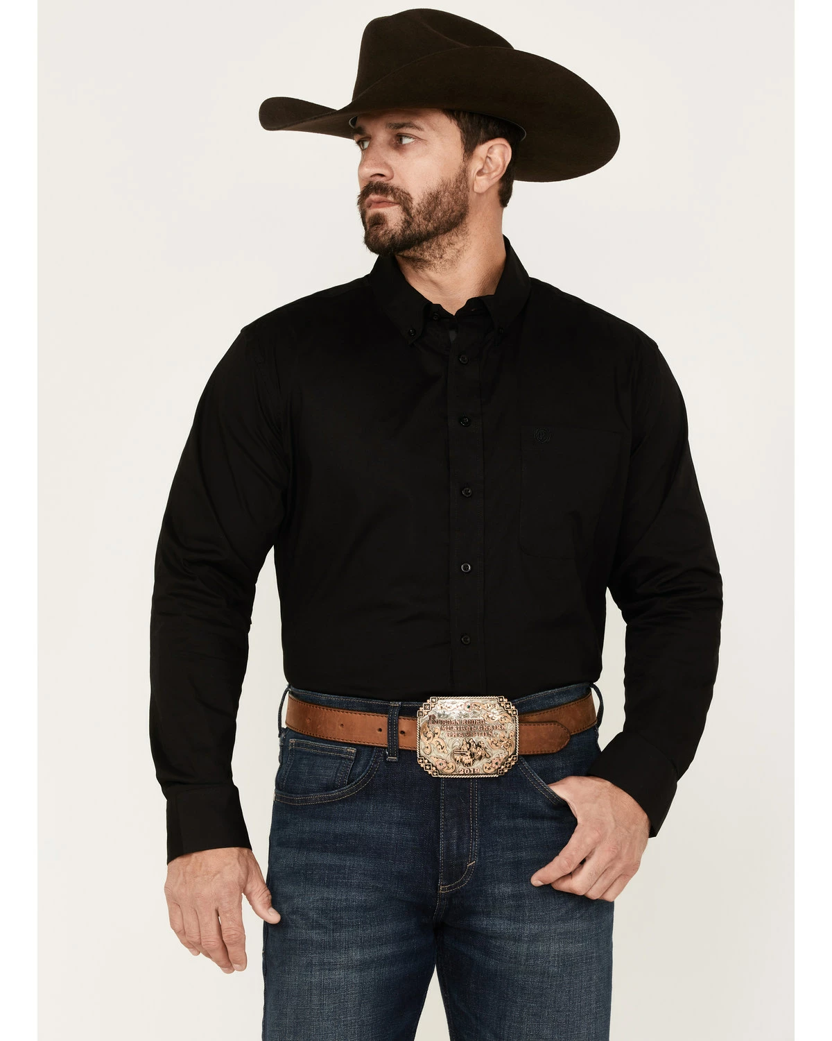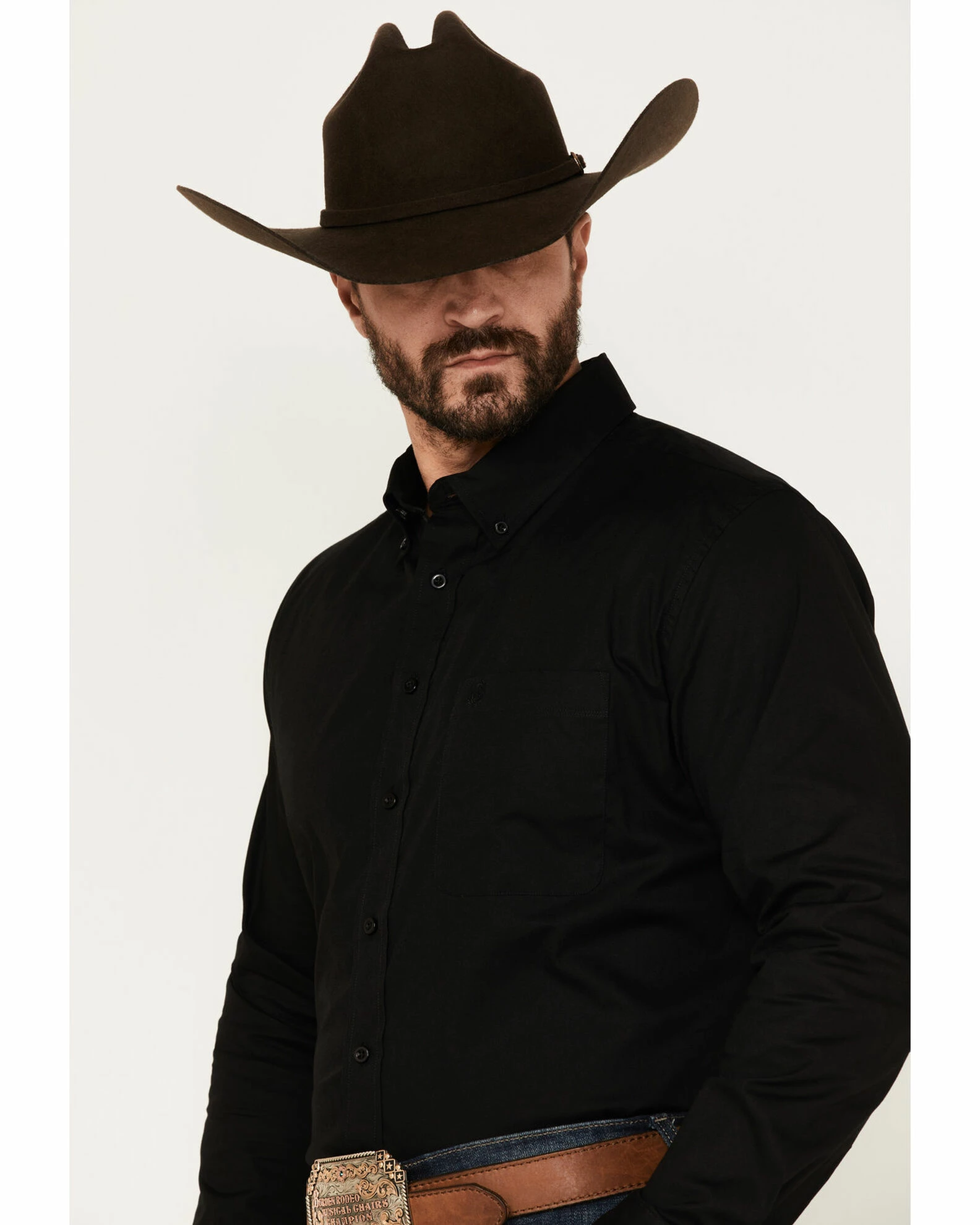 Panhandle Men’s Select Solid Long Sleeve Button-Down Stretch Western Shirt Black