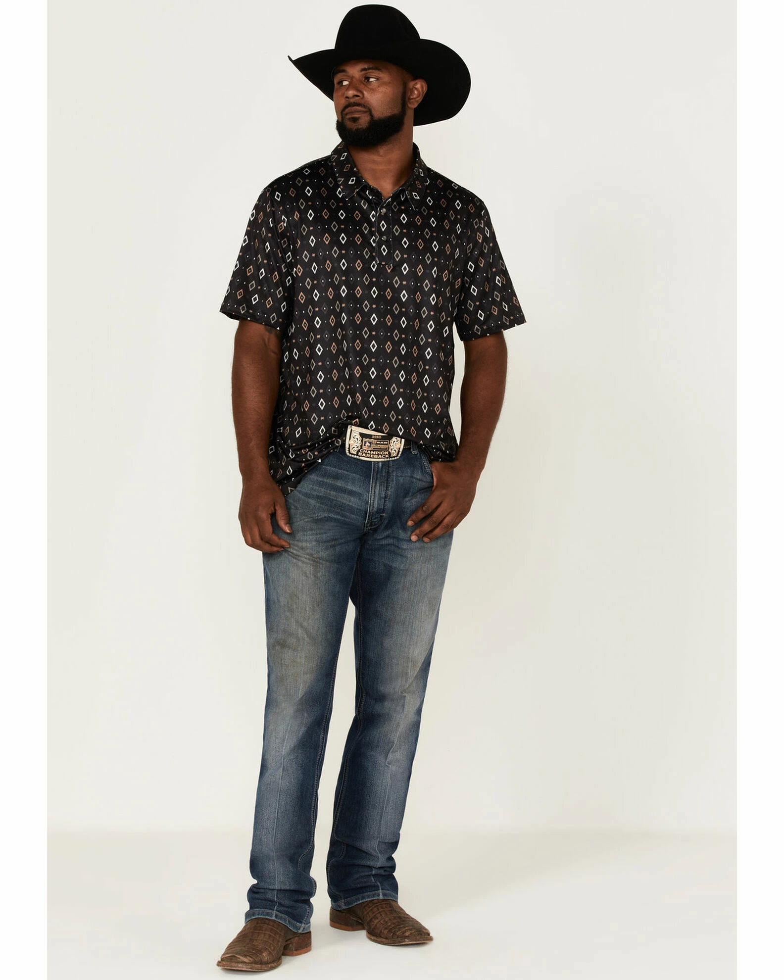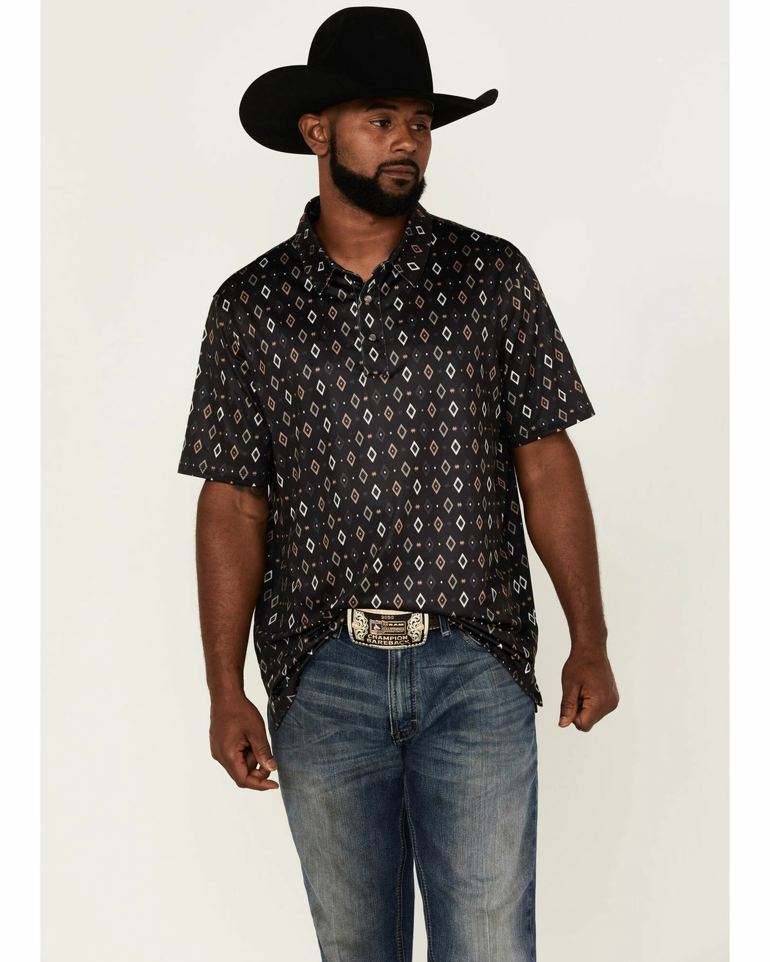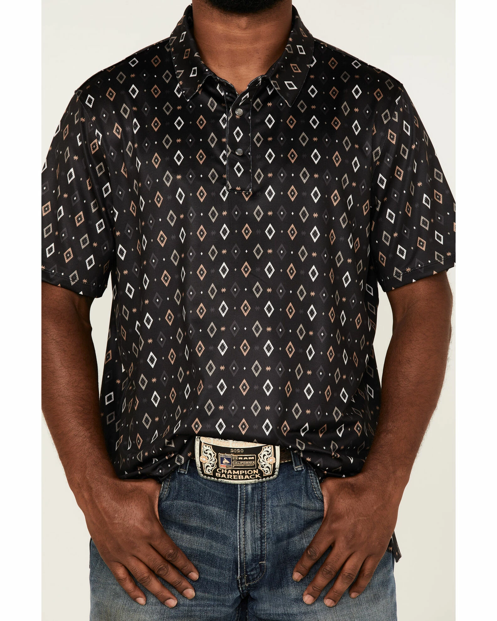 Panhandle Men’s Southwestern Diamond Print Performance Short Sleeve Polo Shirt Black