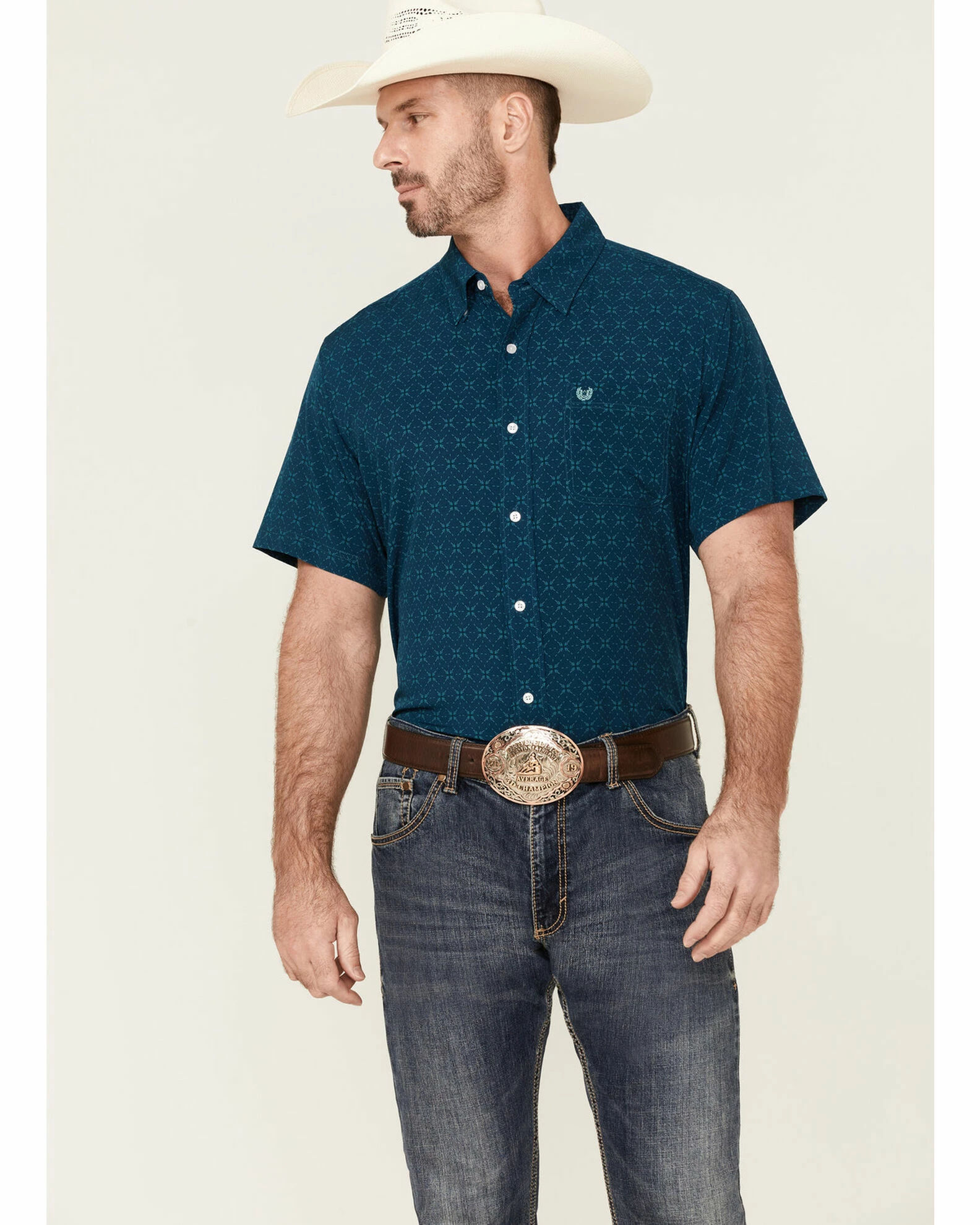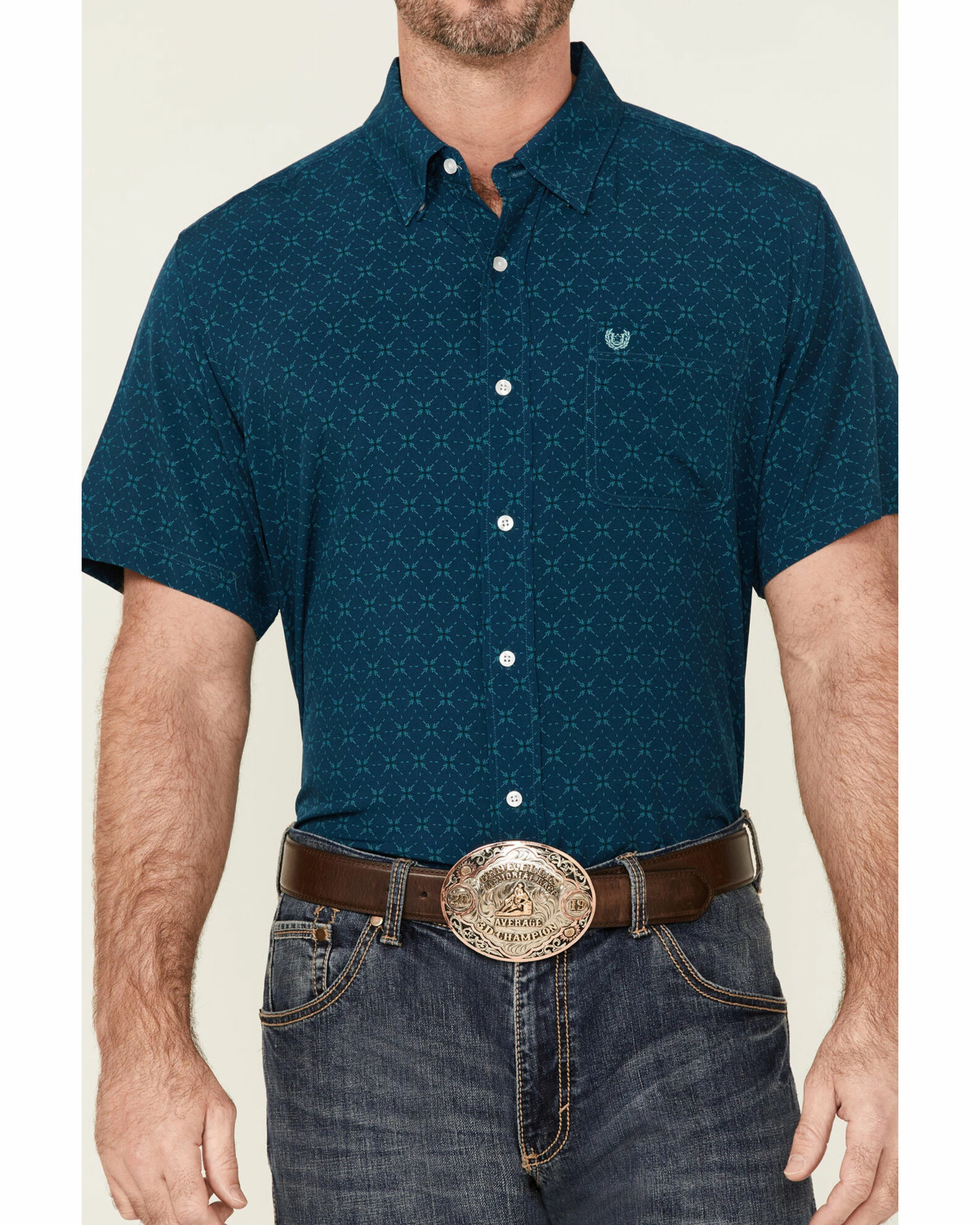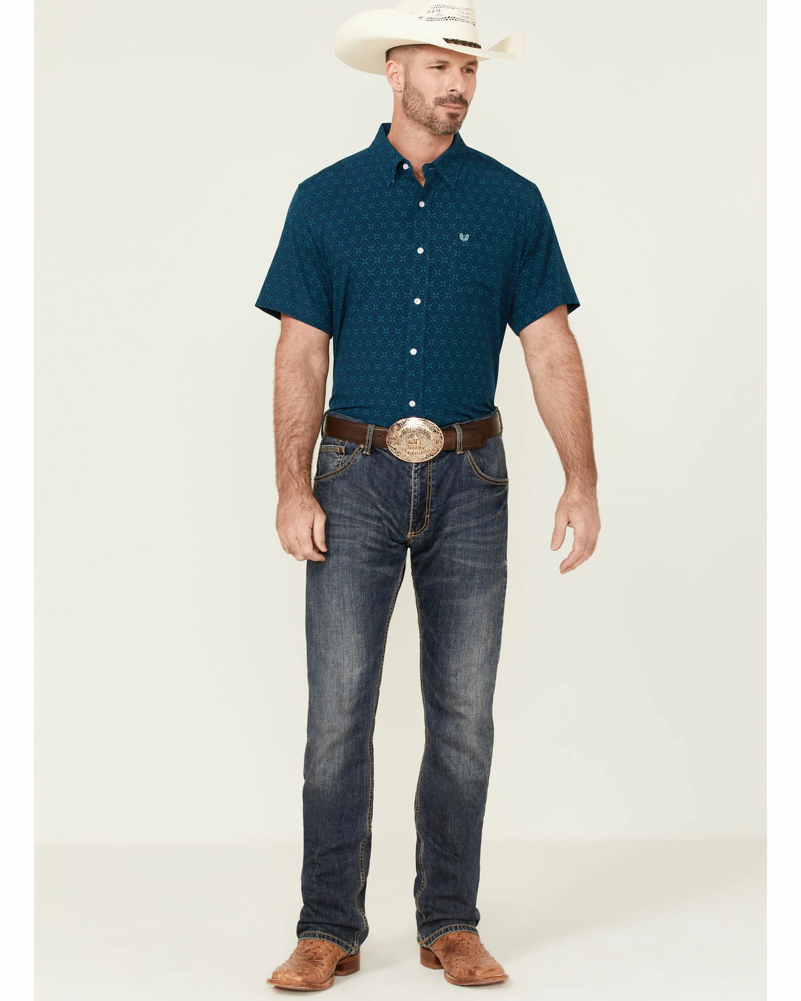 Panhandle Men’s Starburst Geo Print Performance Short Sleeve Button-Down Western Shirt Blue