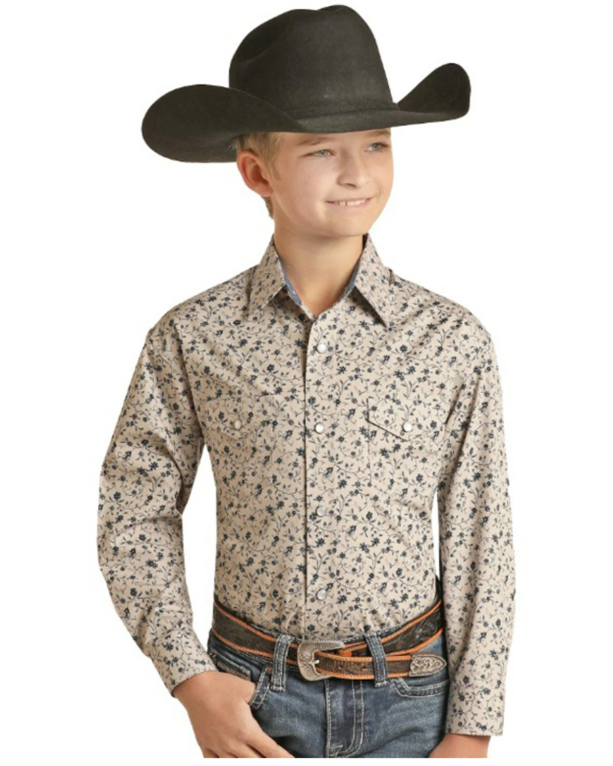 Panhandle Pandhandle Boys’ Floral Print Long Sleeve Snap Western Shirt Beige/khaki