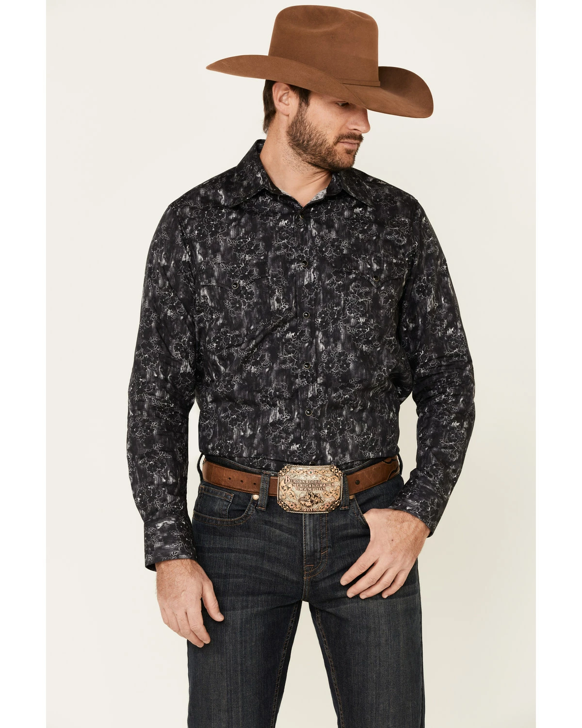 Panhandle Rock & Roll Denim Men’s Charcoal Floral Print Long Sleeve Western Shirt