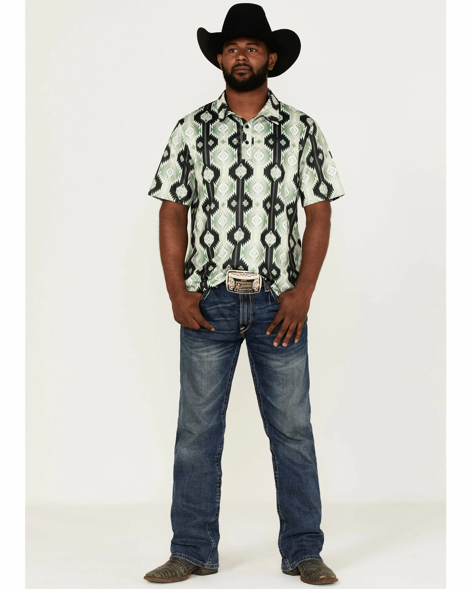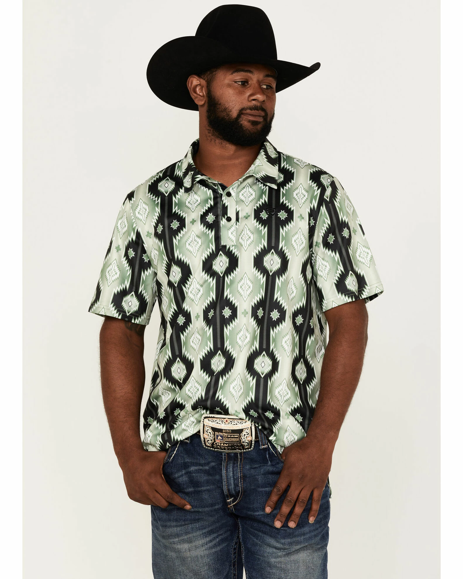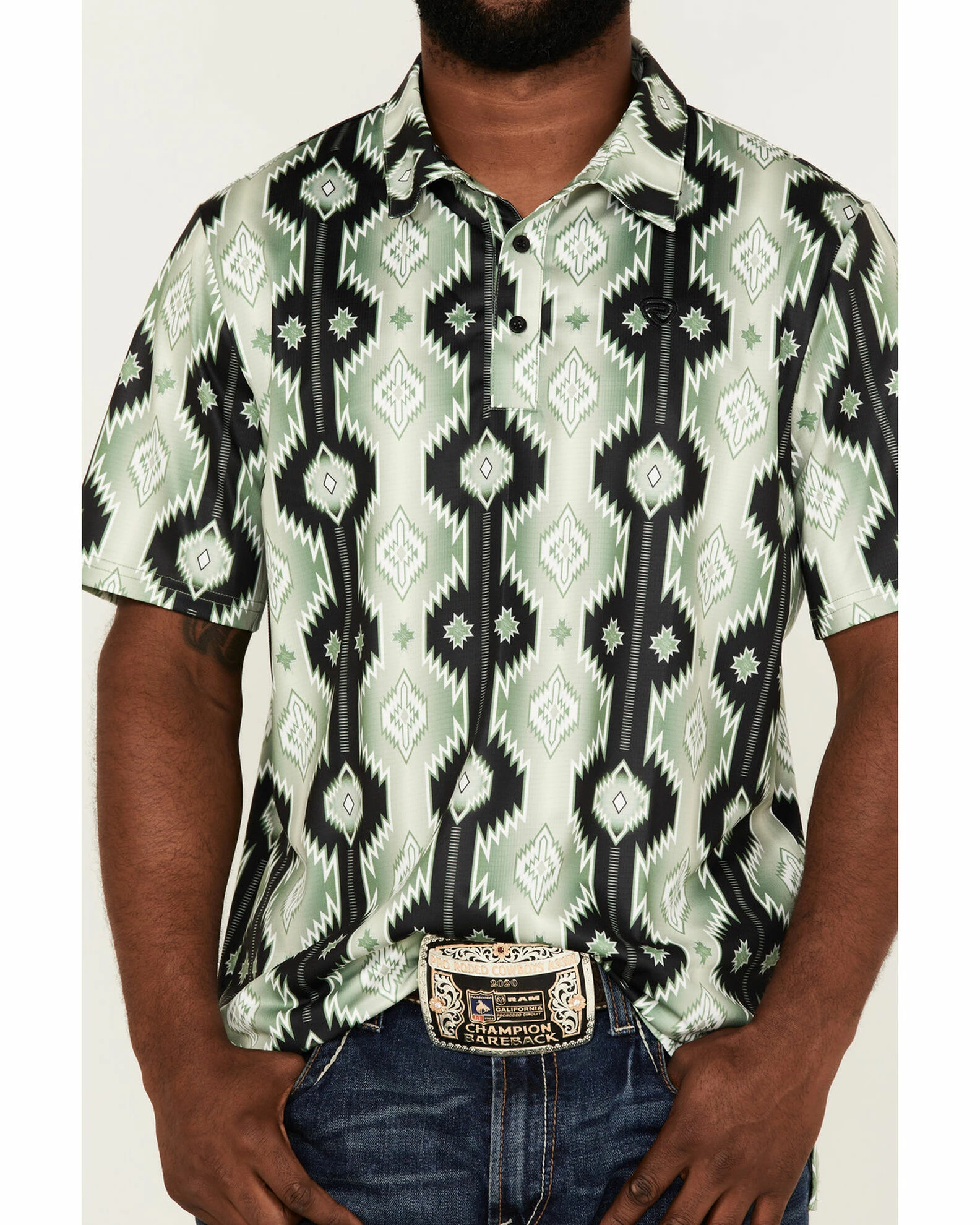 Panhandle Rock & Roll Denim Men’s Southwest Printed Polo Shirt Olive
