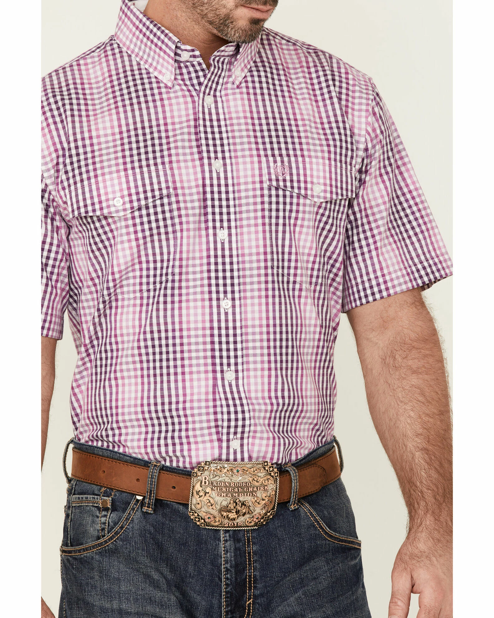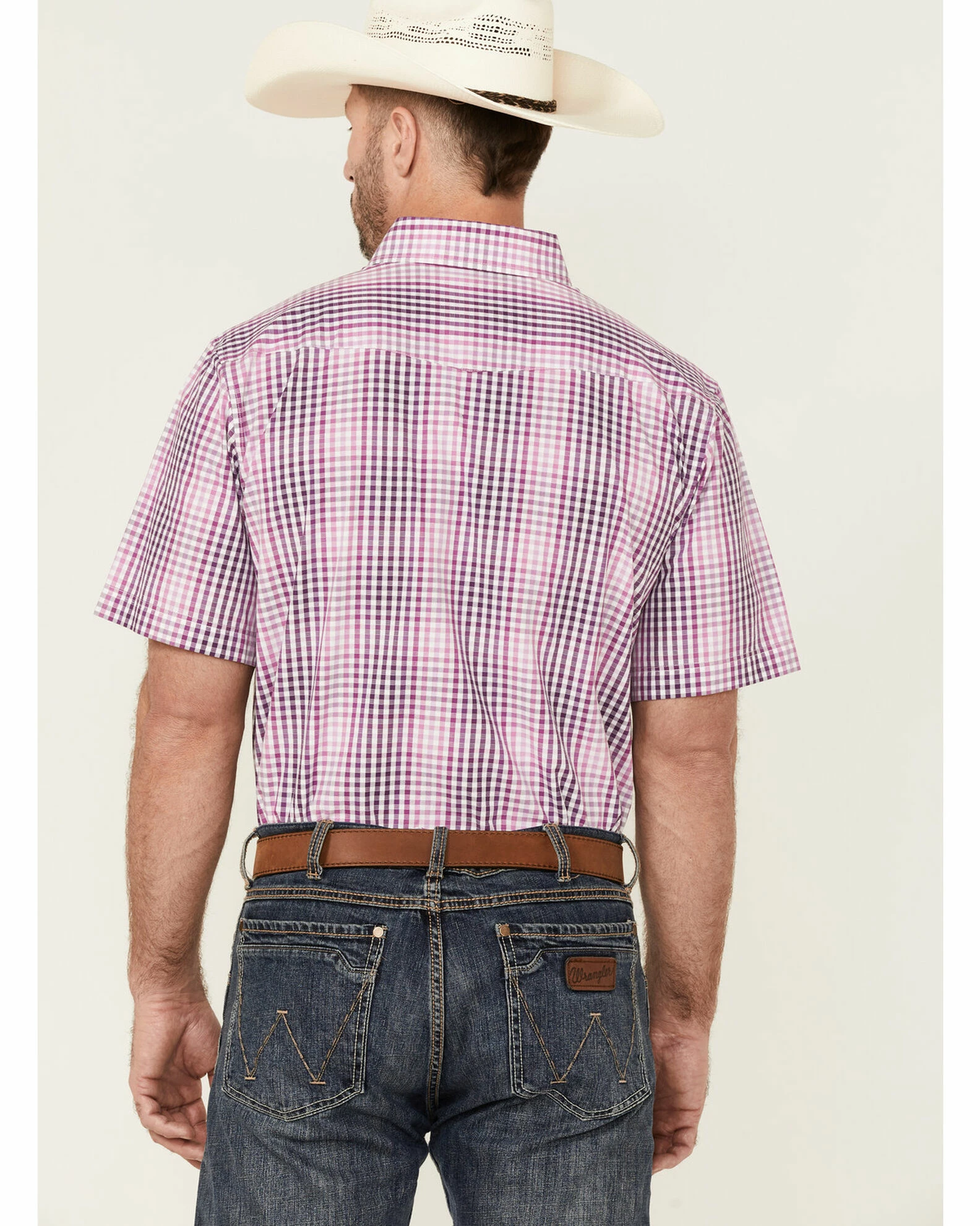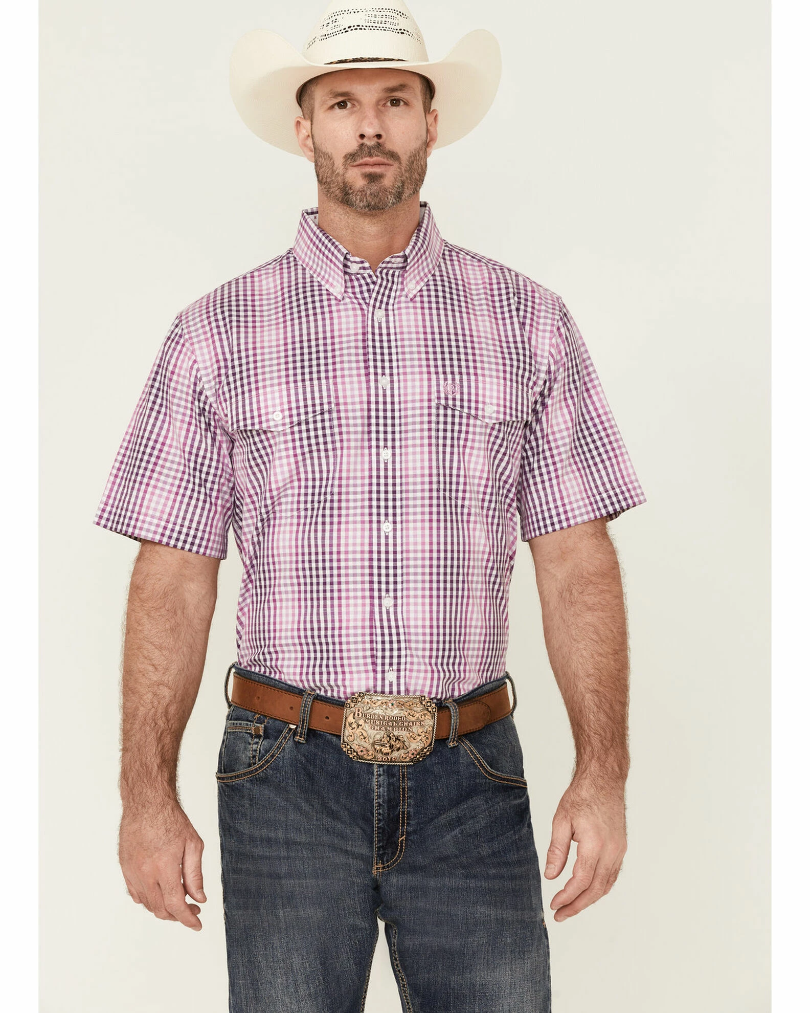 Panhandle Select Men’s Check Plaid Short Sleeve Button-Down Dark Orchid Western Shirt Purple
