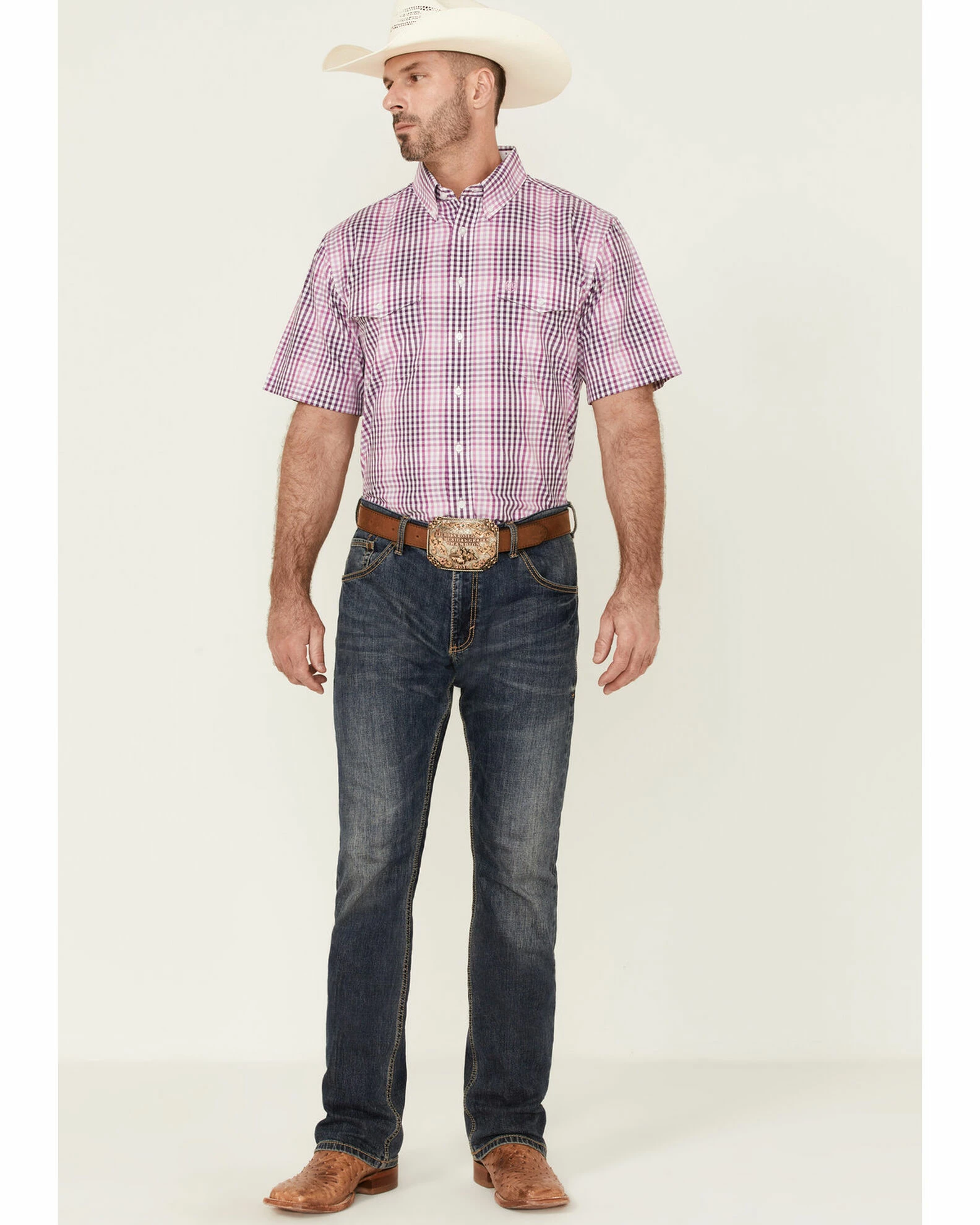 Be the first to review “Panhandle Select Men’s Check Plaid Short Sleeve Button-Down Dark Orchid Western Shirt Purple” Cancel reply