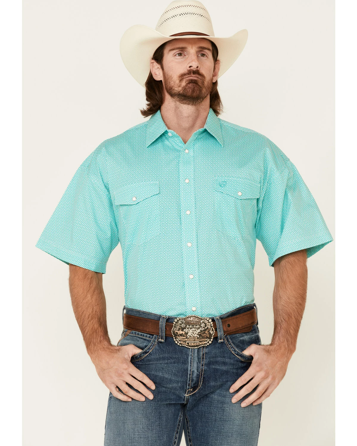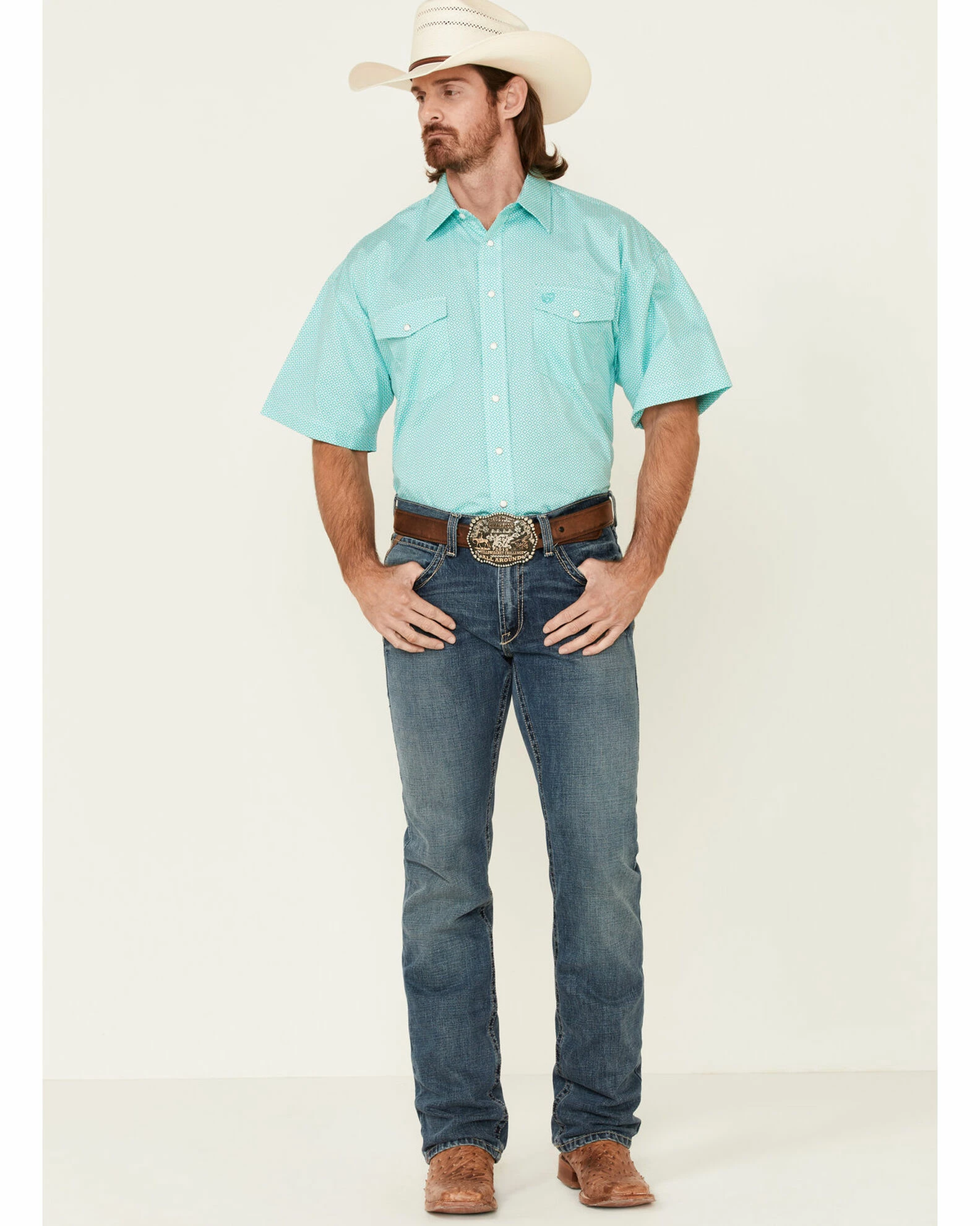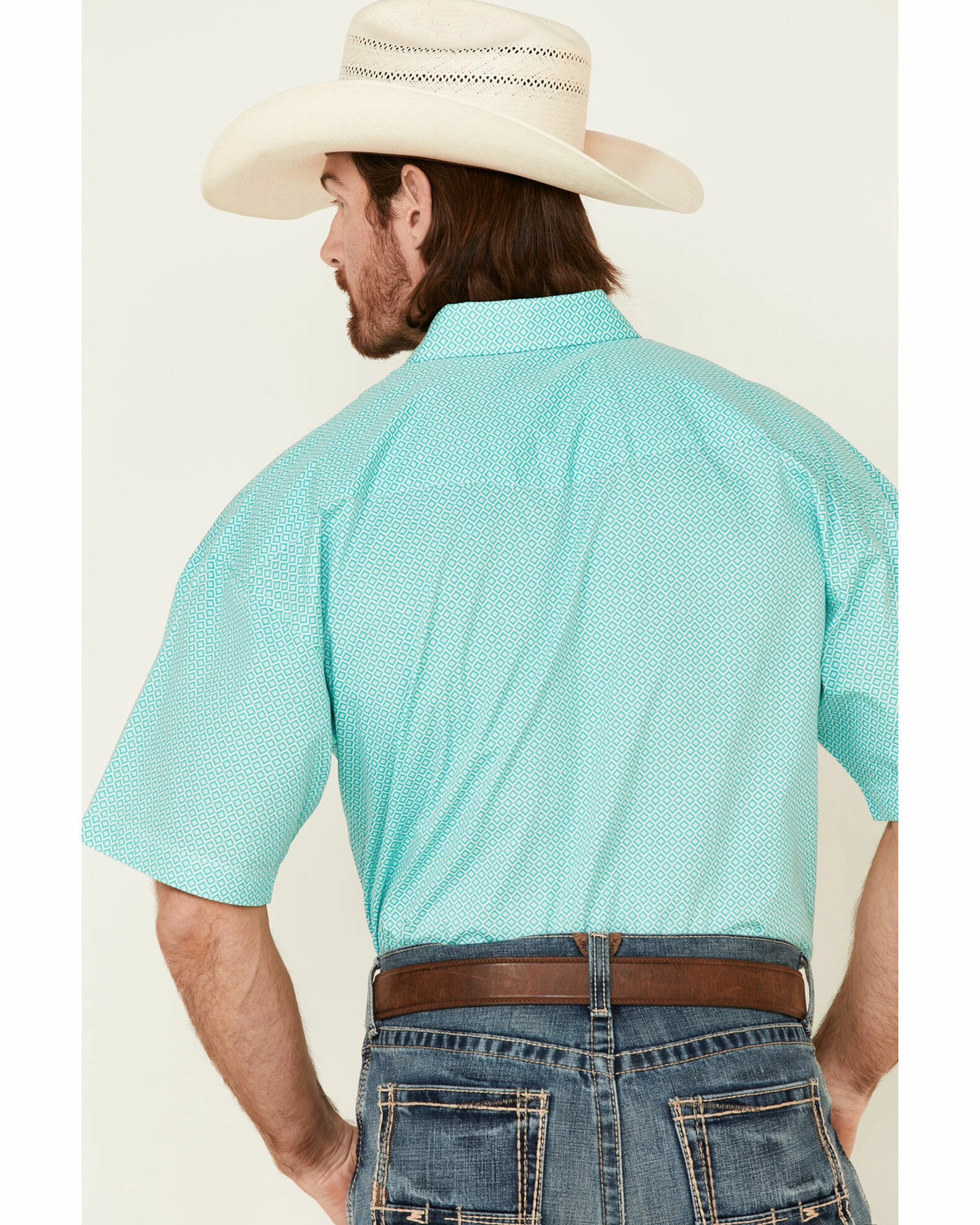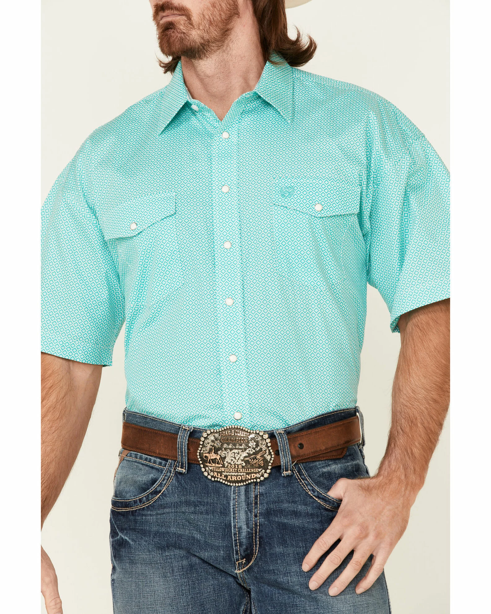 Panhandle Select Men’s Emerald Geo Print Short Sleeve Snap Western Shirt Green