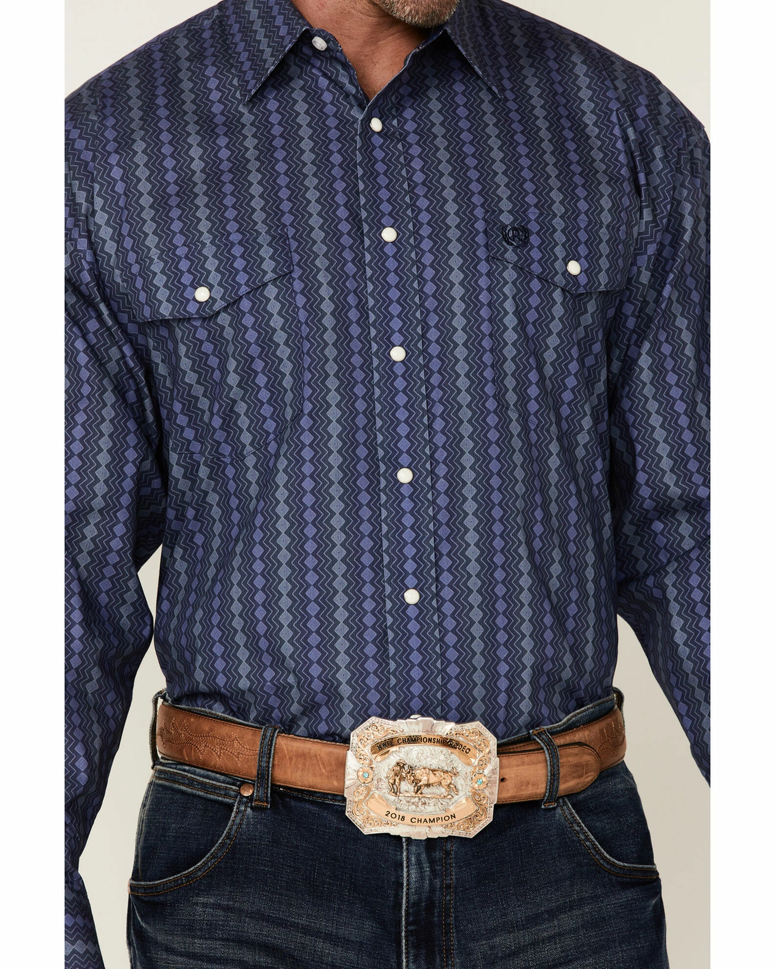 - Pearl snap down placket
