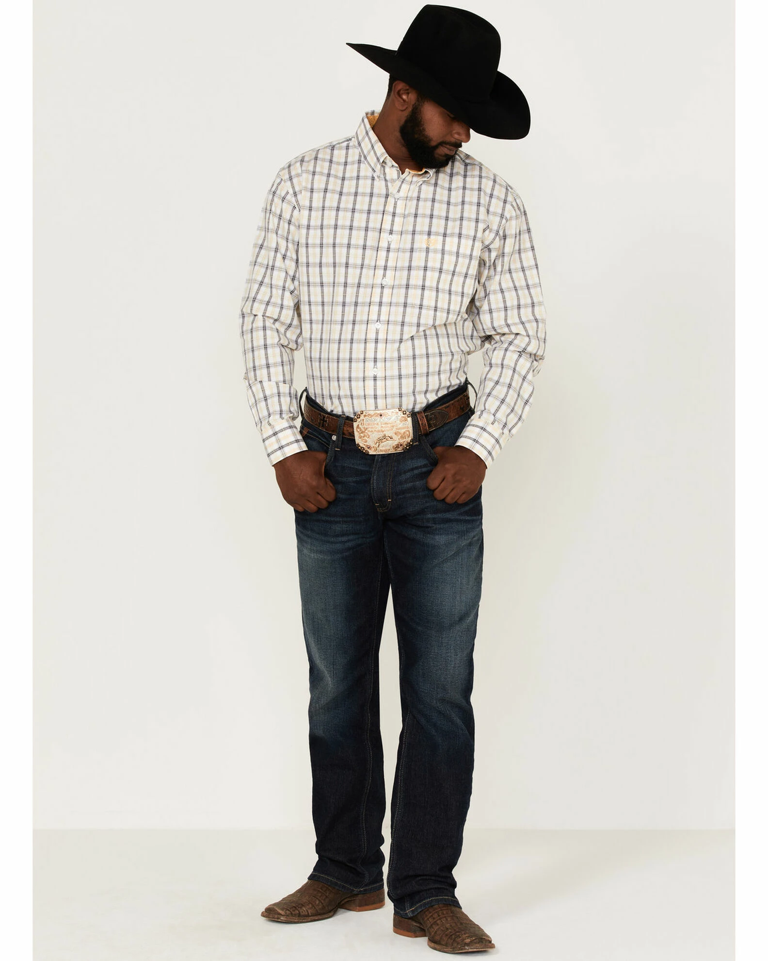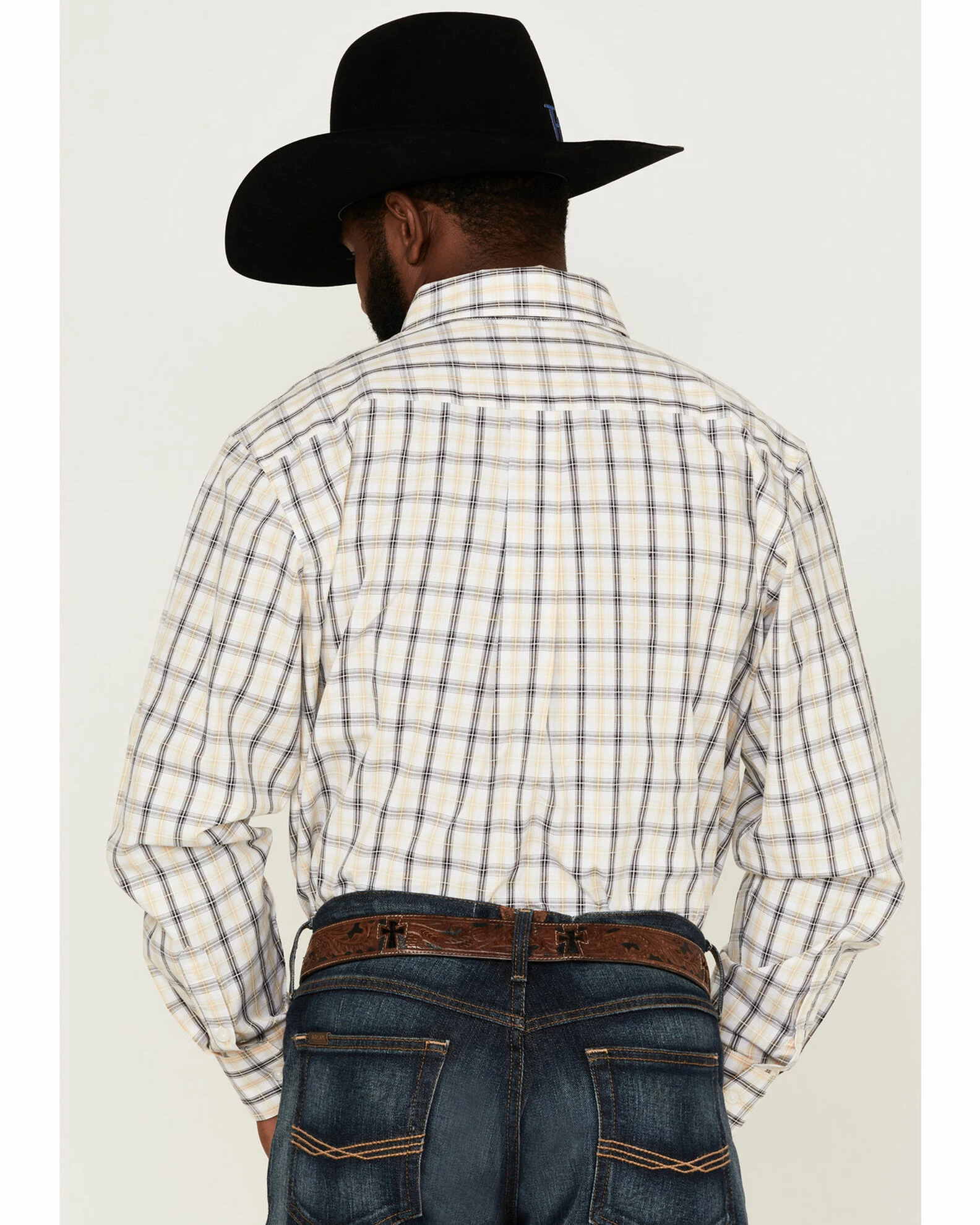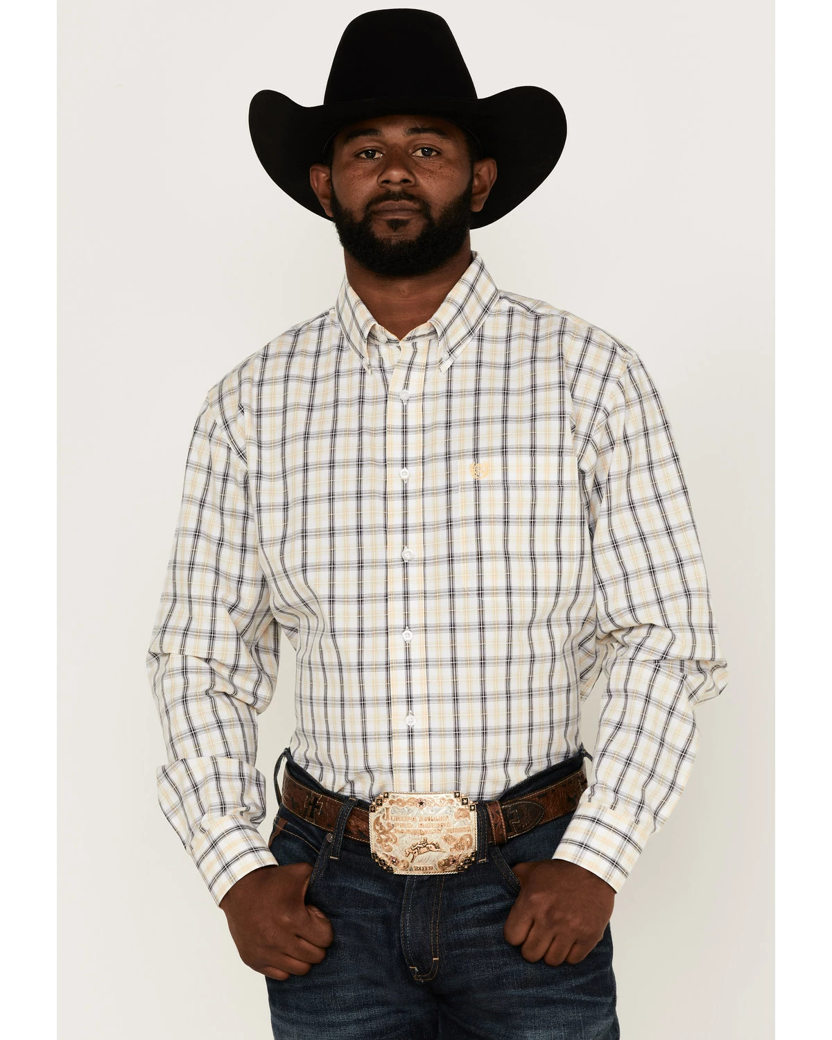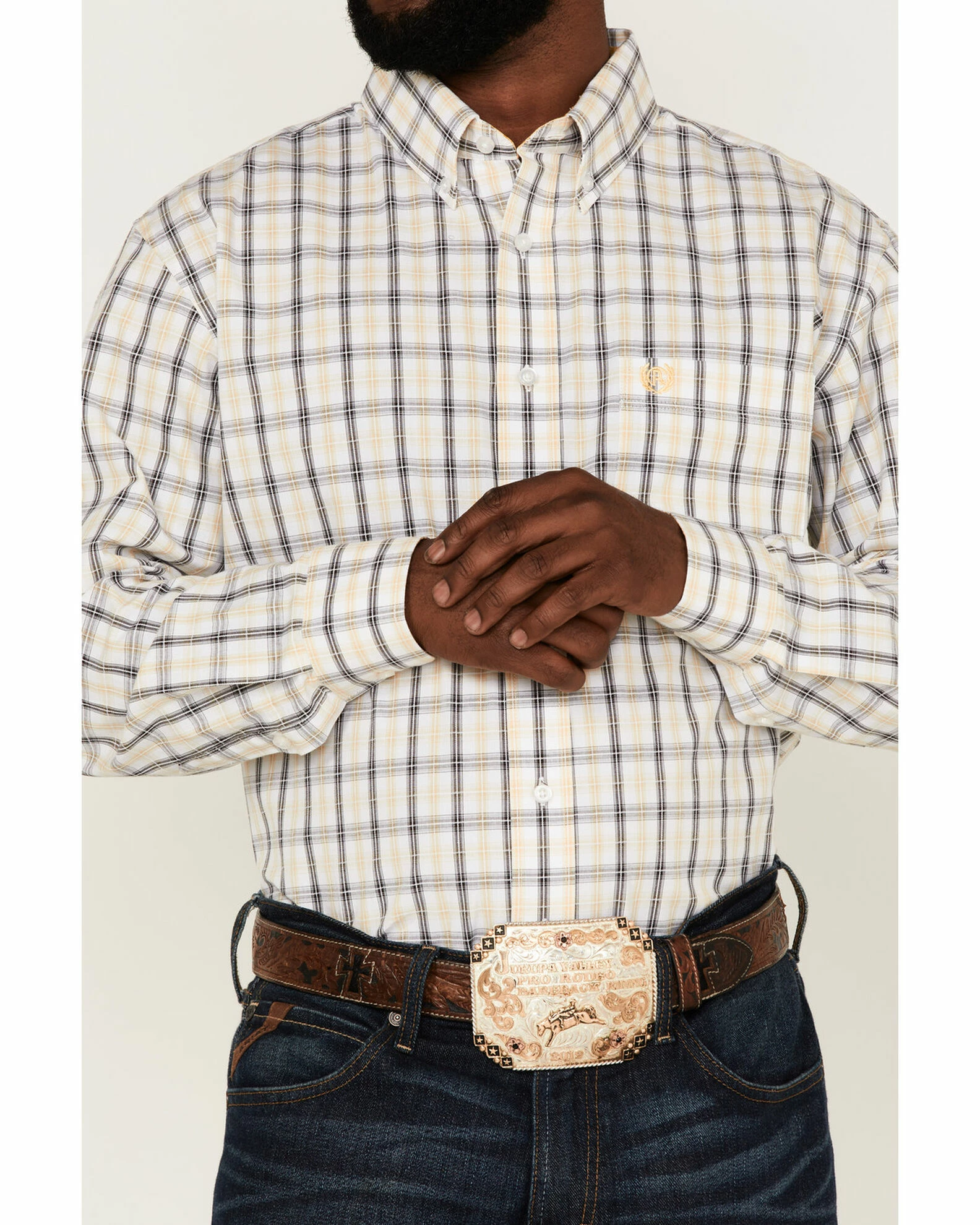 Panhandle Select Men’s Plaid Long Sleeve Button-Down Western Shirt Yellow