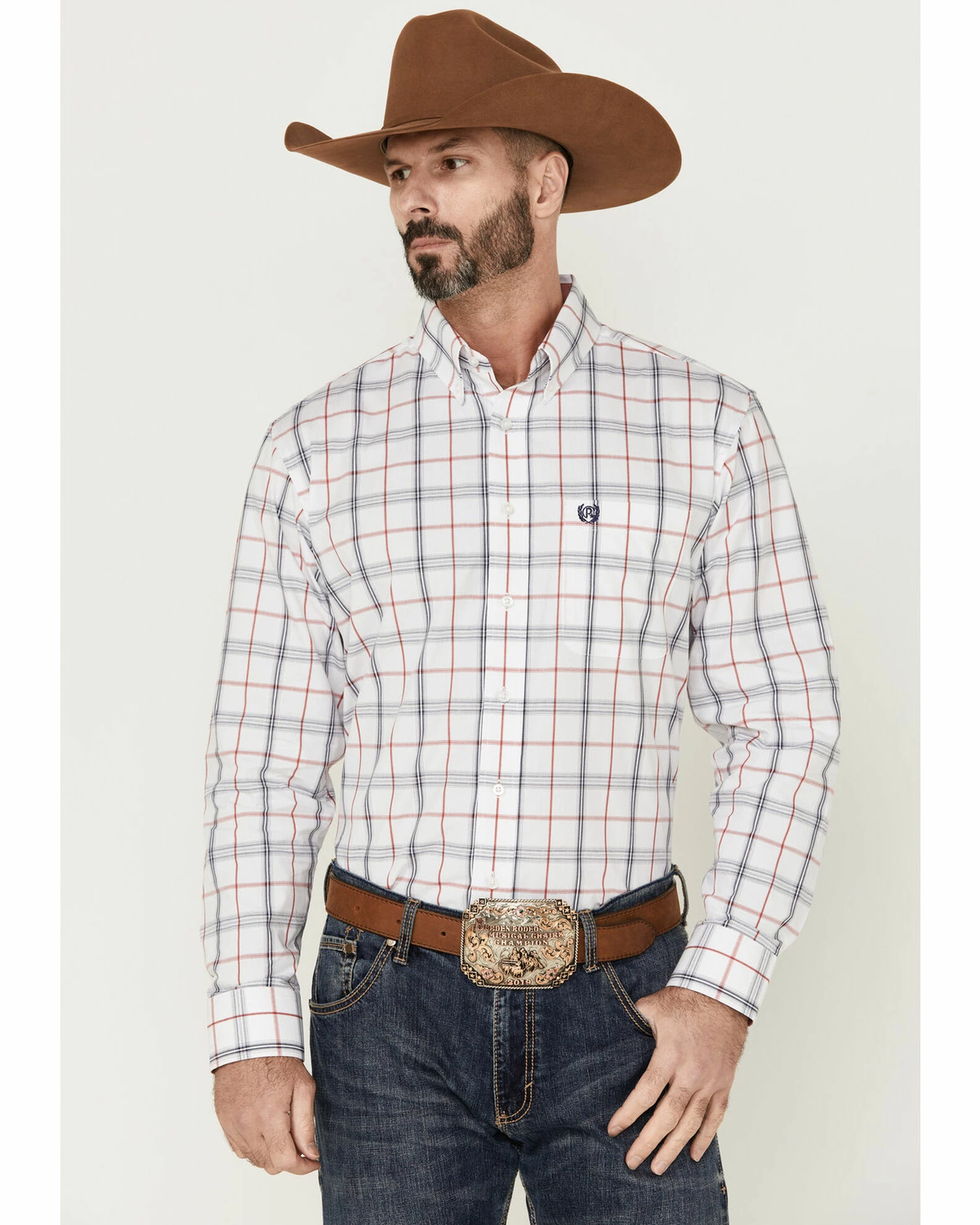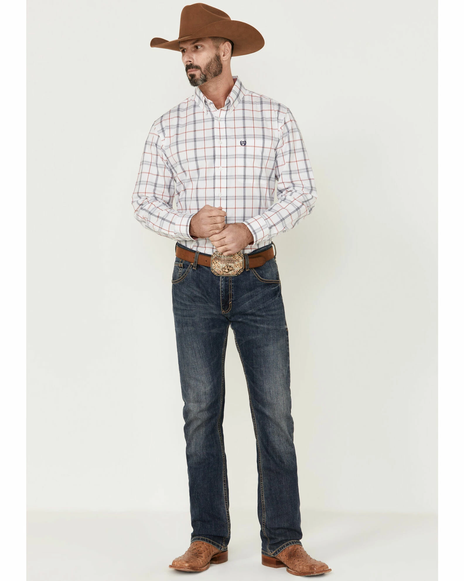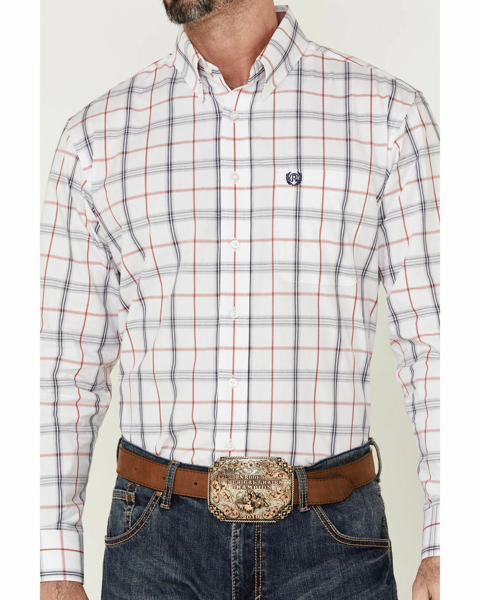 Panhandle Select Men’s Red Plaid Long Sleeve Button-Down Western Shirt
