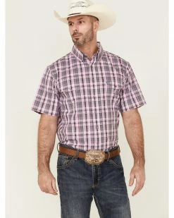 Panhandle Select Men’s Small Plaid Purple Short Sleeve Button-Down Western Shirt
