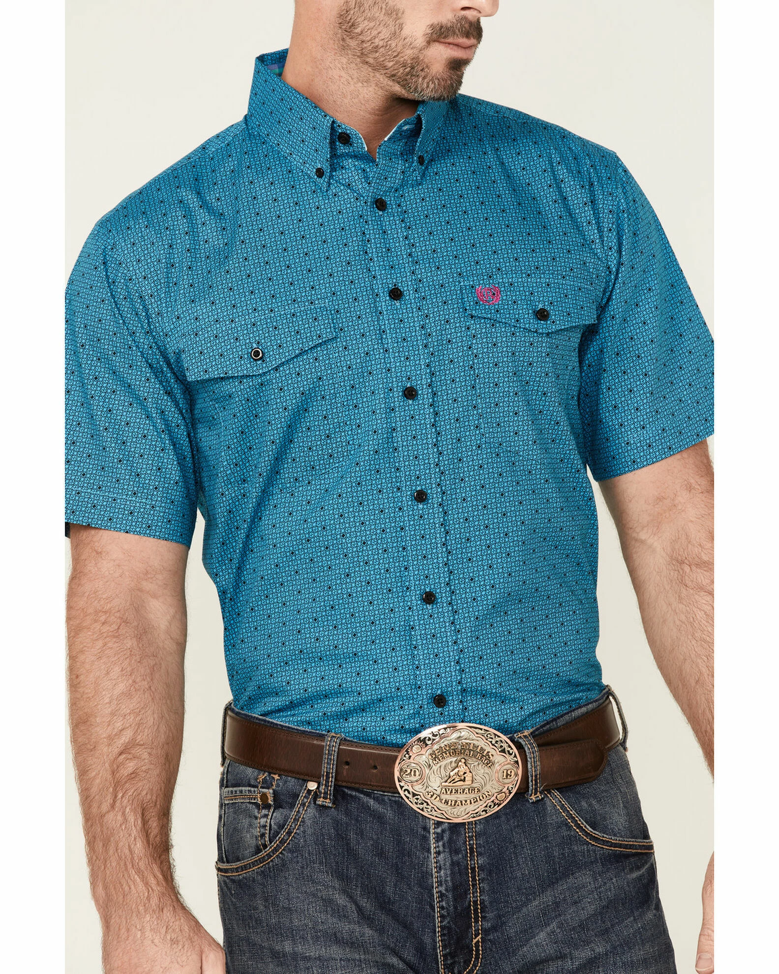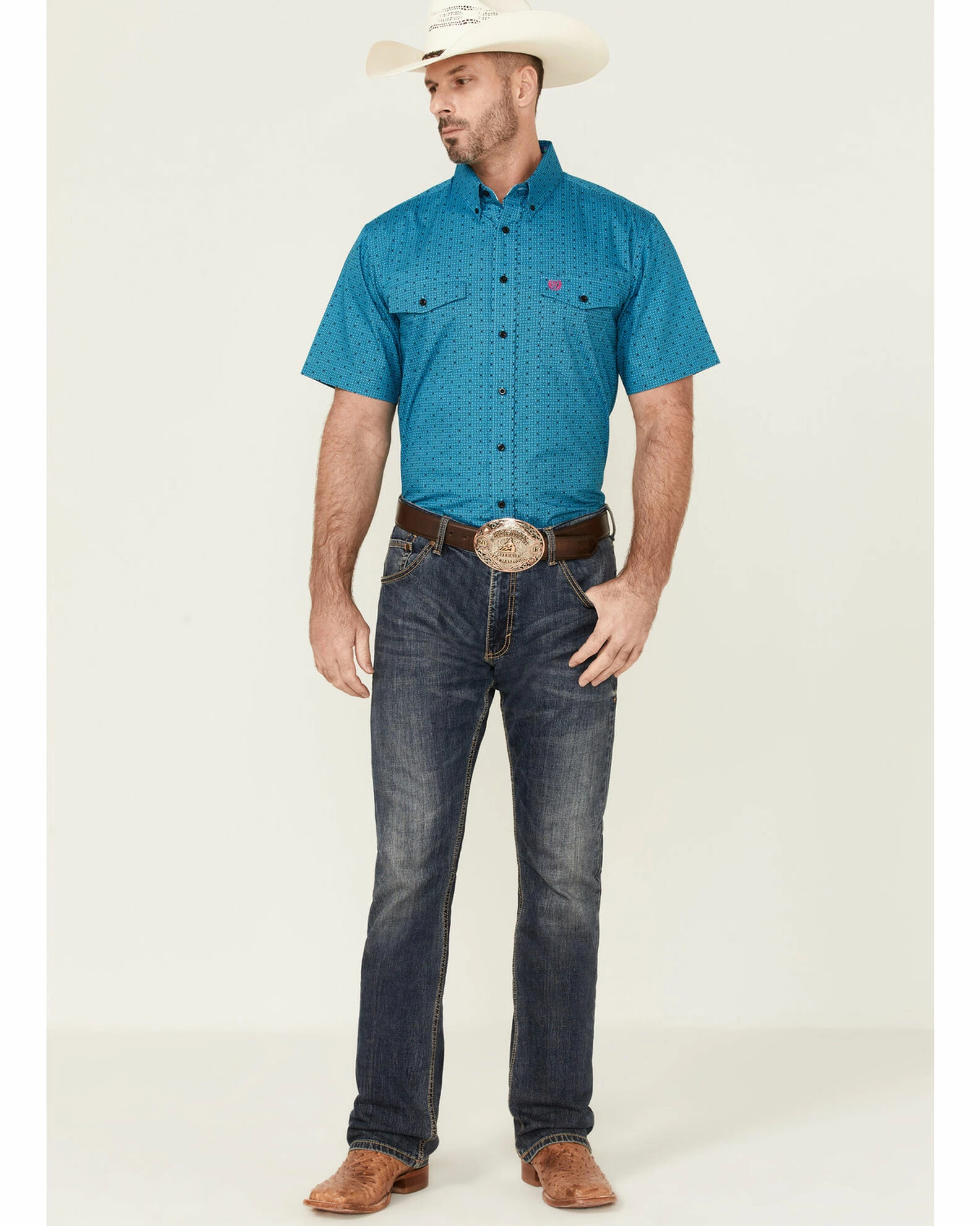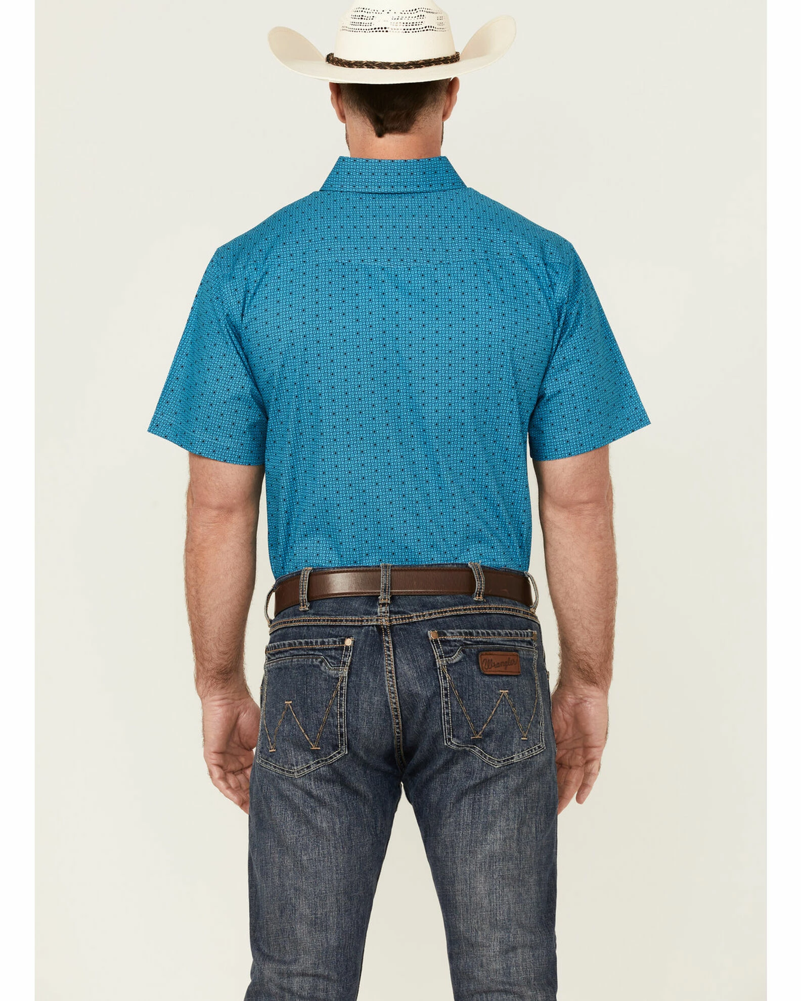 Panhandle Select Men’s Turquiose Geo Print Button-Down Short Sleeve Western Shirt Turquoise