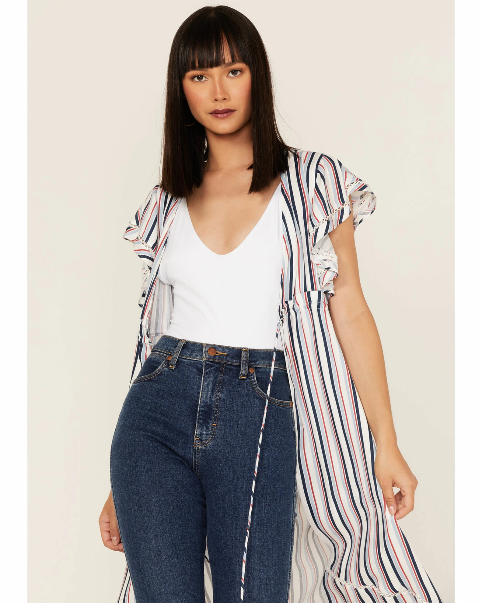 Panhandle Women’s Americana Stripe Kimono Red/white/blue