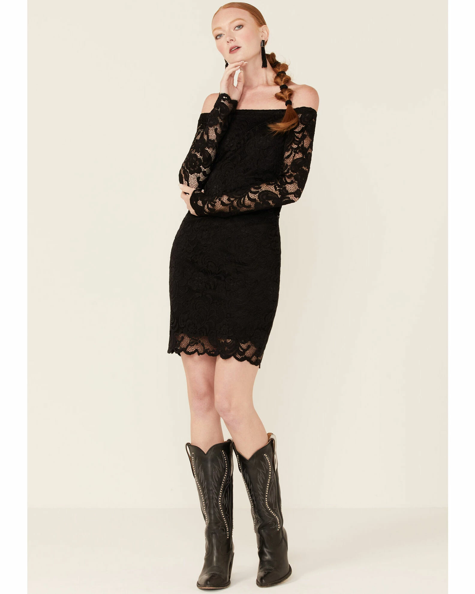 Panhandle Women’s Black Lace Off The Shoulder Short Dress