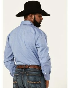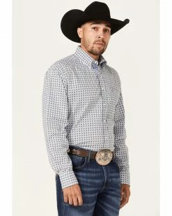 Rough Stock By Panhandle Men’s Light Blue Dobby Geo Print Long Sleeve Button-Down Western Shirt