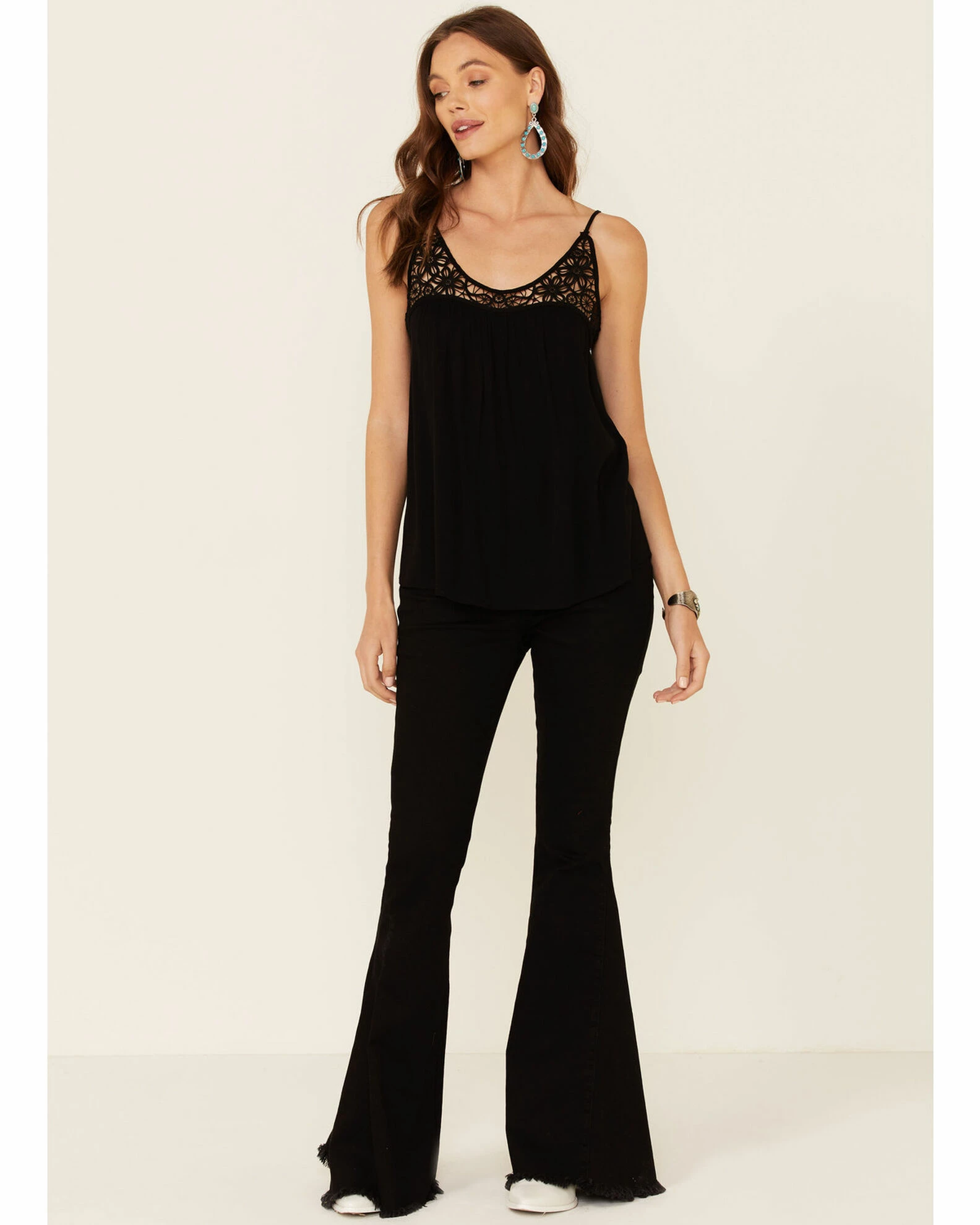 Panhandle Women’s Black Lace Trim Crinkle Inset Cami