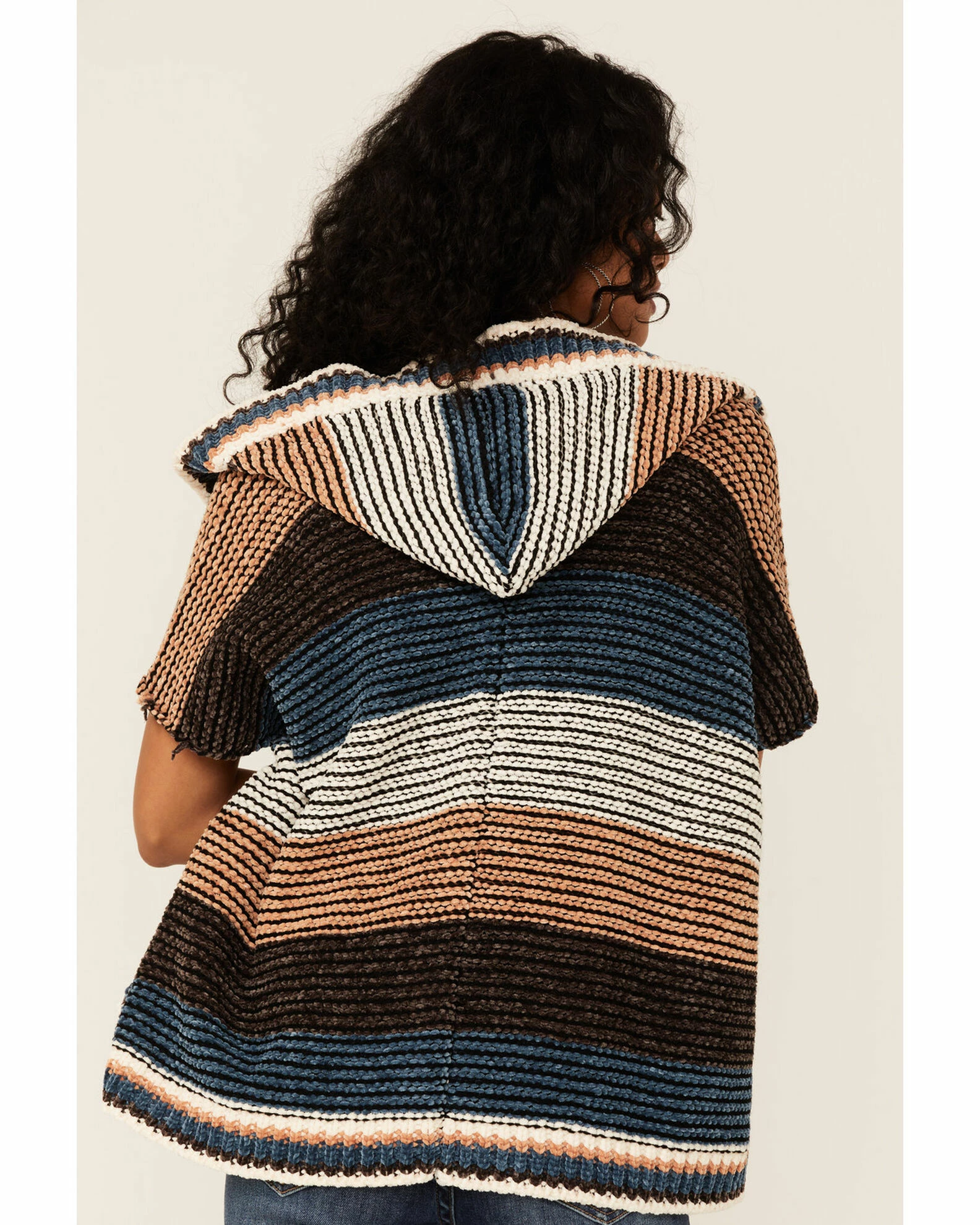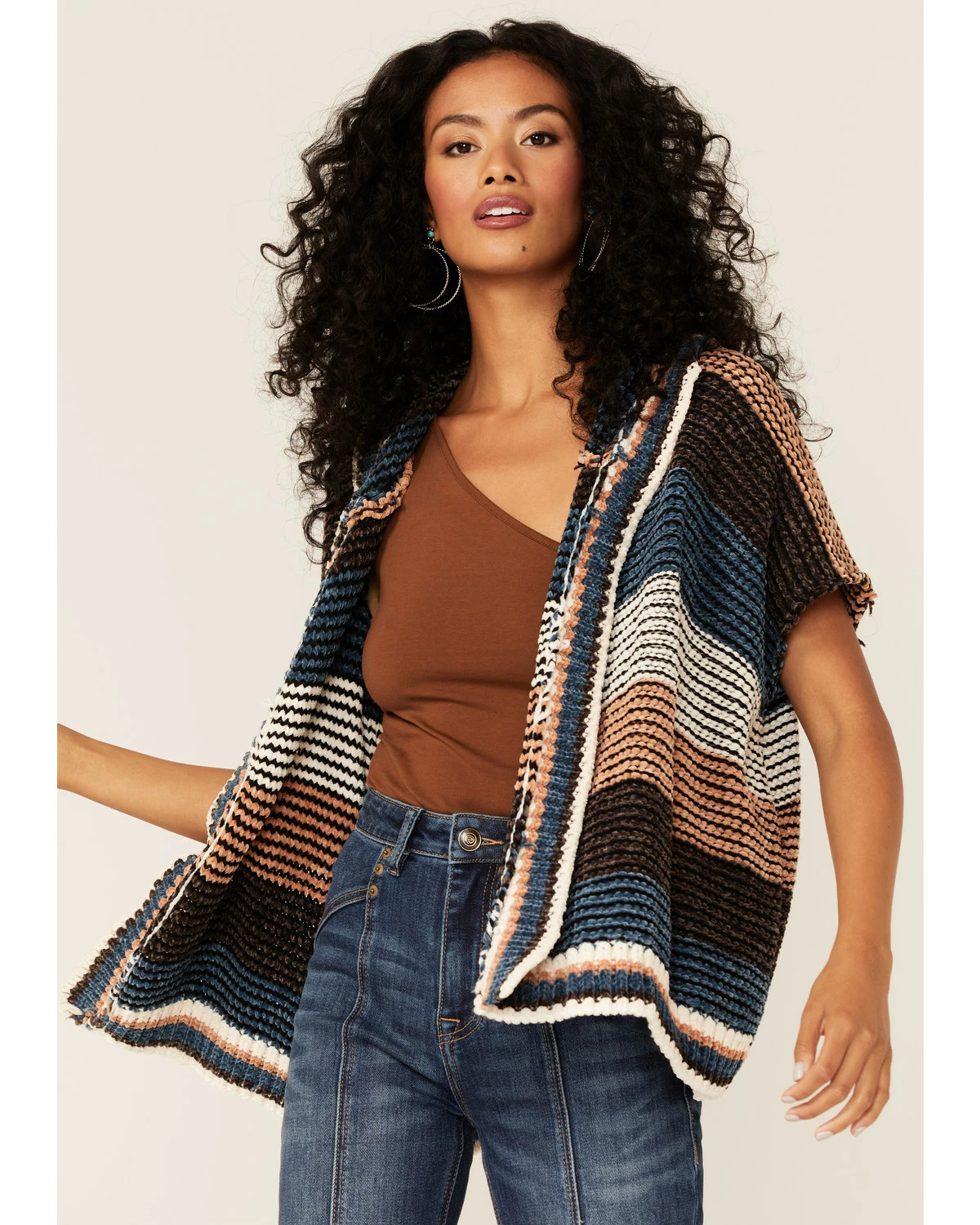 Panhandle Women’s Brown Multi Stripe Knit Hoodie Kimono Coffee