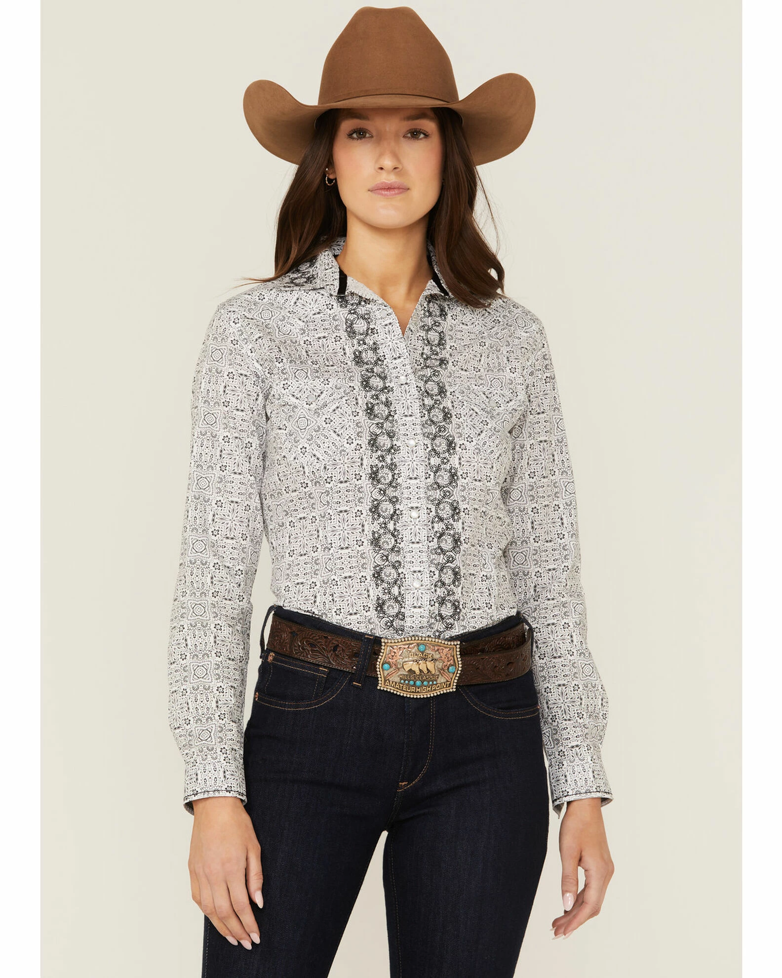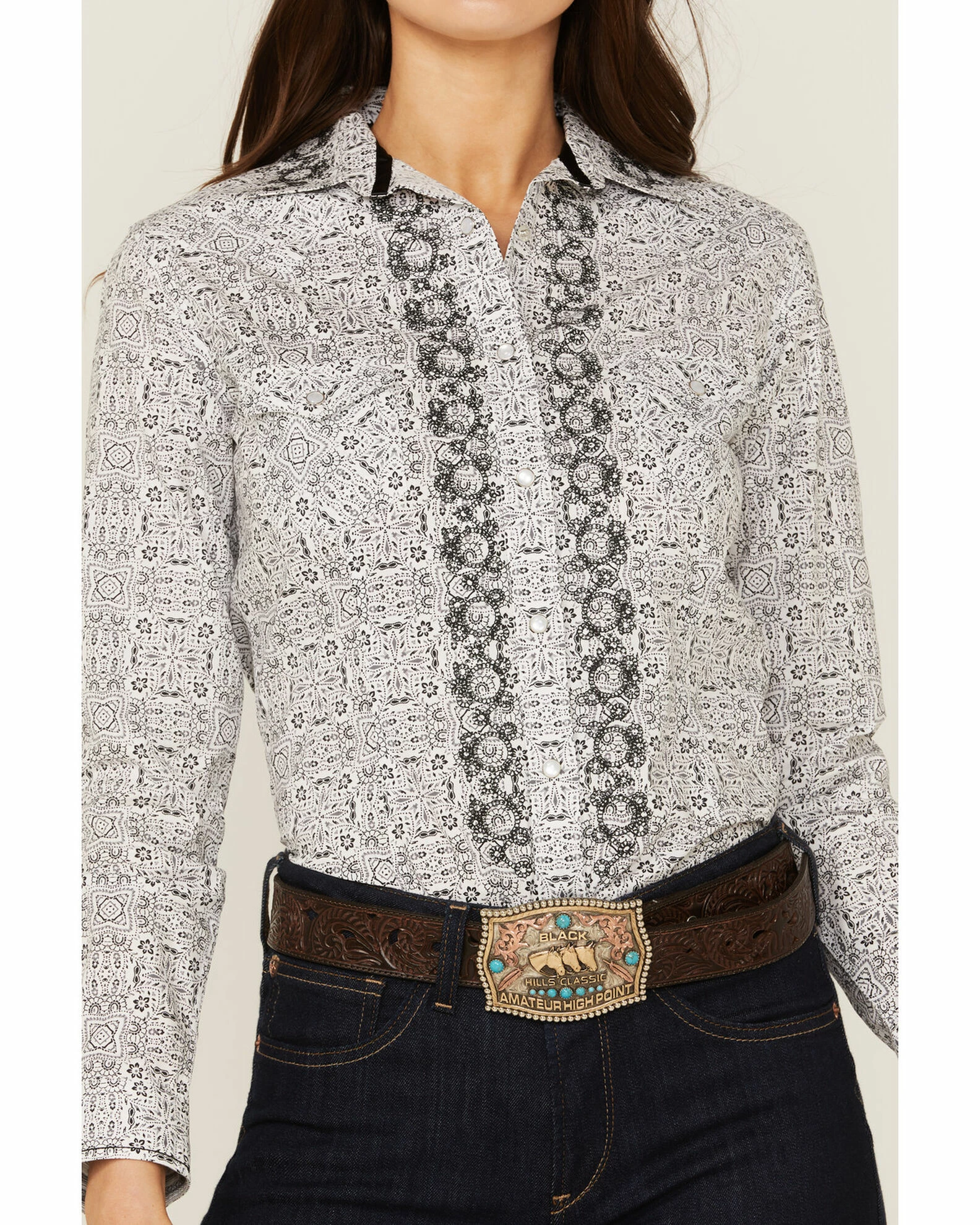 Be the first to review “Panhandle Women’s Digital Bandana Print Snap Western Shirt White” Cancel reply