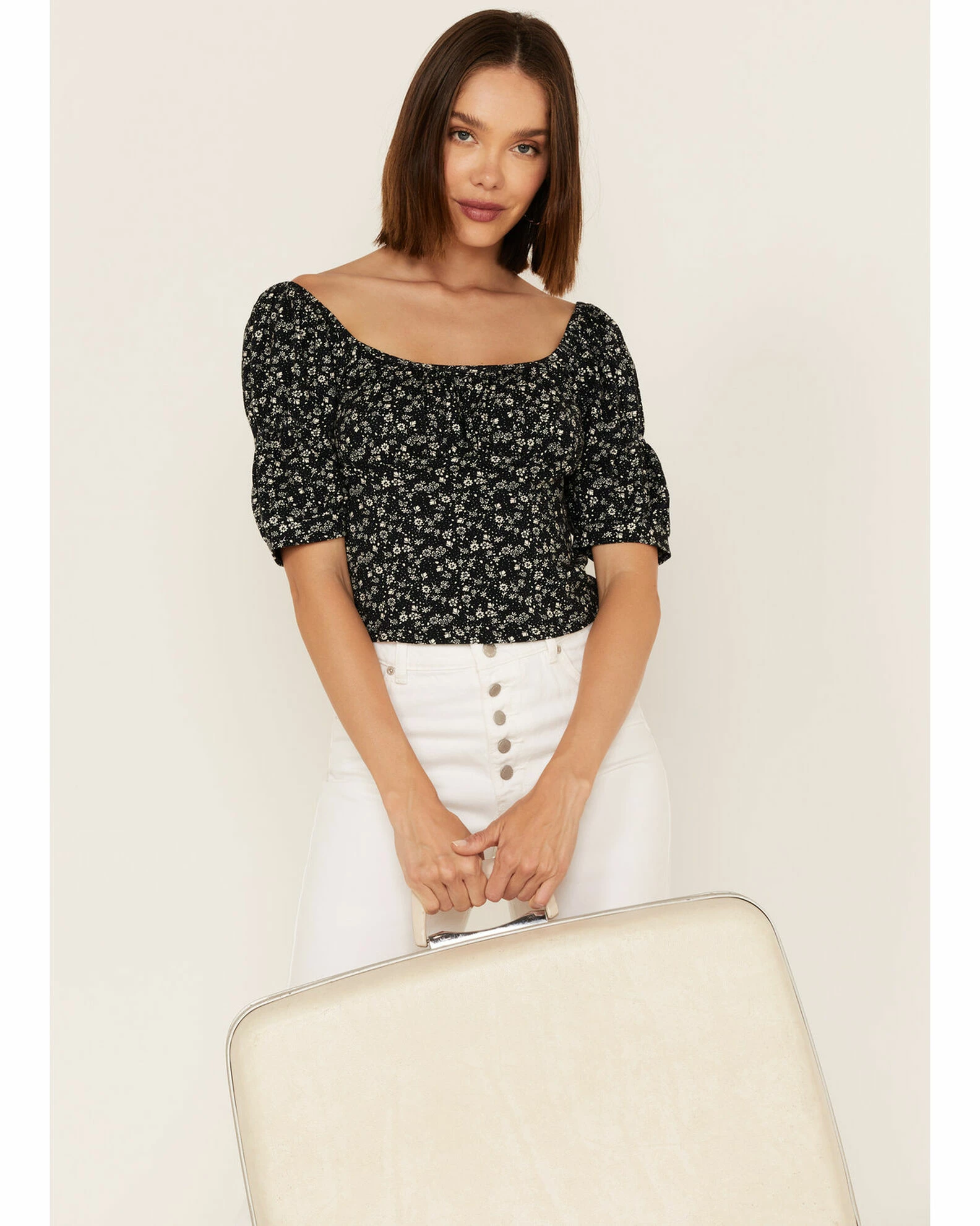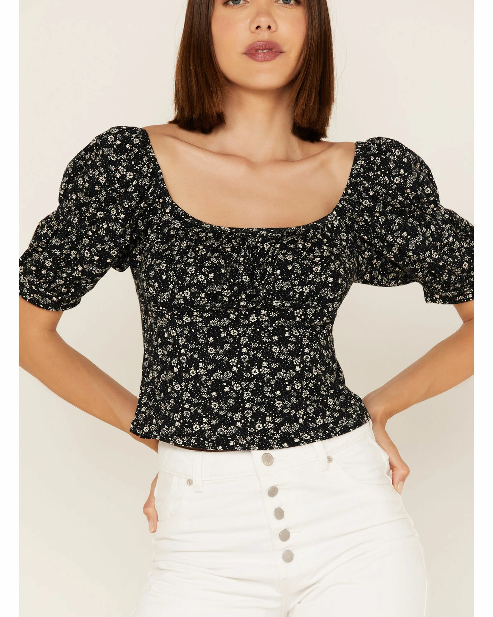 Panhandle Women’s Ditsy Floral Print Puff Sleeve Top