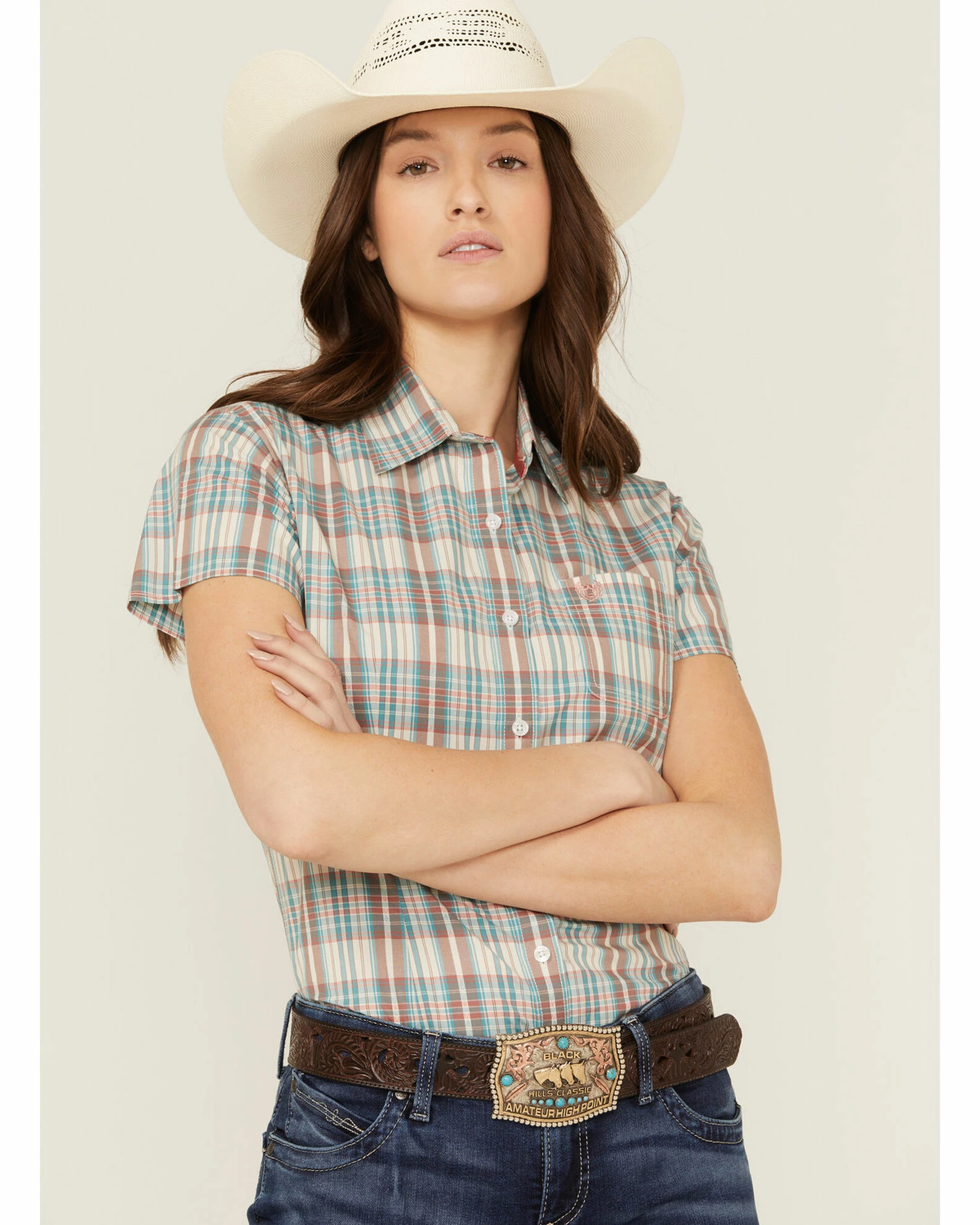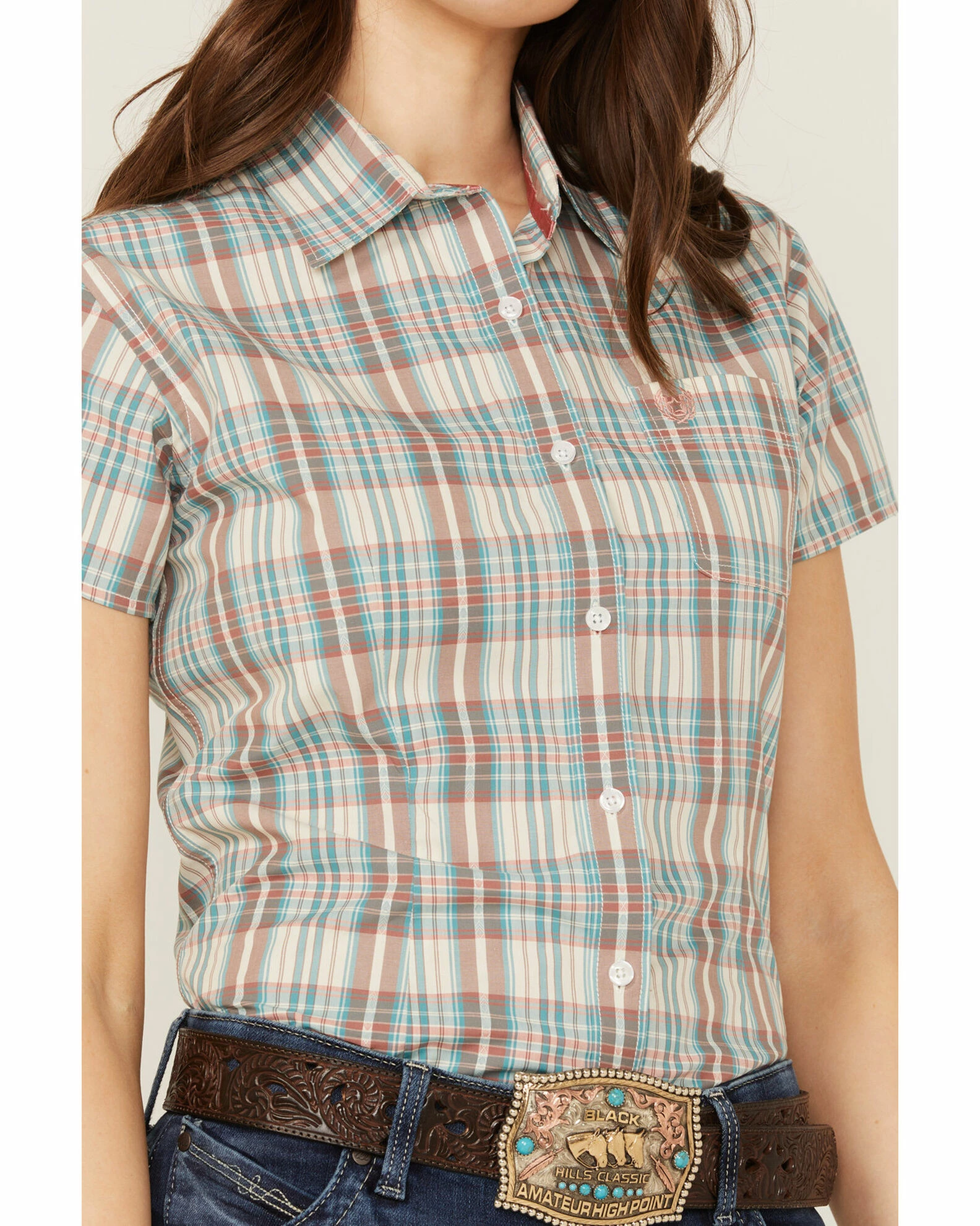 Panhandle Women’s Dobby Plaid Button-Down Western Shirt Natural