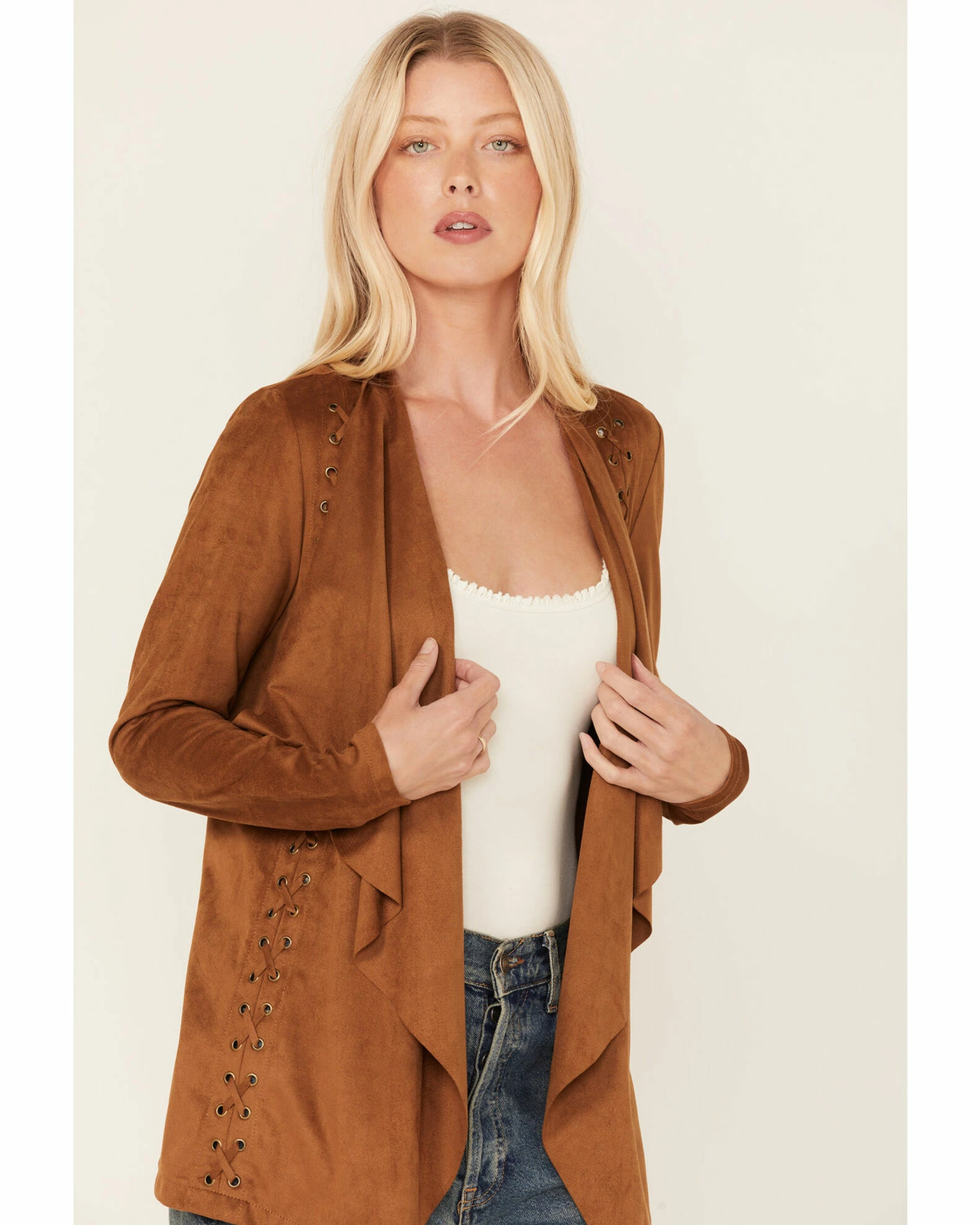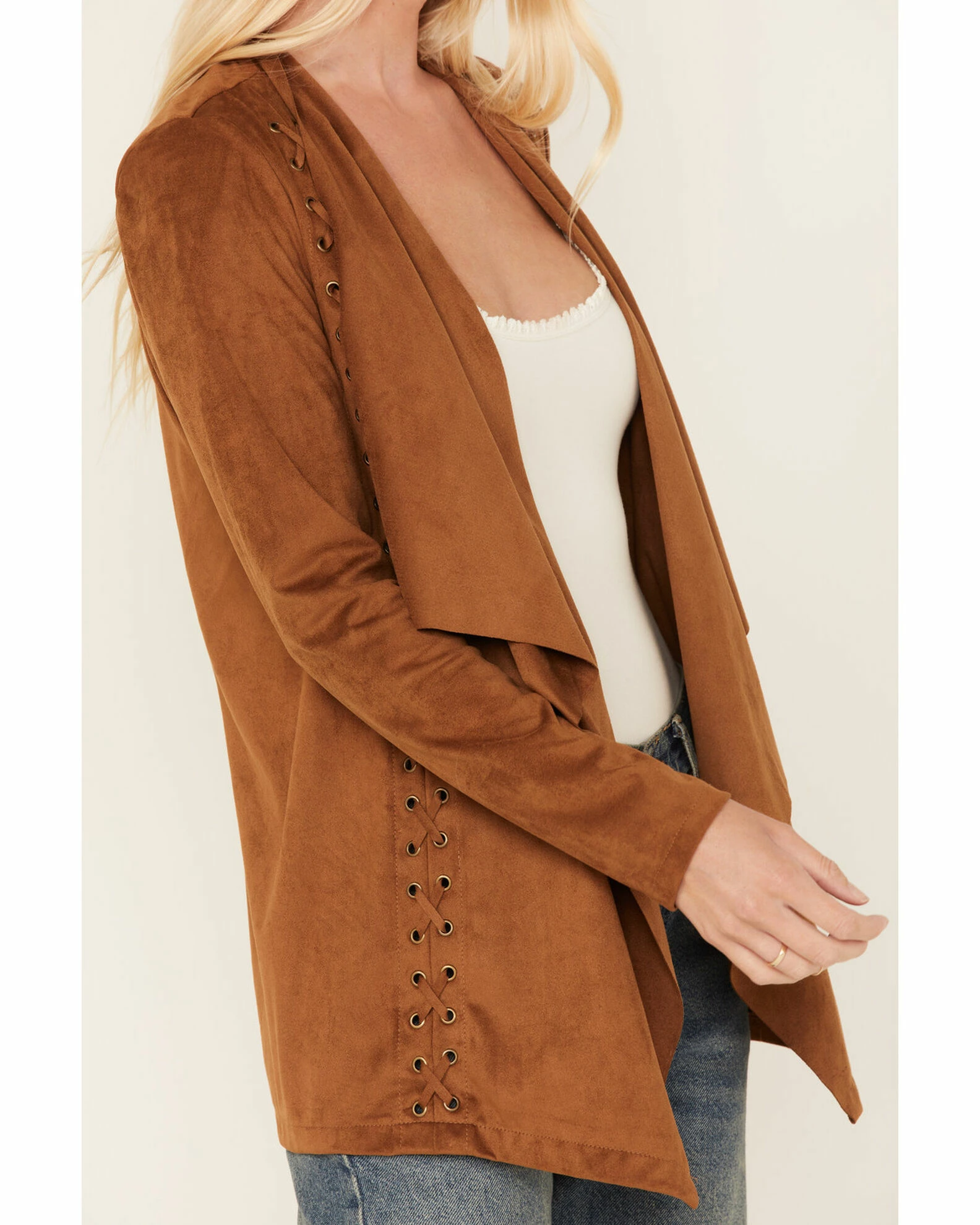 Panhandle Women’s Faux Suede Eyelet Lace Cascade Jacket