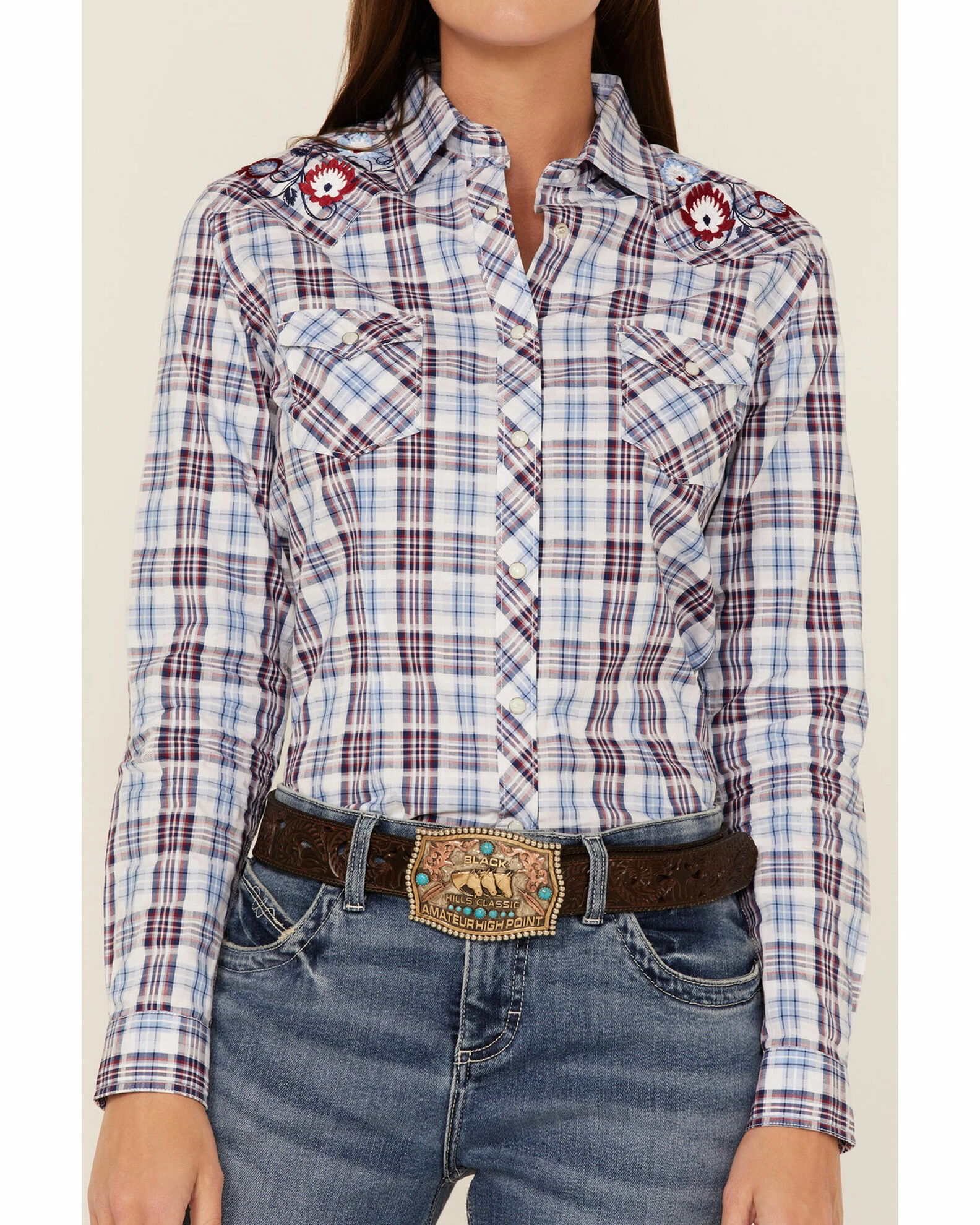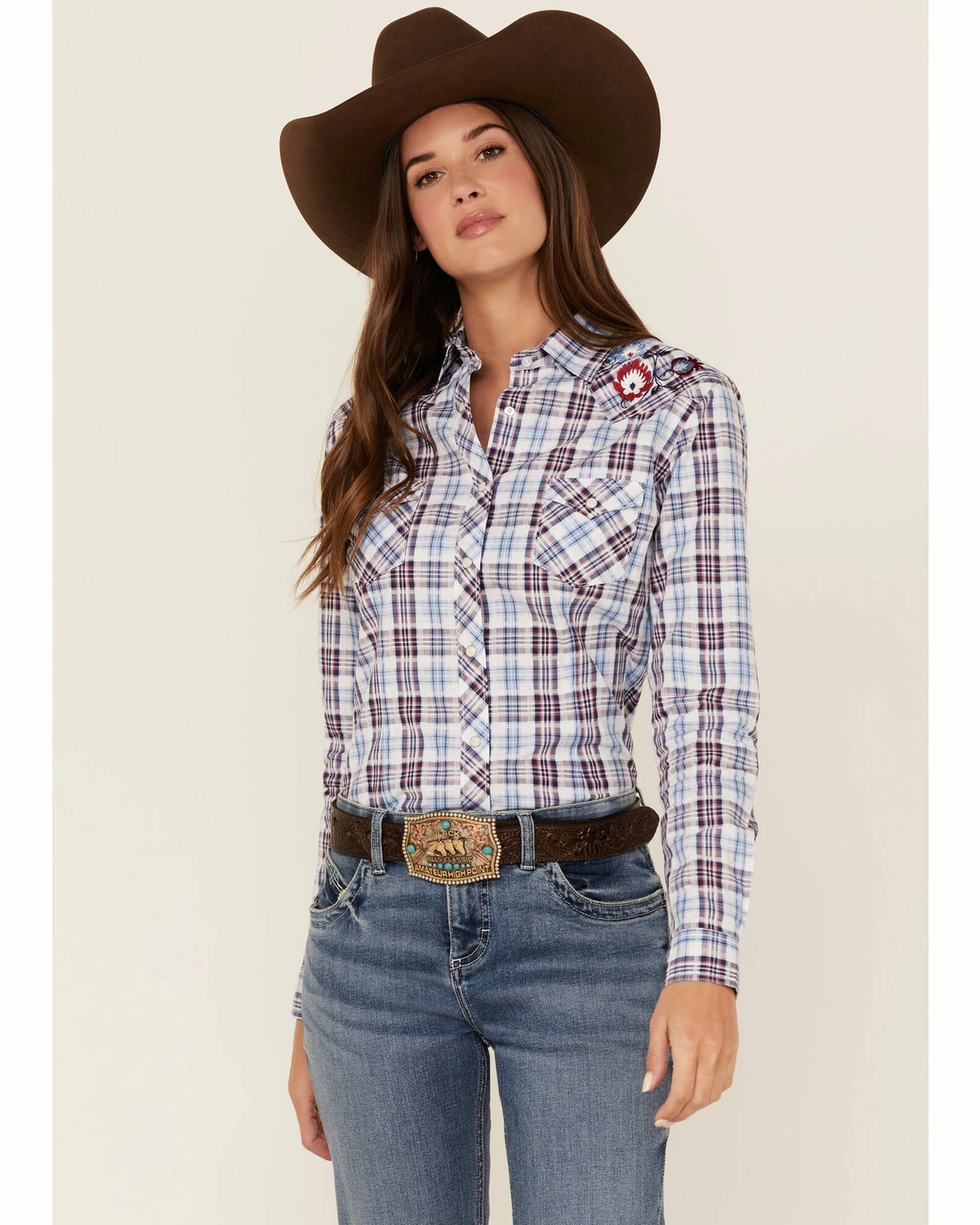 - Western yokes with floral embroidery on front