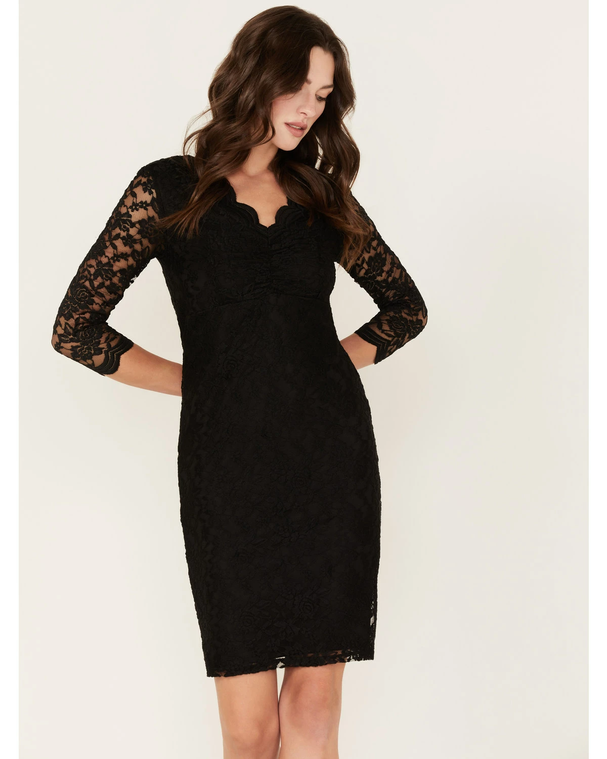 Panhandle Women’s Floral Lace Scalloped Dress Black