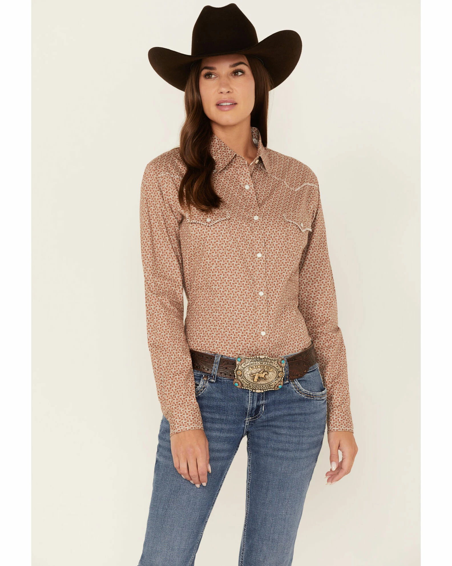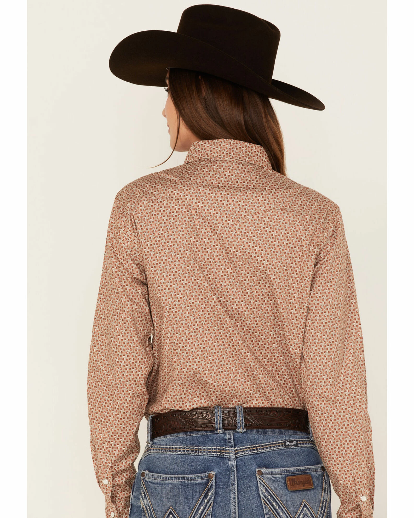 Panhandle Women’s Geo Print Long Sleeve Snap Western Shirt Taupe