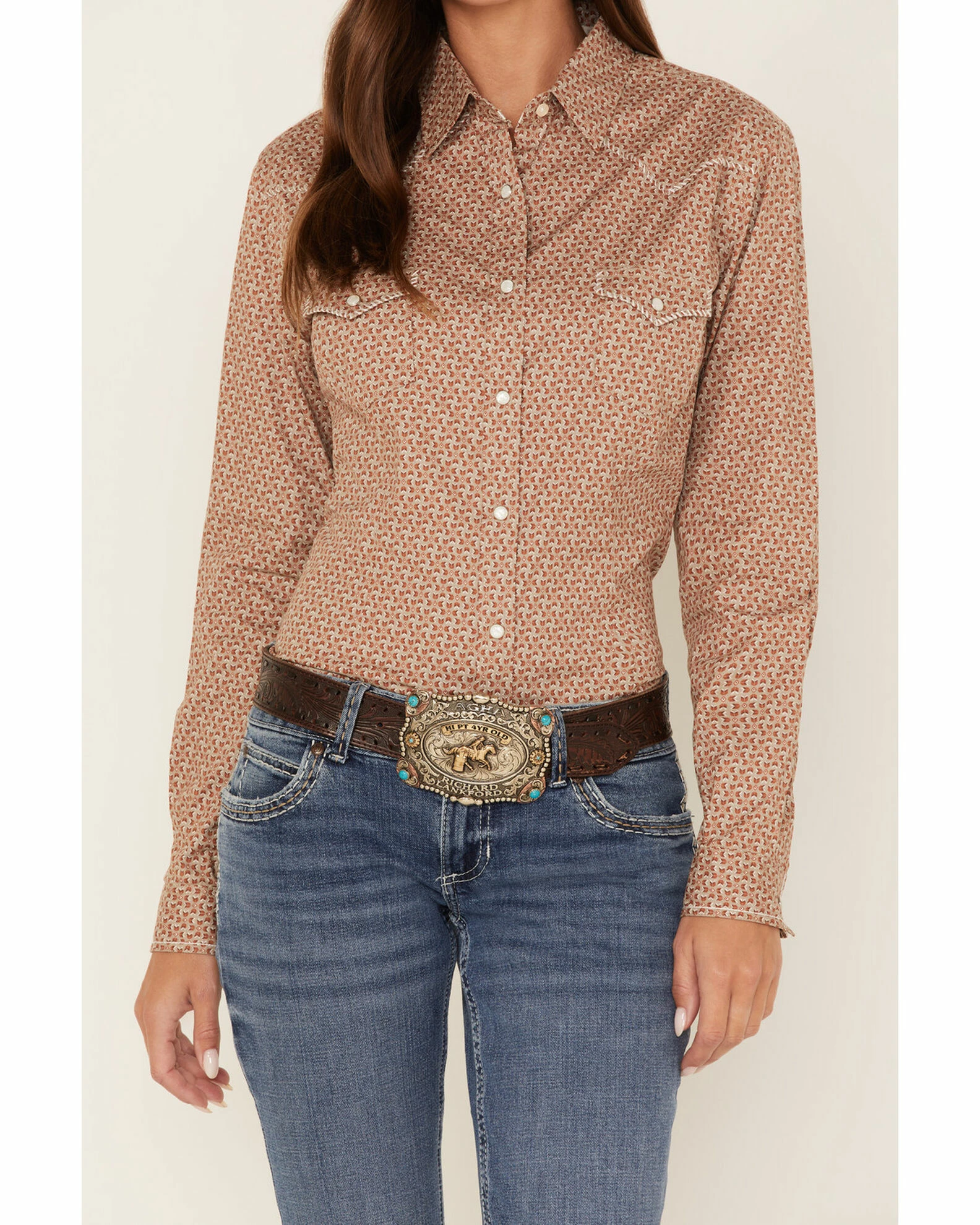 Be the first to review “Panhandle Women’s Geo Print Long Sleeve Snap Western Shirt Taupe” Cancel reply