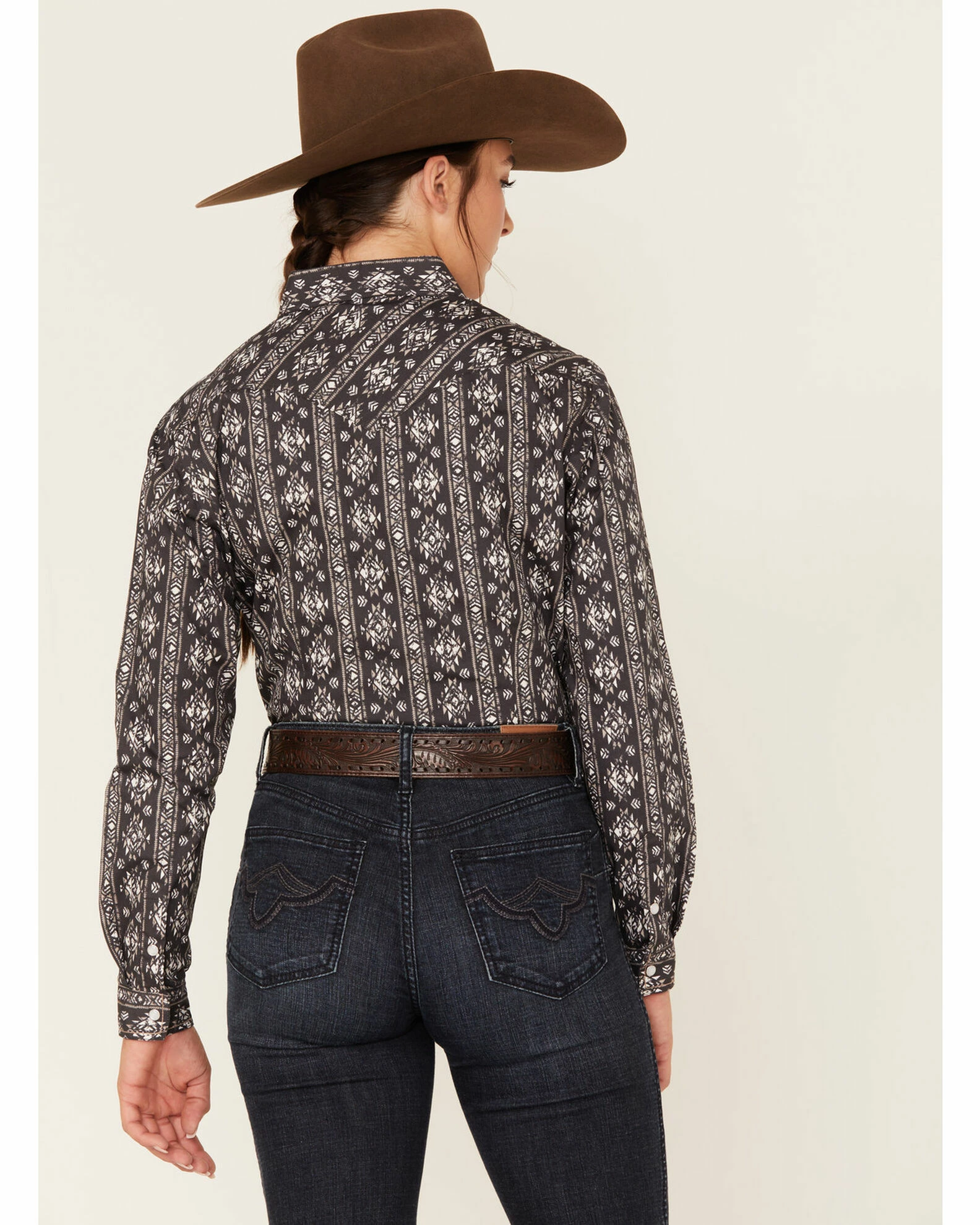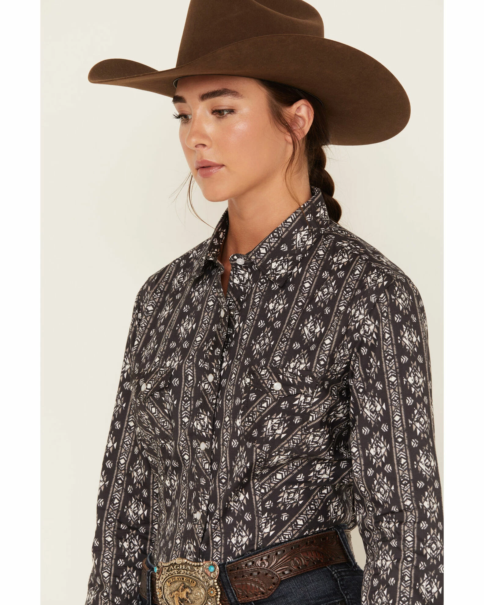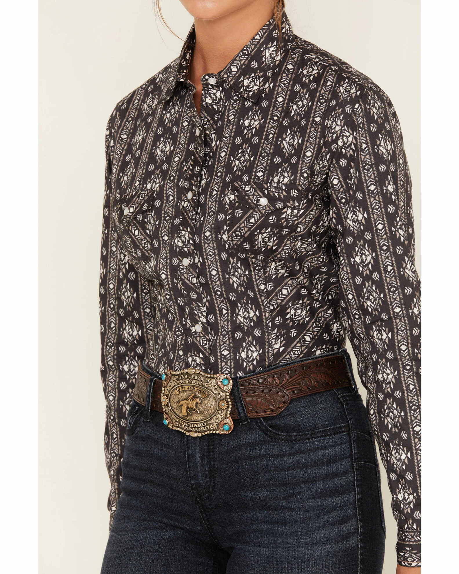 Panhandle Women’s Rough Stock Southwestern Print Long Sleeve Snap Western Shirt Black