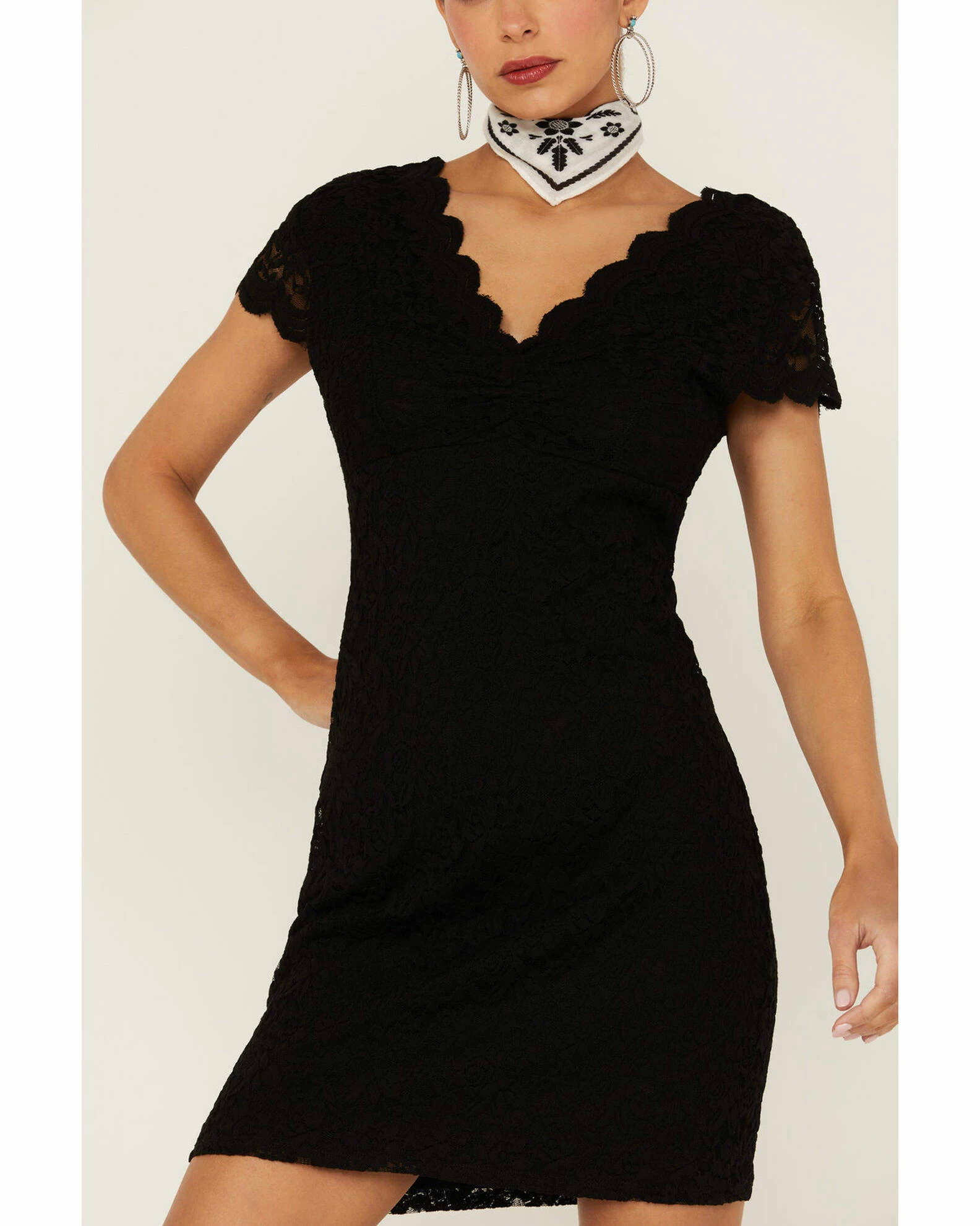 Panhandle Women’s Scalloped Lace Bodycon Dress Black