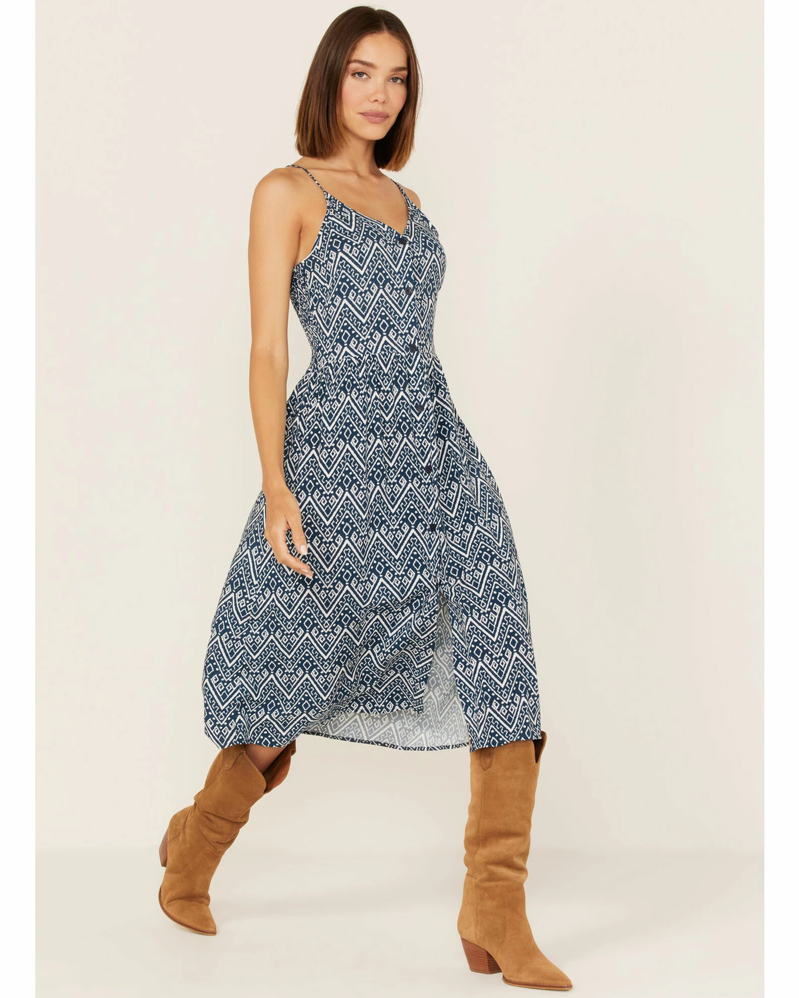 Panhandle Women’s Southwestern Print Sleeveless Midi Dress Navy