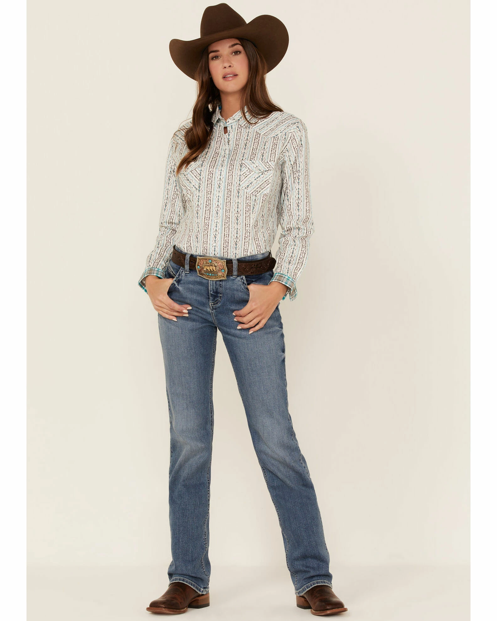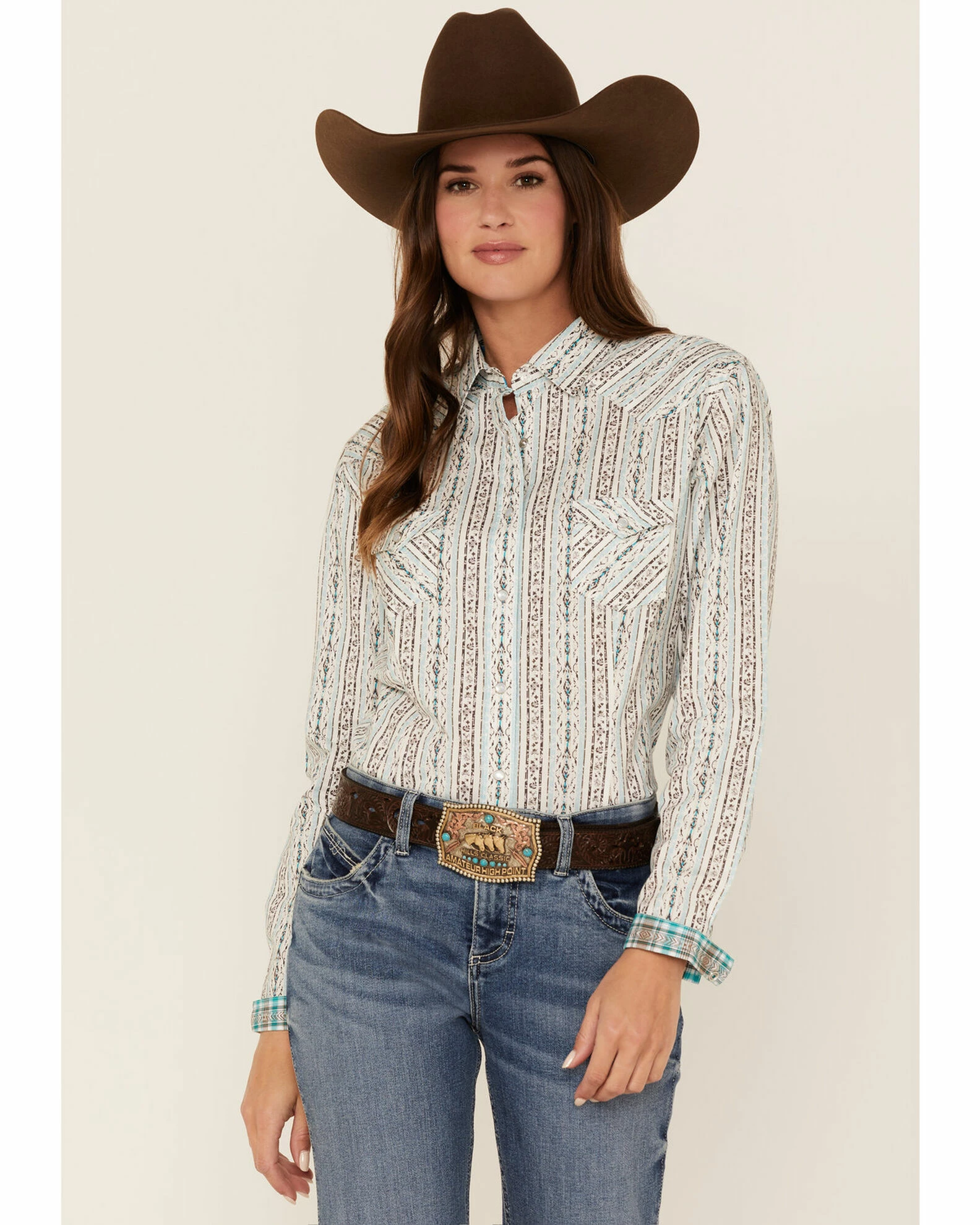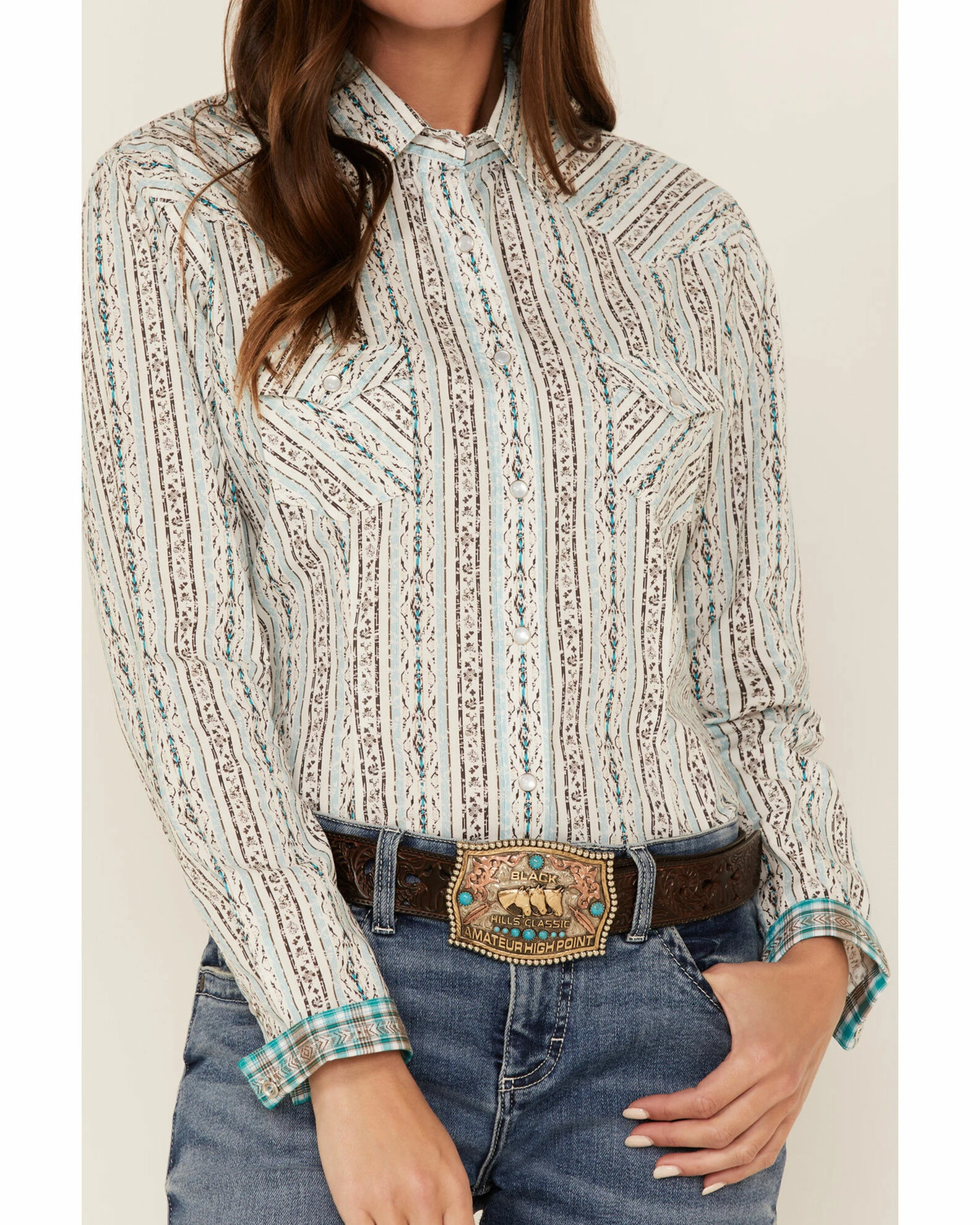 Panhandle Women’s Southwestern Stripe Long Sleeve Snap Western Core Shirt Ivory