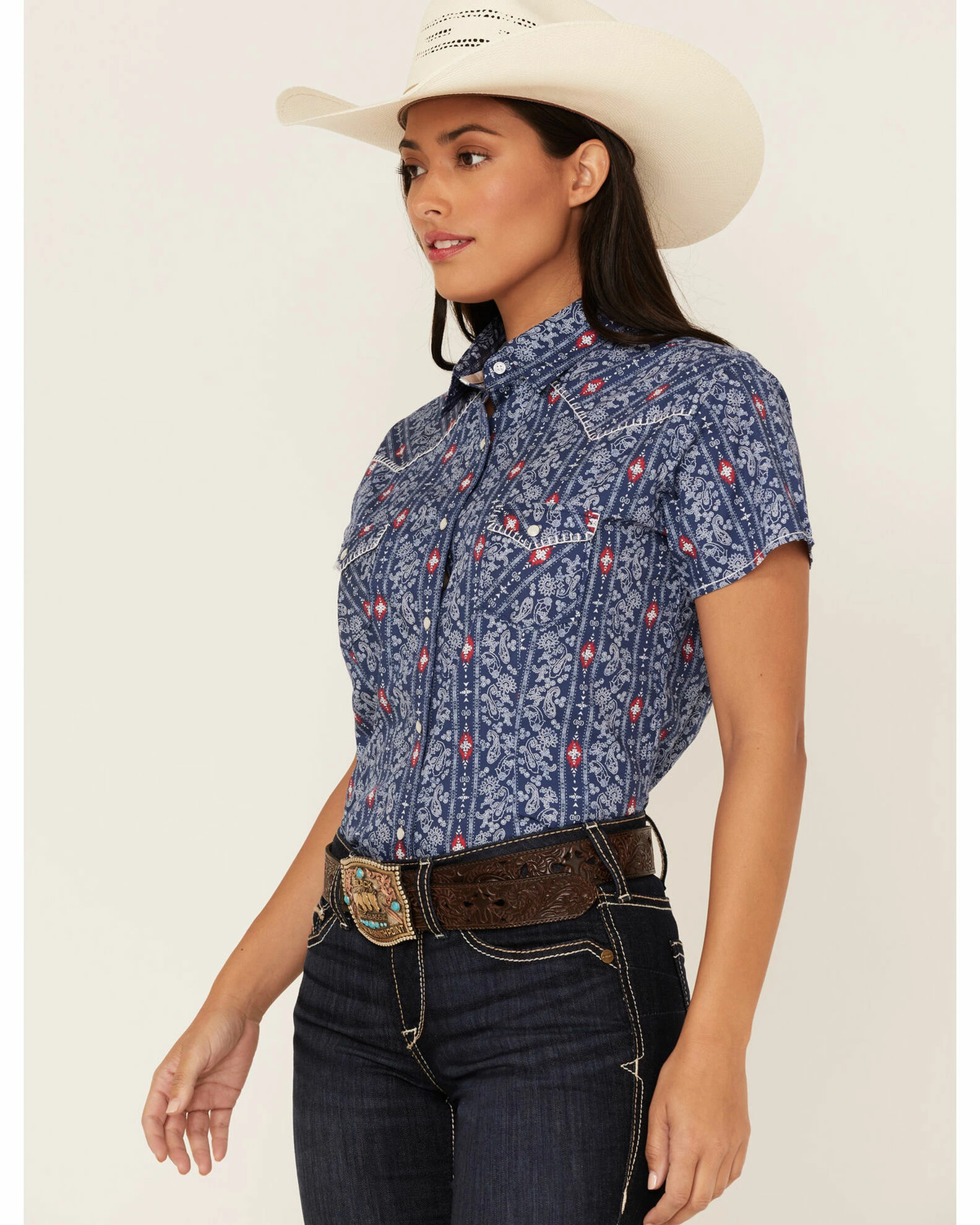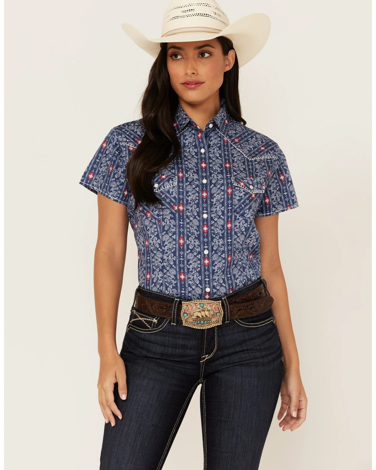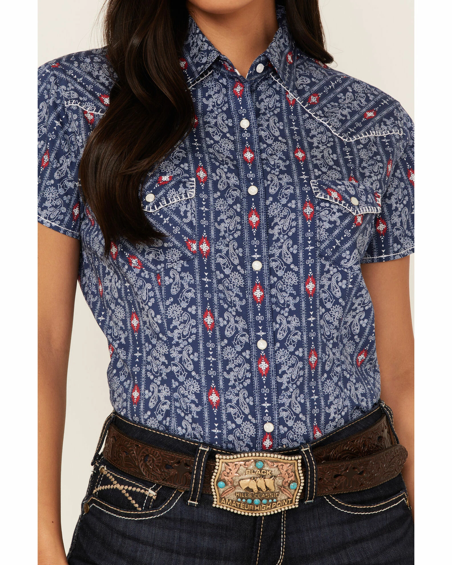Be the first to review “Panhandle Women’s Stripe Short Sleeve Snap Western Core Shirt Navy” Cancel reply