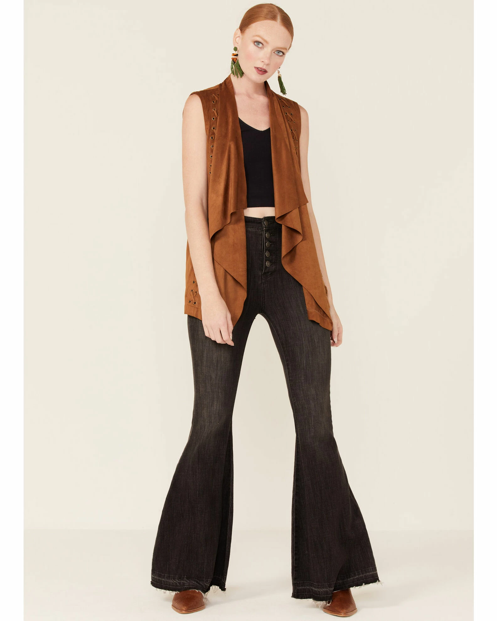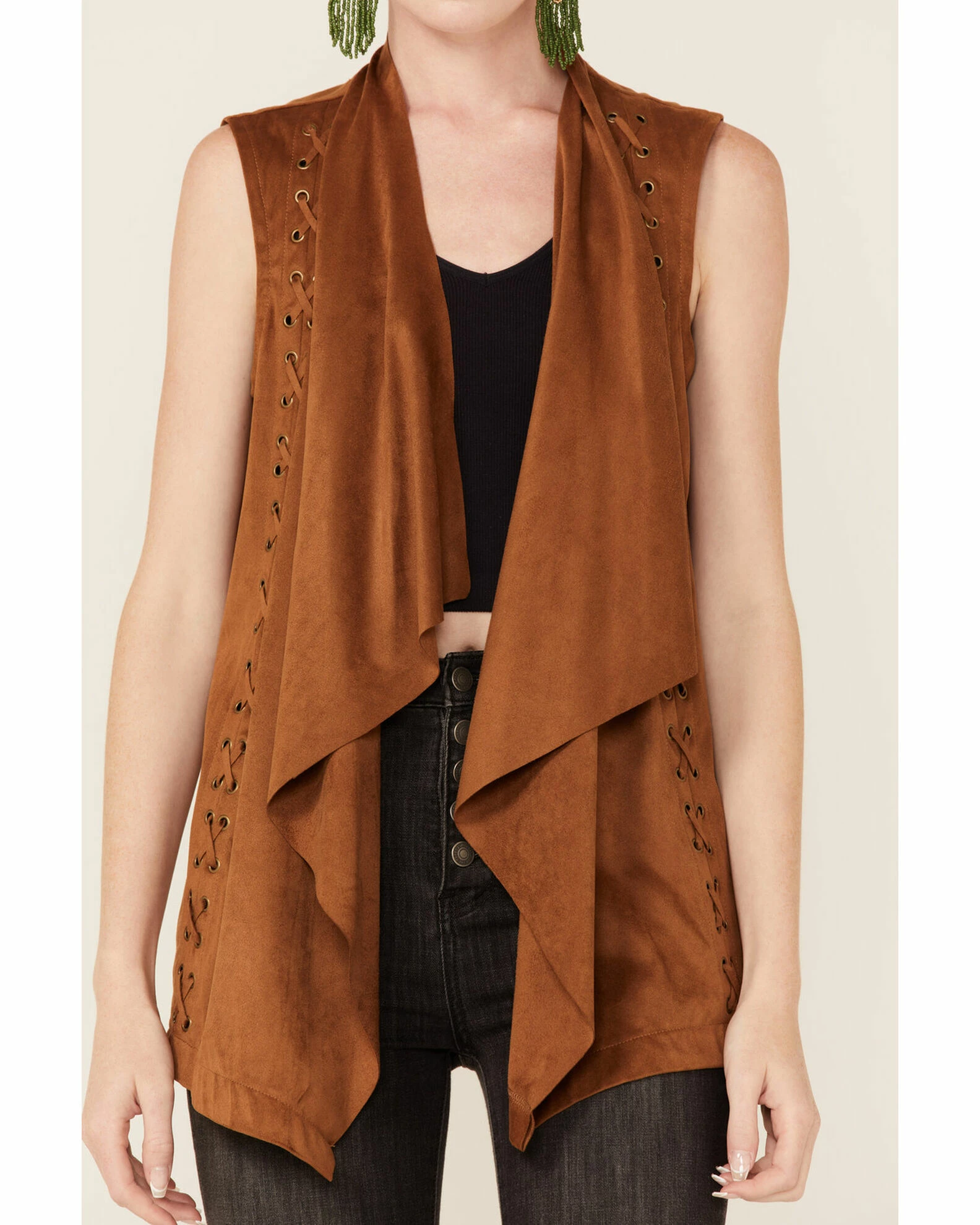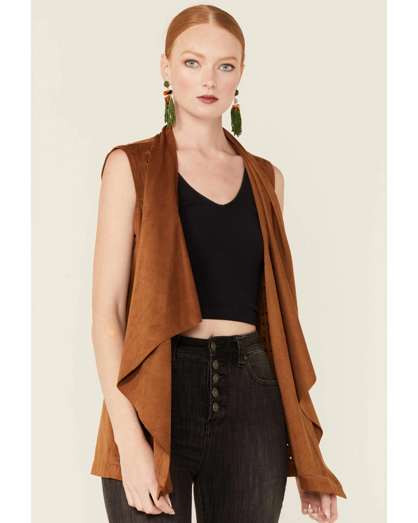 Panhandle Women’s Tan Faux Suede Drape Front Vest Brown