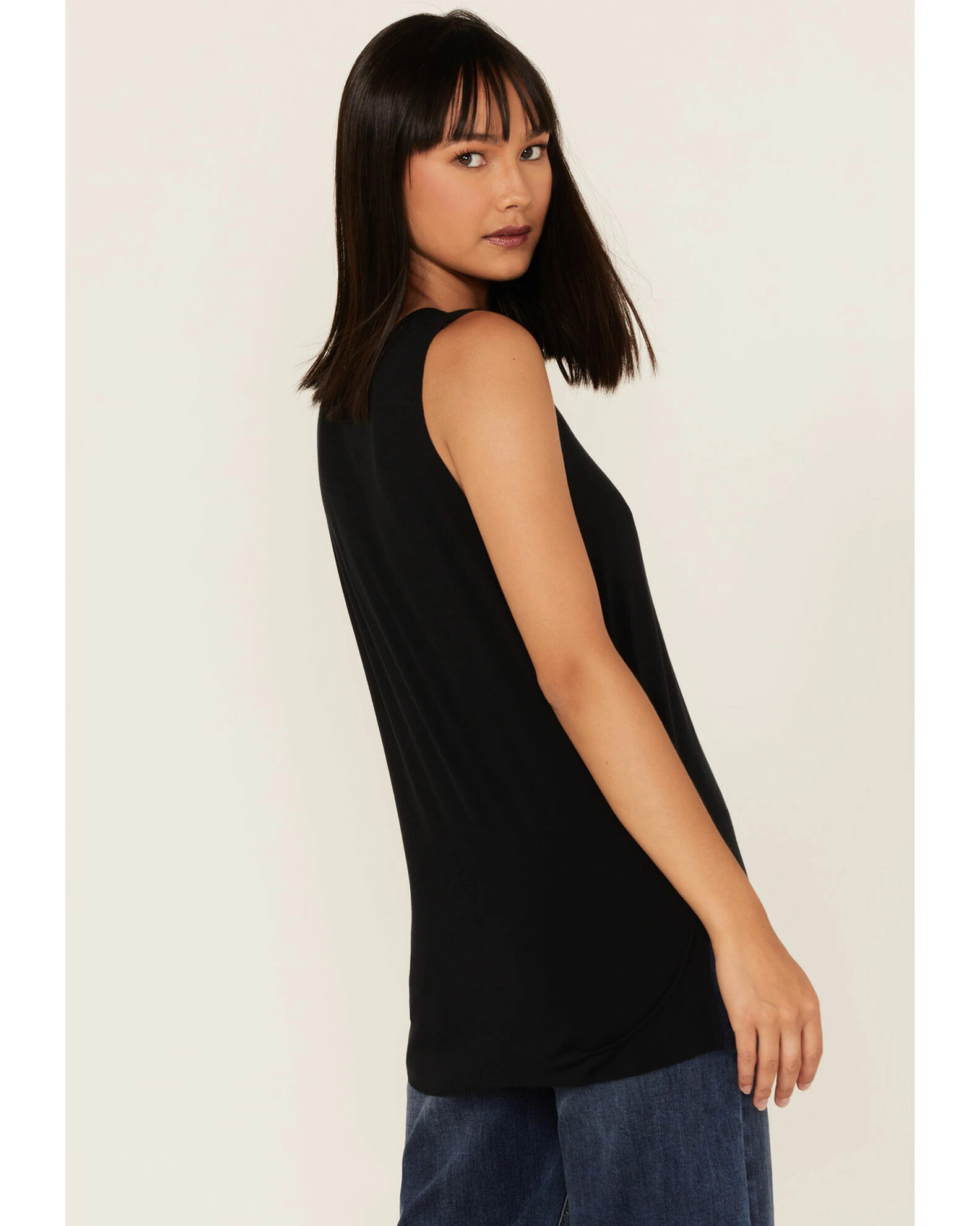 - Sleeveless with raw hem