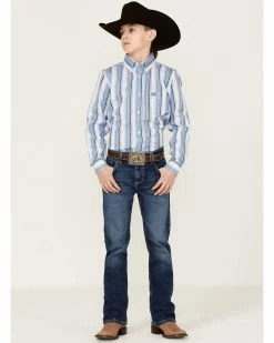 Panhandle Boys’ Stripe Long Sleeve Button-Down Shirt Light Blue