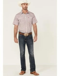 Rough Stock By Panhandle Men’s Large Southwestern Geo Print Short Sleeve Snap Western Shirt Navy