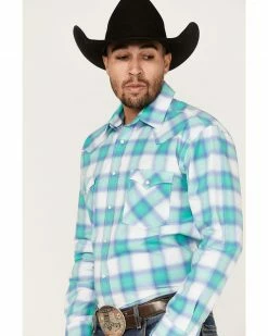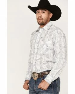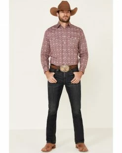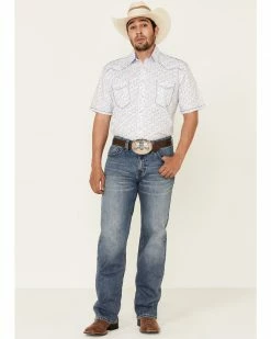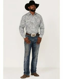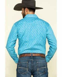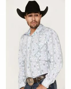 Rough Stock By Panhandle Men’s Southwestern Dot Print Long Sleeve Snap Western Shirt Royal Blue